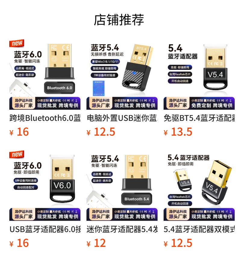 6.0蓝牙适配器 双模式USB适配器台式机电脑免驱动 蓝牙音频接收器