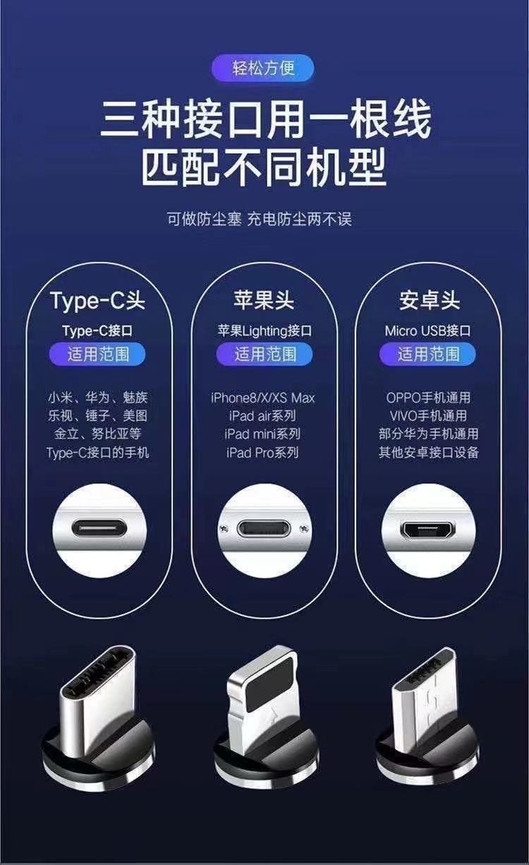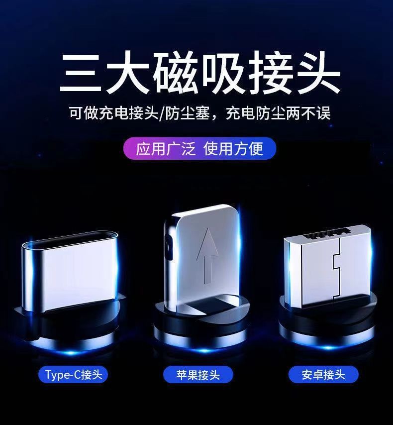 Магнитный кабель для передачи данных, магнитный удлиненный зарядный кабель «три в одном», подходящий для кабеля мобильного телефона Huawei OPPO Xiaomi vivo Apple