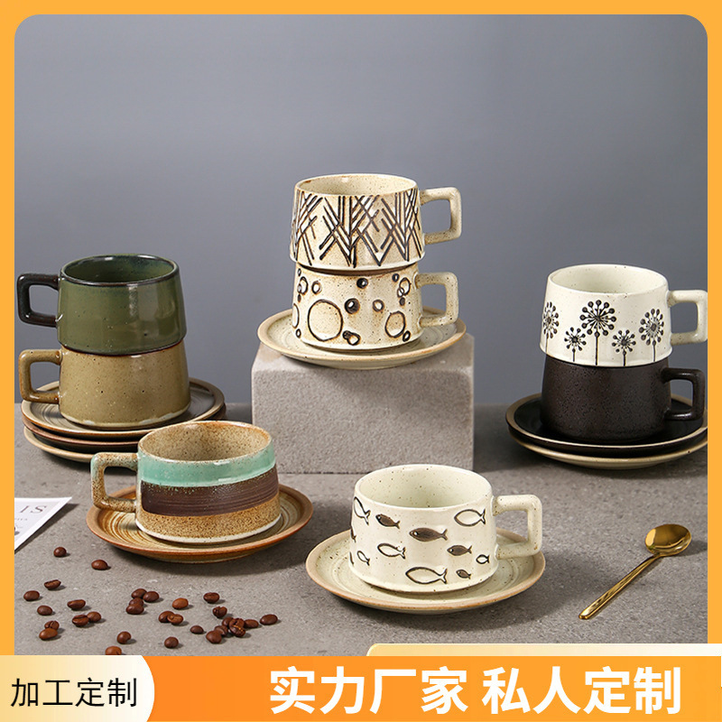 Набор керамических кофейных чашек для трансграничной торговли, японские керамические чашки для магазинов молочного чая, ретро-чашки и блюдца из керамогранита, оптовая продажа напрямую