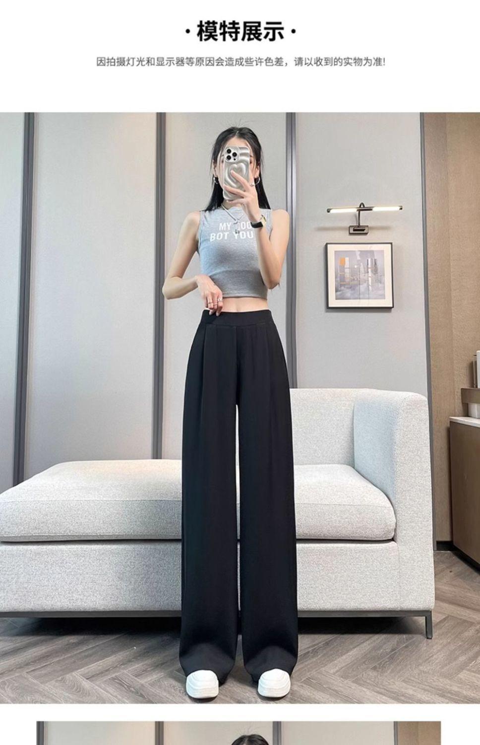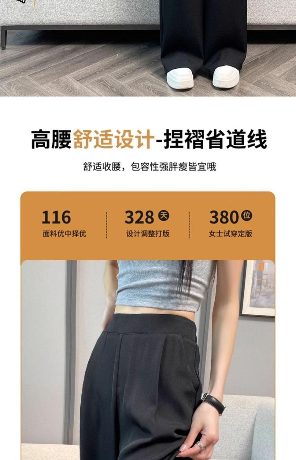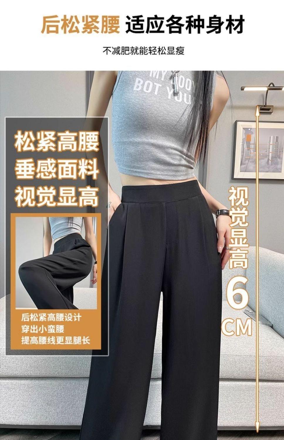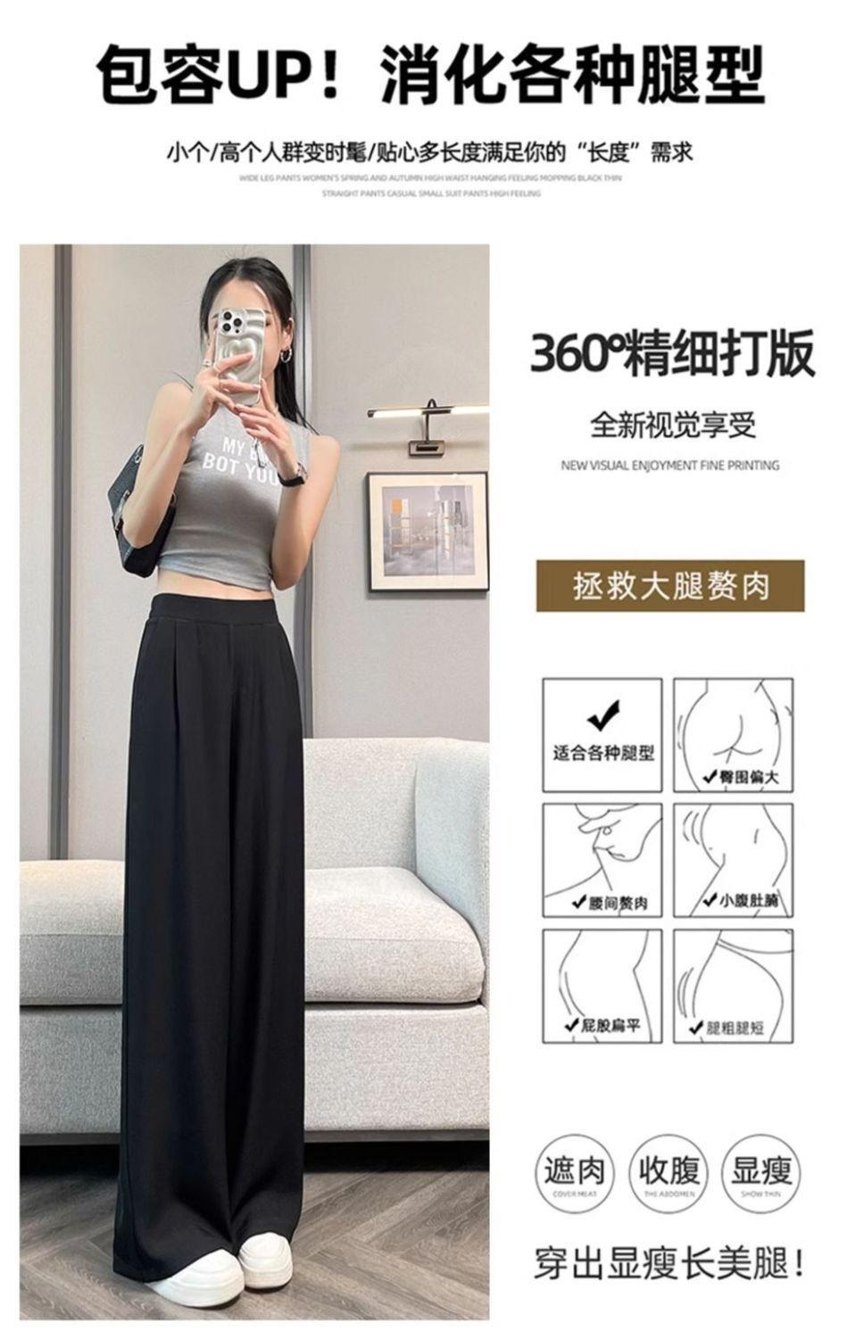 Широкие брюки с высокой талией для женщин больших размеров, весенне-летние тонкие черные универсальные брюки, драпированные прямые брюки, свободный и модный популярный стиль.