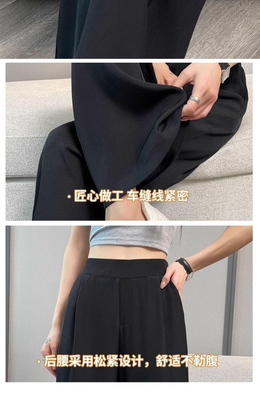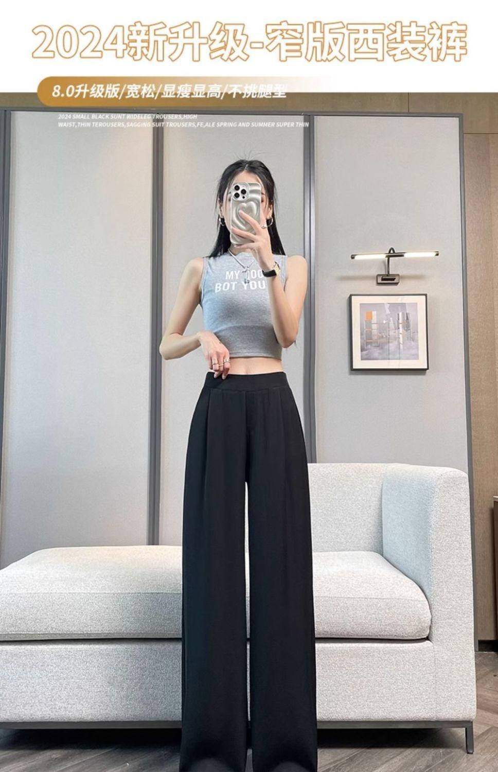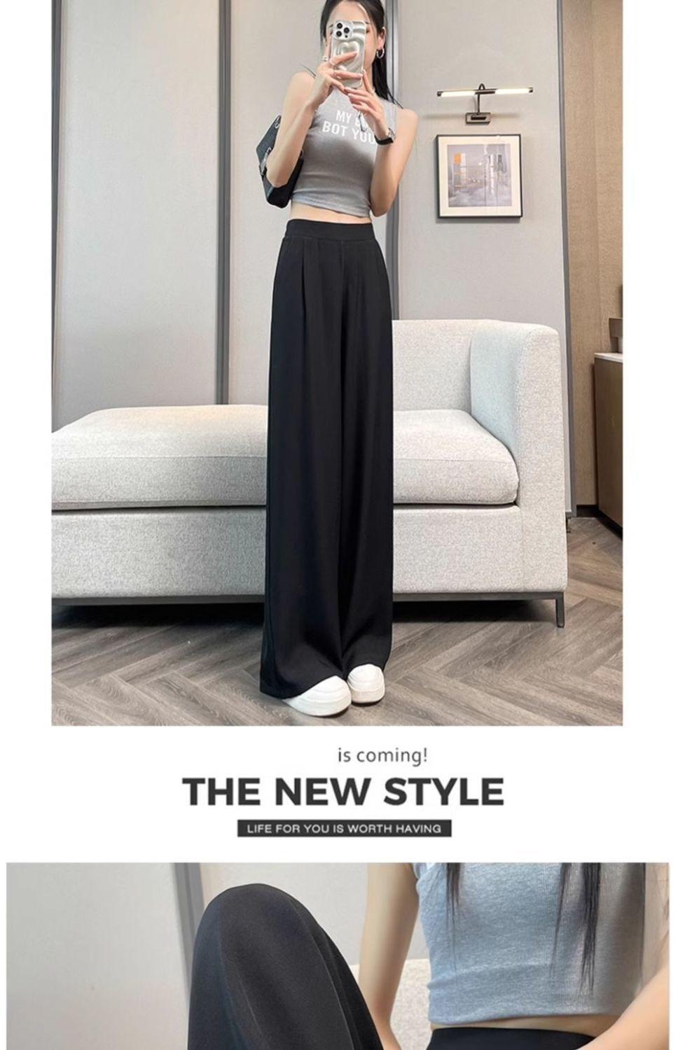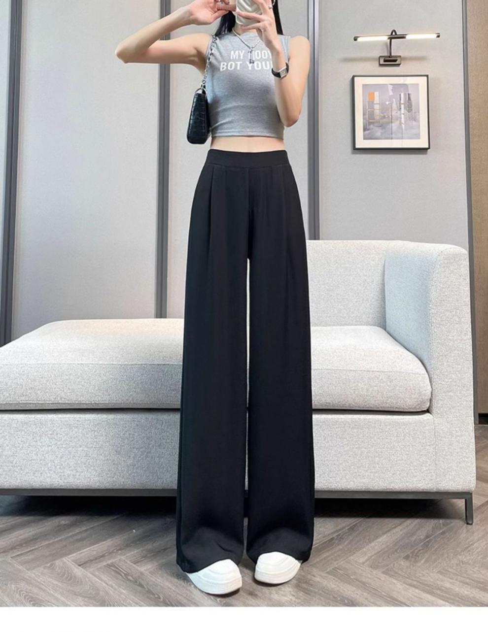 Широкие брюки с высокой талией для женщин больших размеров, весенне-летние тонкие черные универсальные брюки, драпированные прямые брюки, свободный и модный популярный стиль.