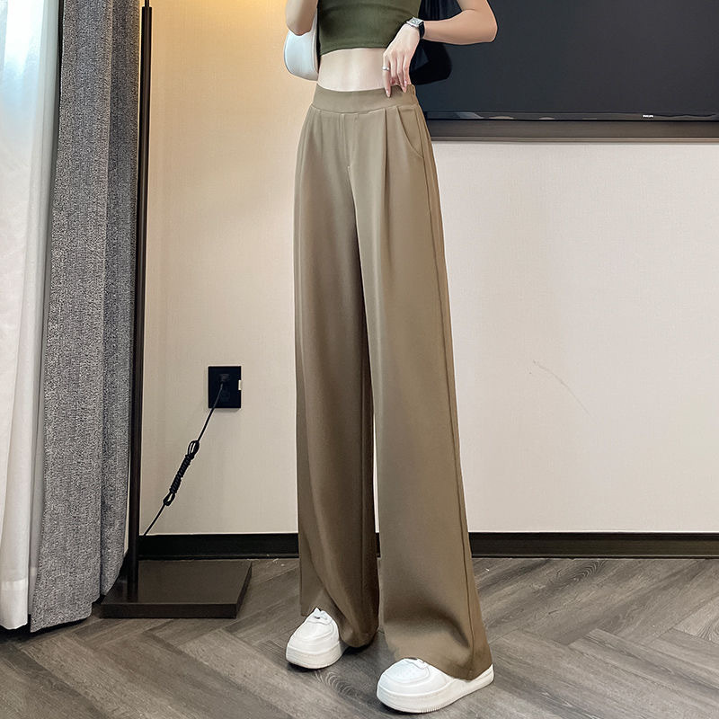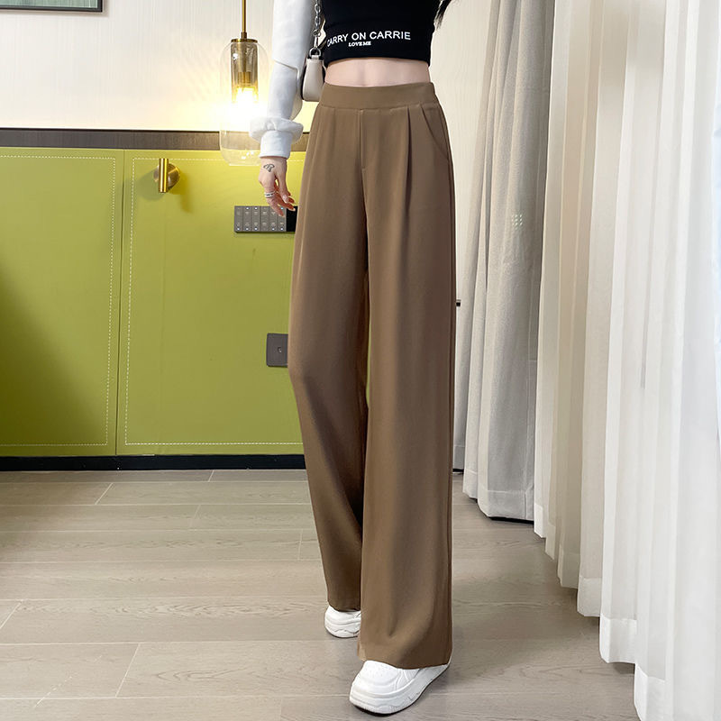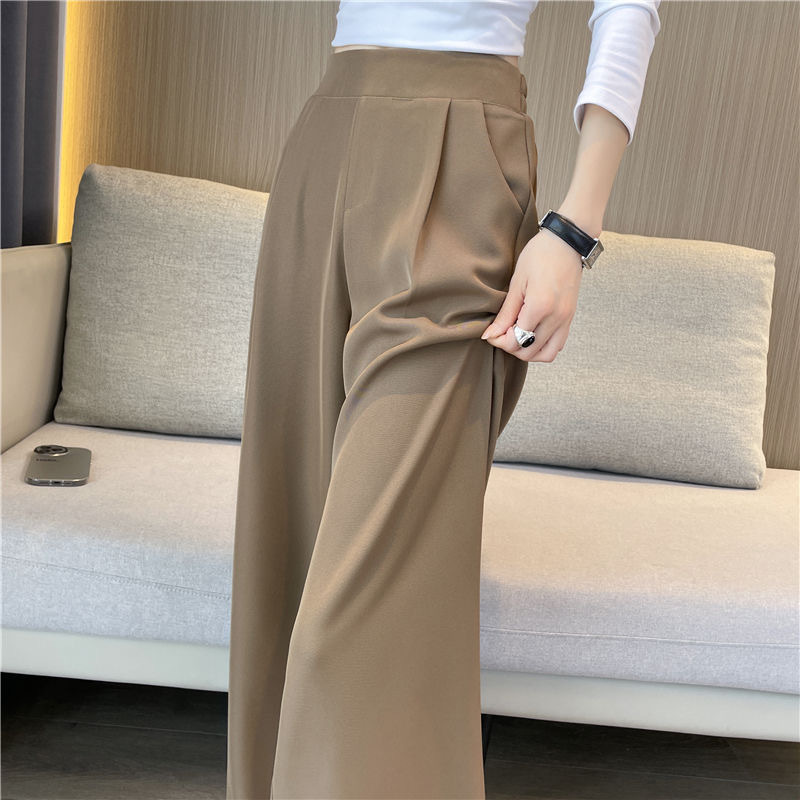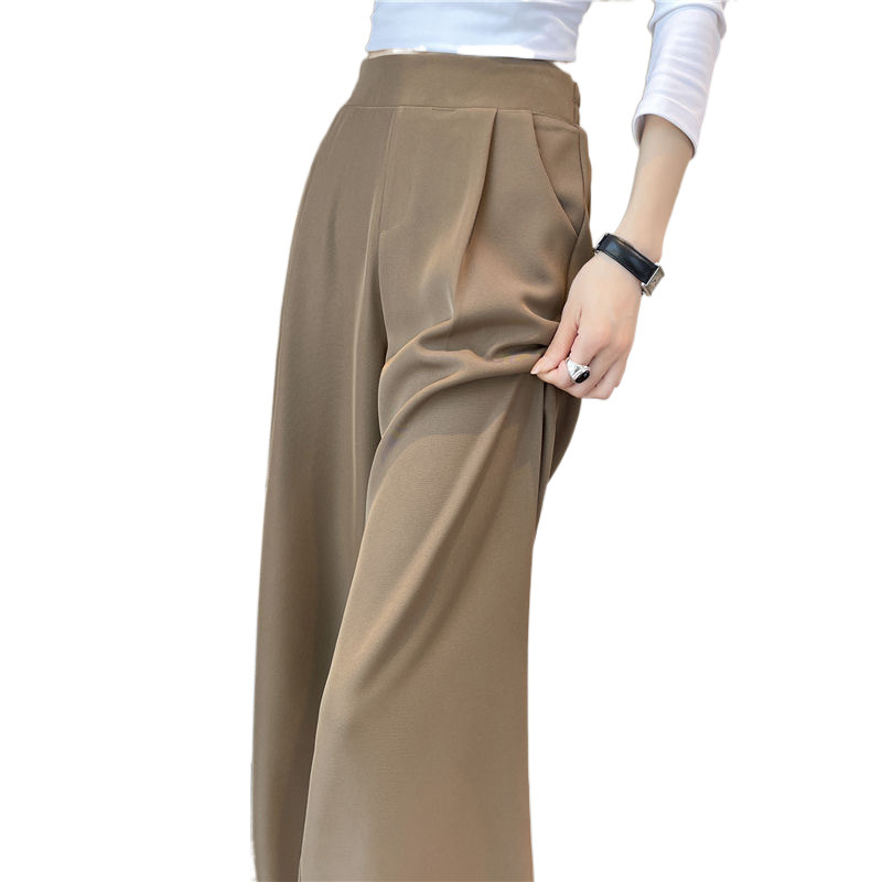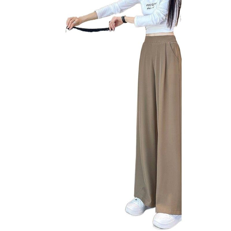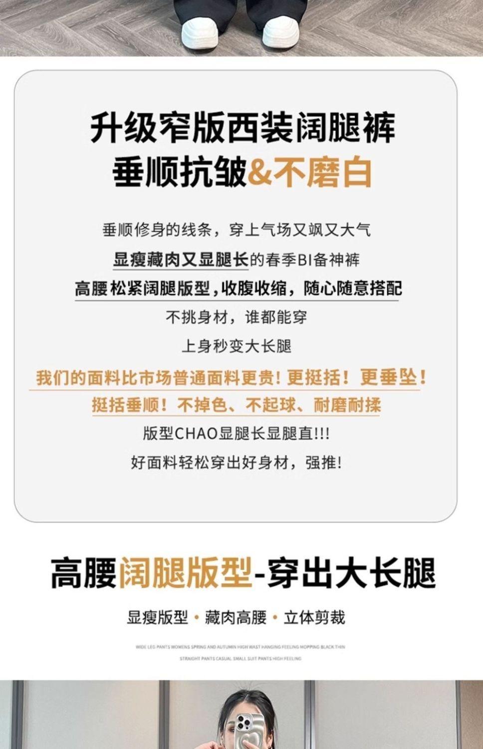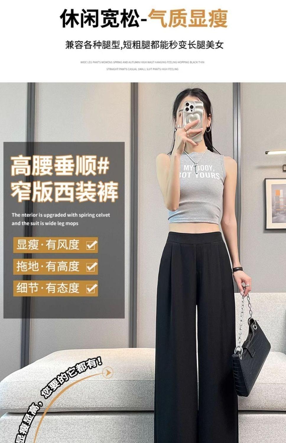 Широкие брюки с высокой талией для женщин больших размеров, весенне-летние тонкие черные универсальные брюки, драпированные прямые брюки, свободный и модный популярный стиль.