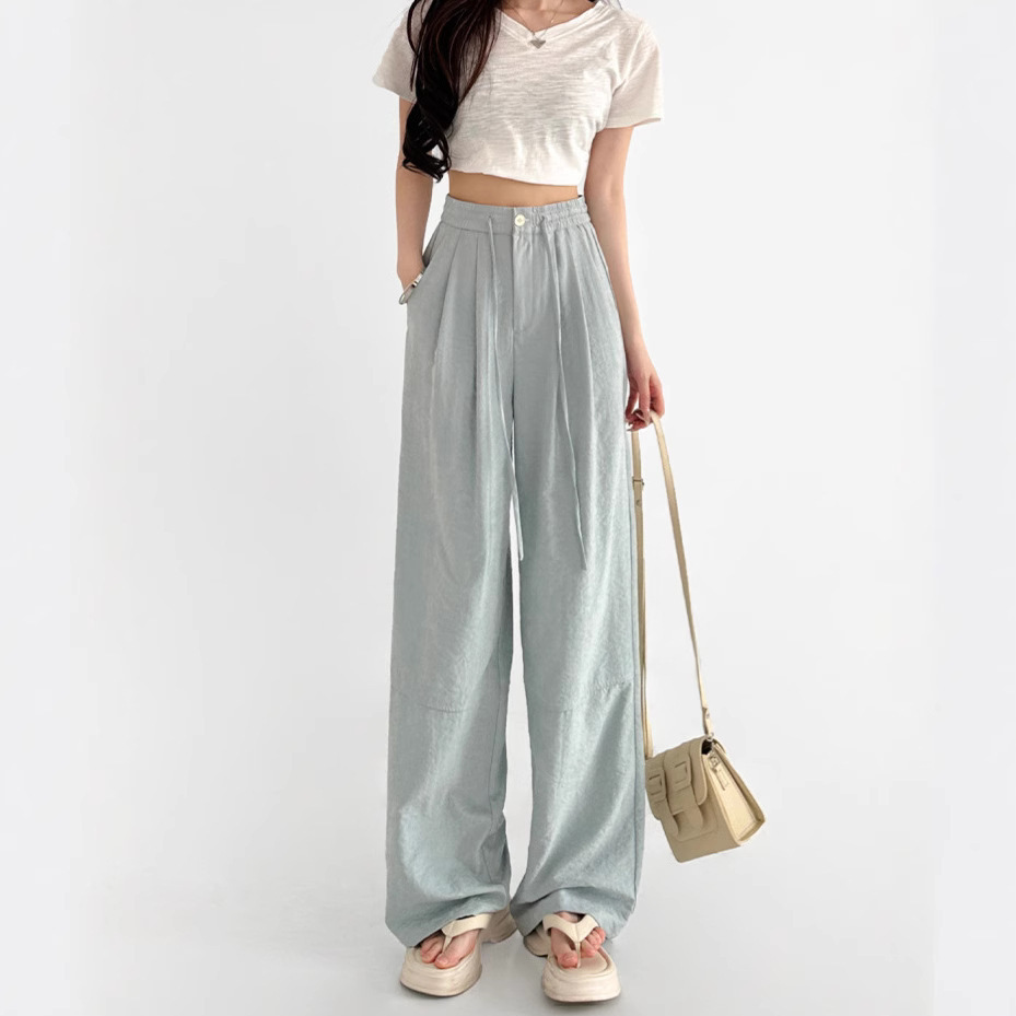 奶芙西装裤女夏季2025新款高腰显瘦休闲裤宽松直筒冰丝垂感阔腿裤