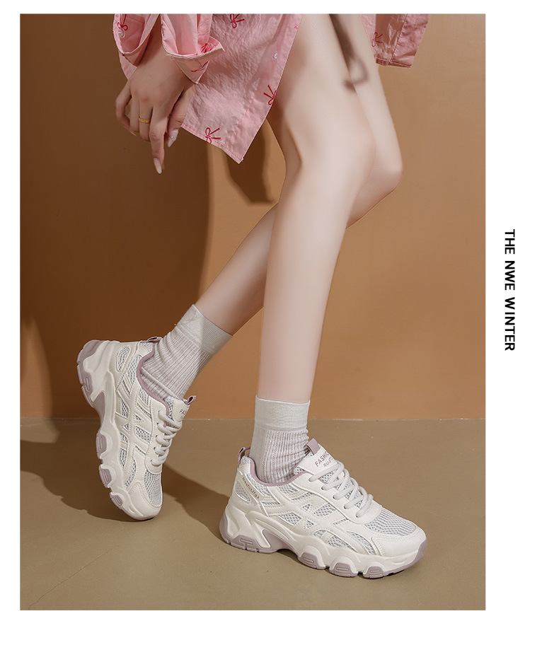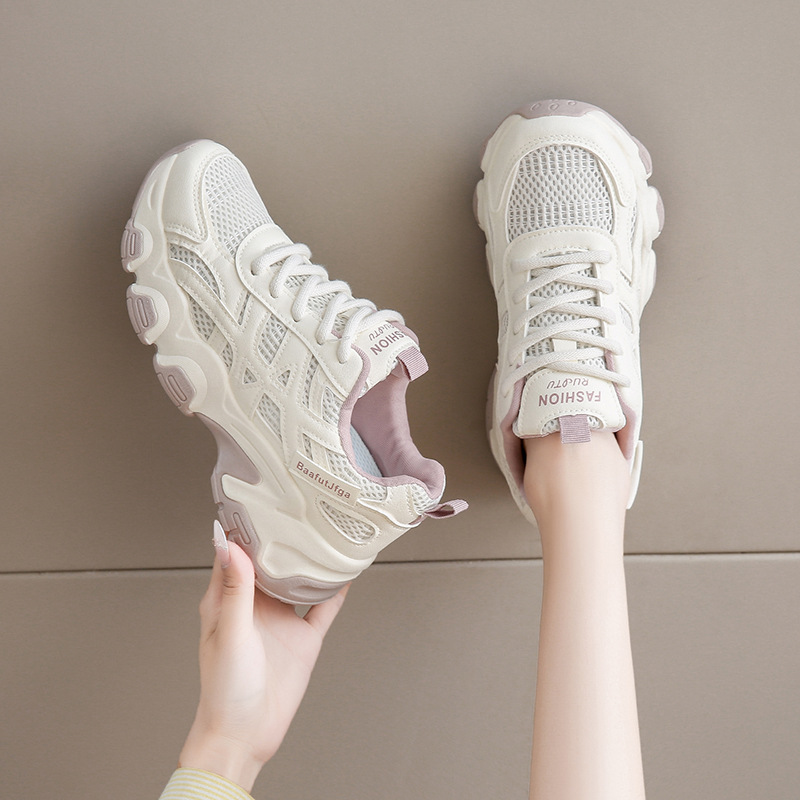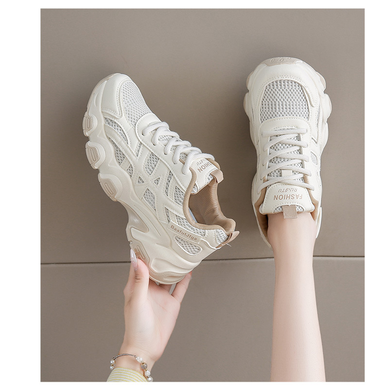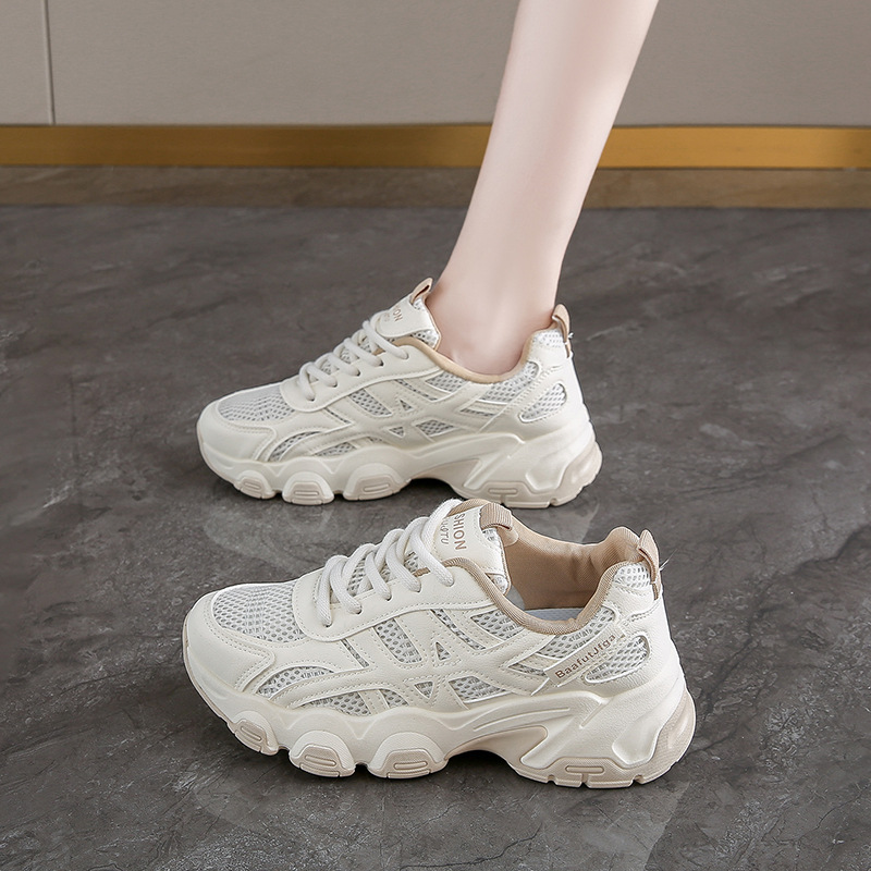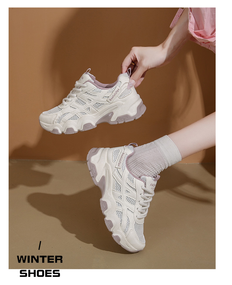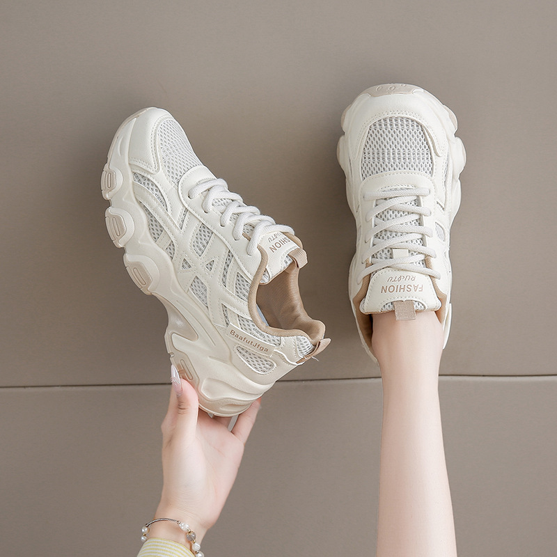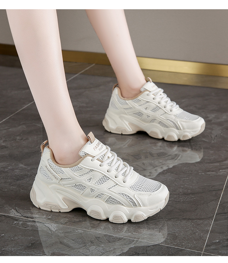 Женские модные универсальные лёгкие дышащие спортивные кроссовки на толстой подошве с эффектом увеличения роста, осень 2025 года.