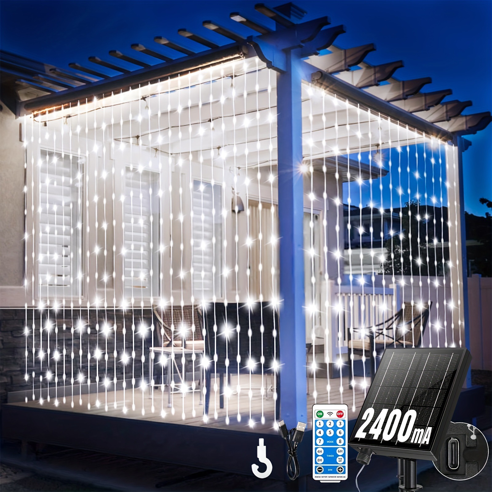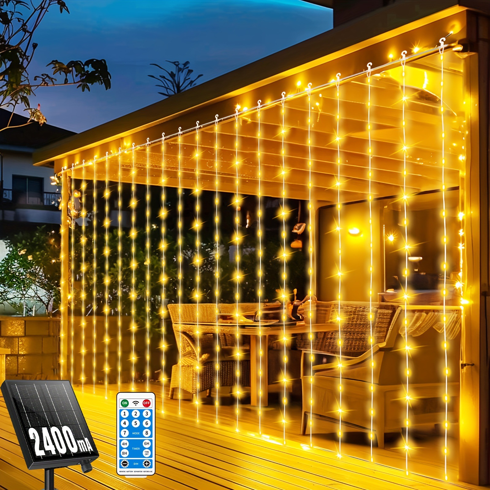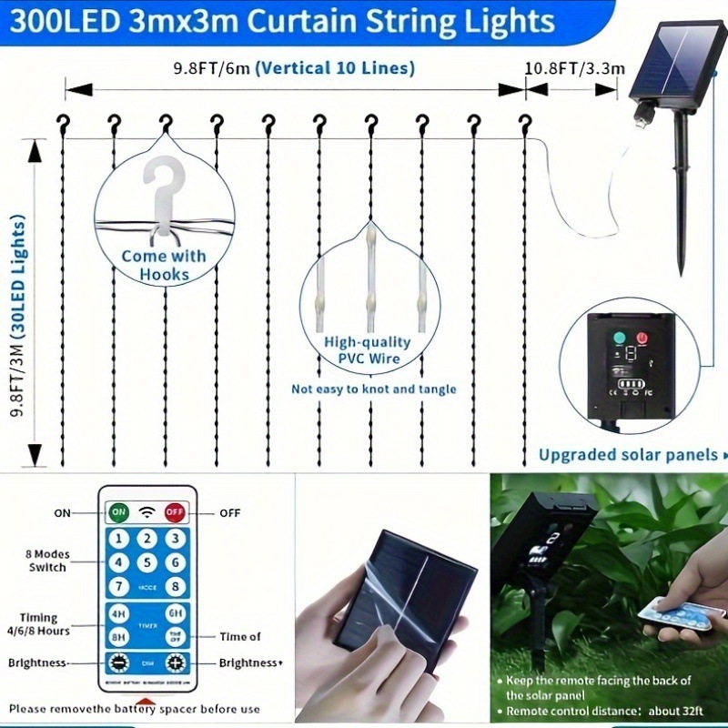 Солнечные световые занавесы 300 светодиодов для улицы на солнечных батареях