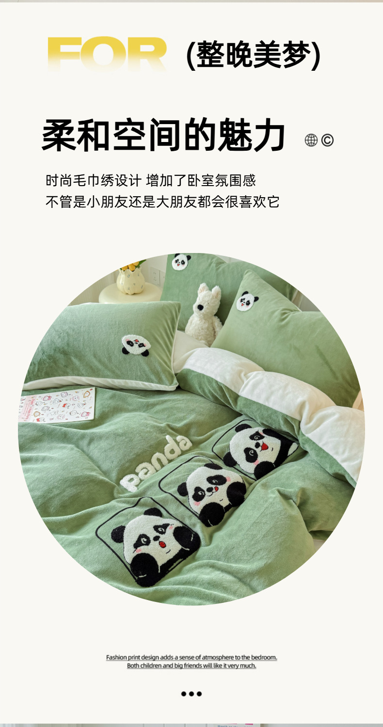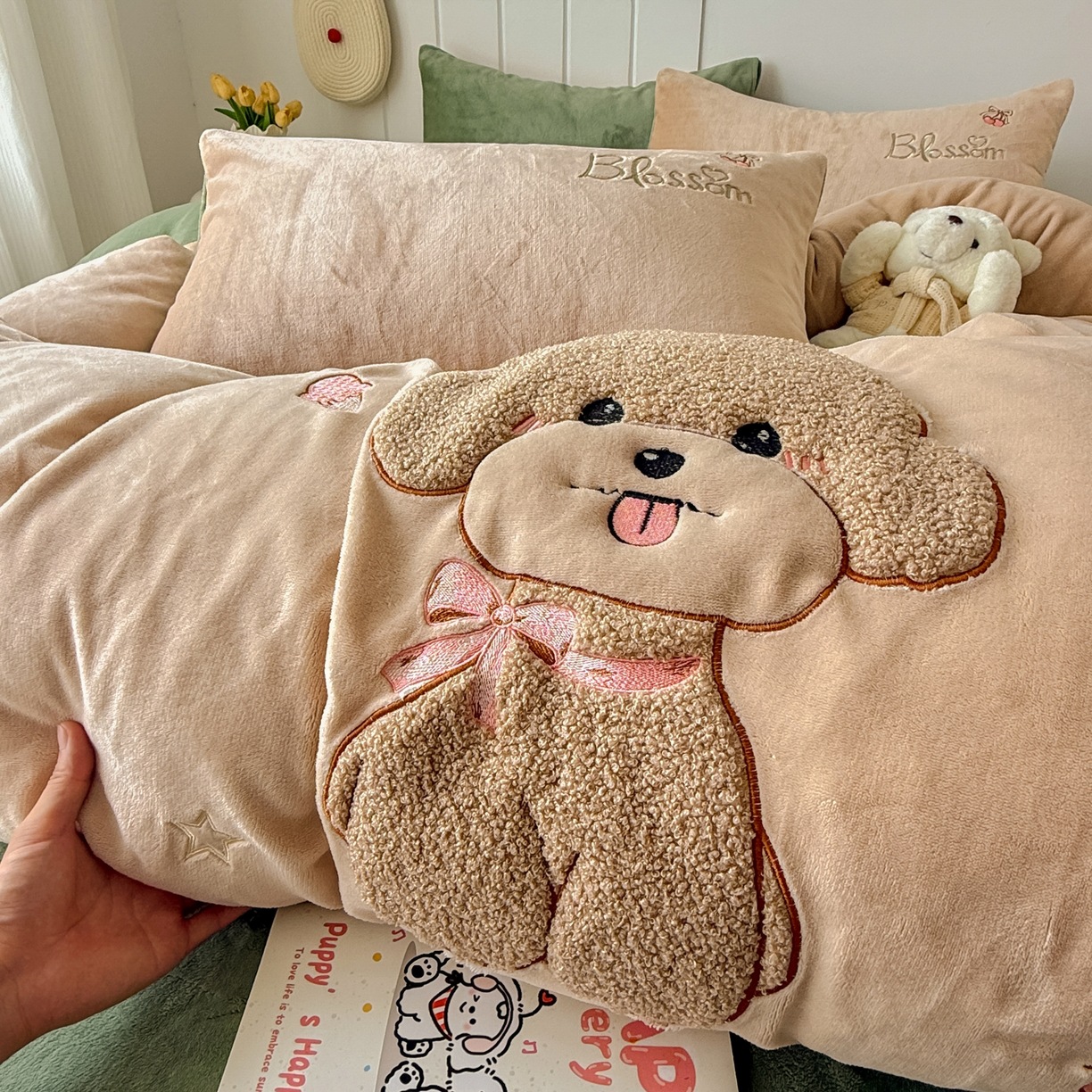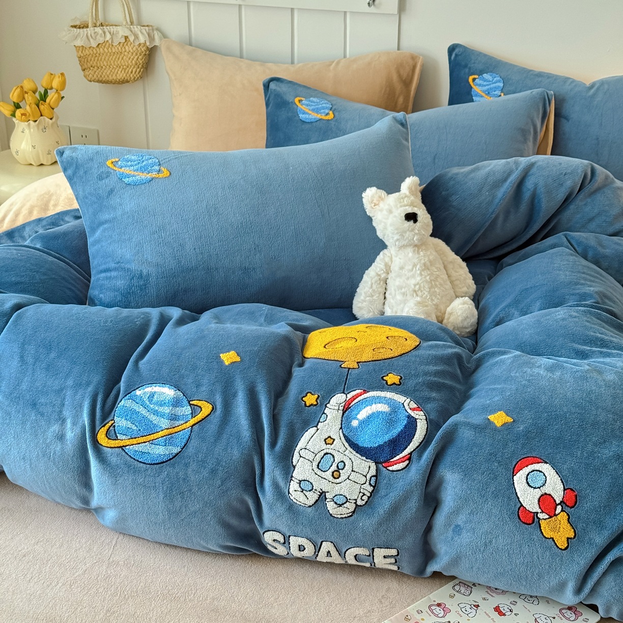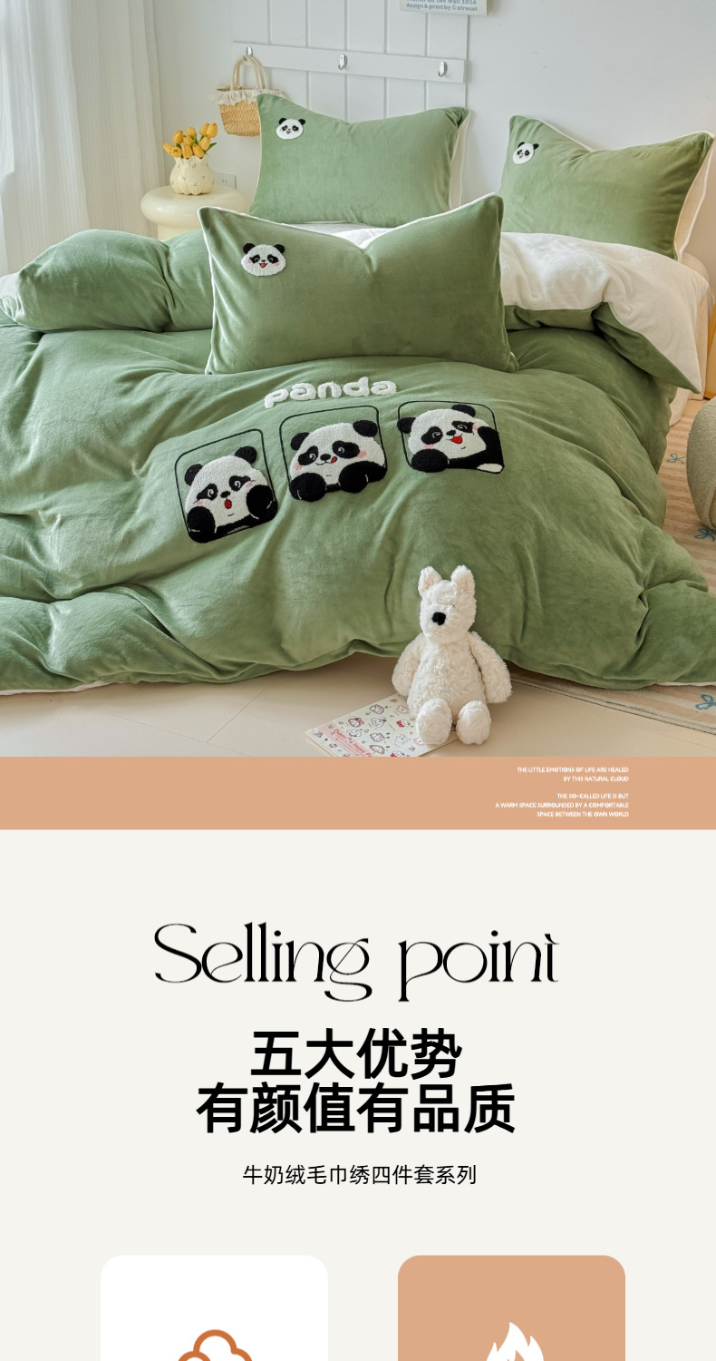2025 новых высококачественных полотенец из молочного вельвета с вышивкой, четырехкомпонентный комплект постельного белья с вышивкой, милый мультяшный дизайн, оптом