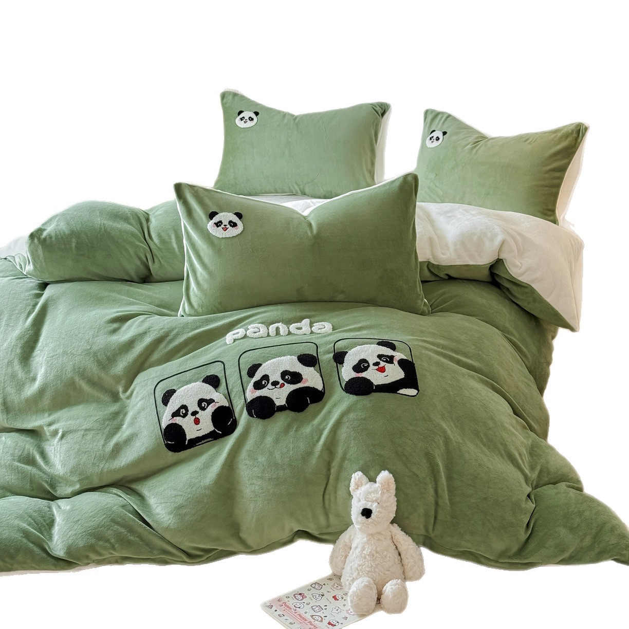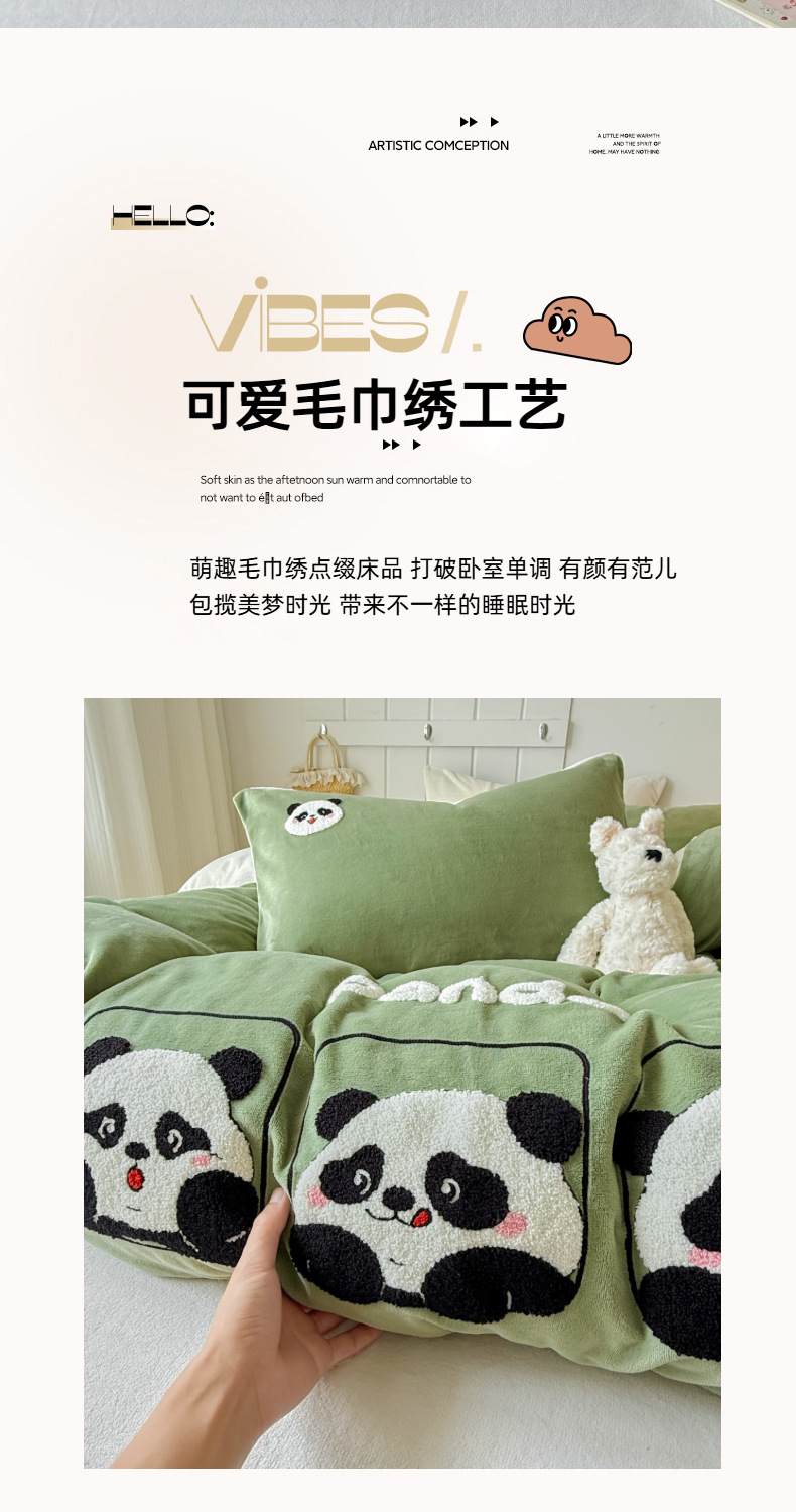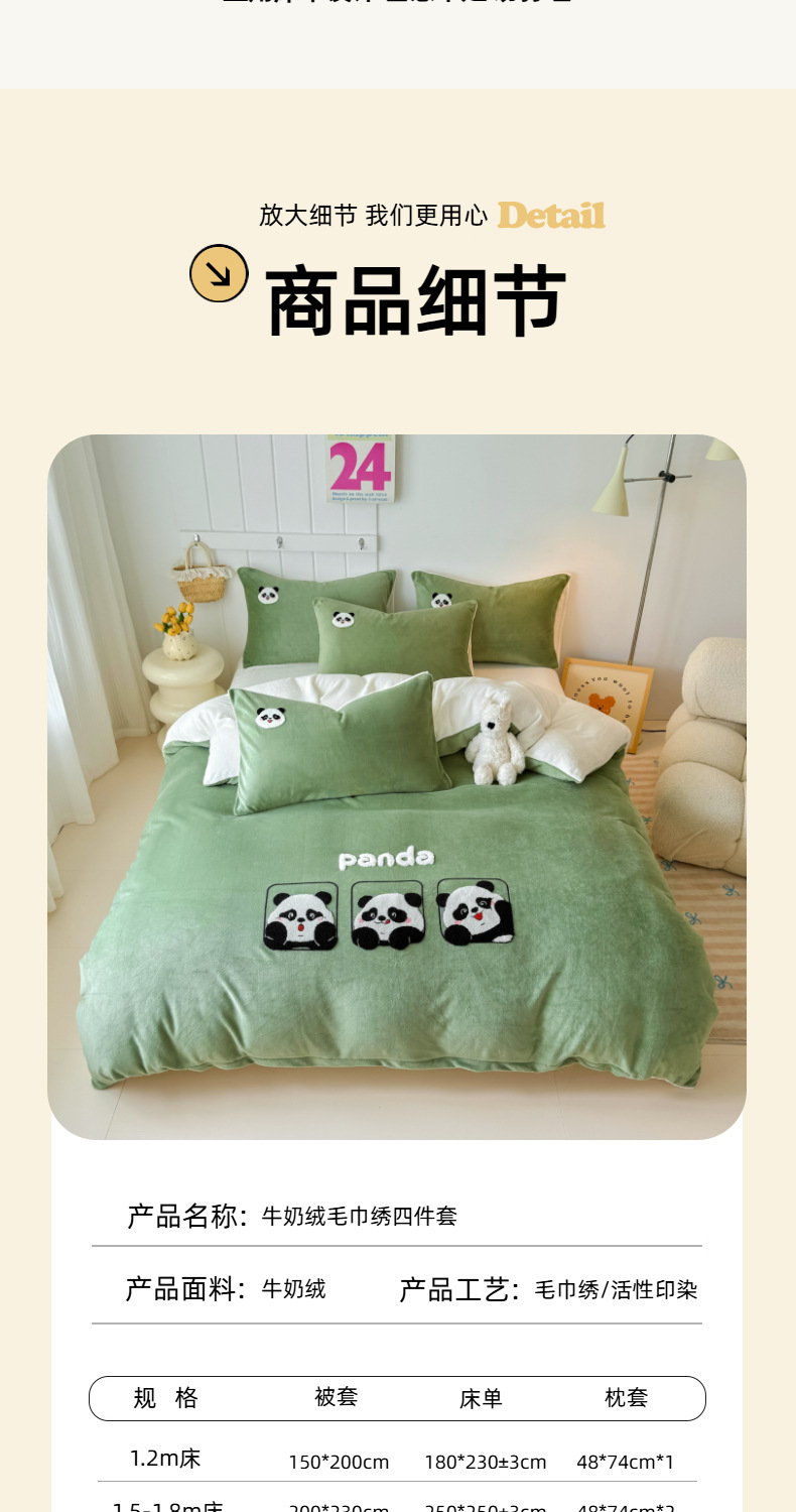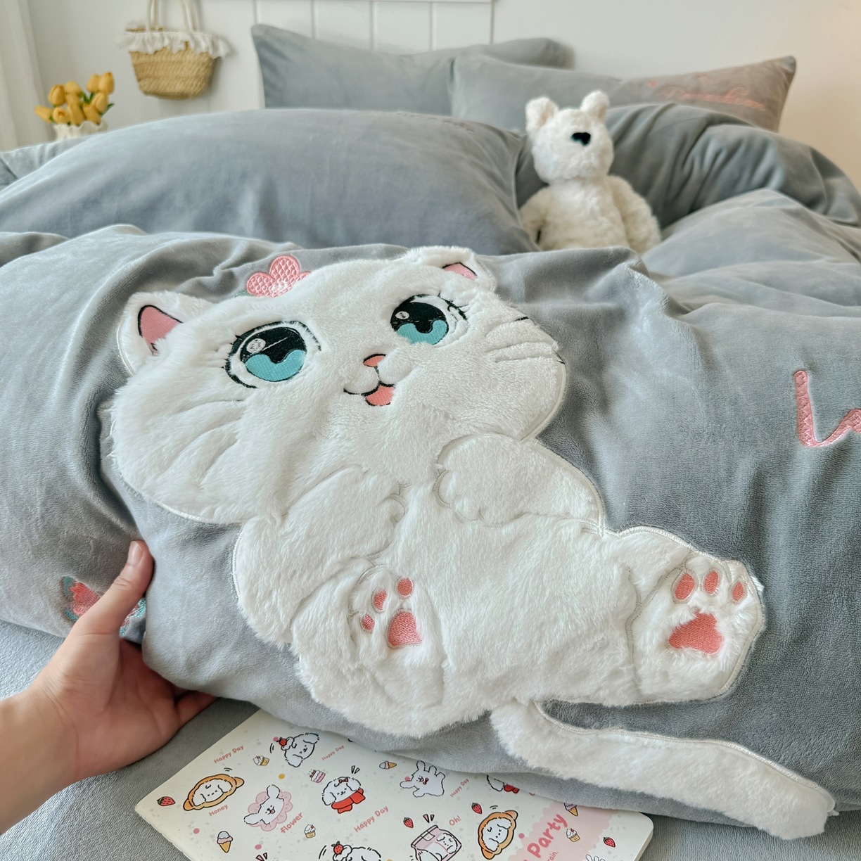 2025 новых высококачественных полотенец из молочного вельвета с вышивкой, четырехкомпонентный комплект постельного белья с вышивкой, милый мультяшный дизайн, оптом