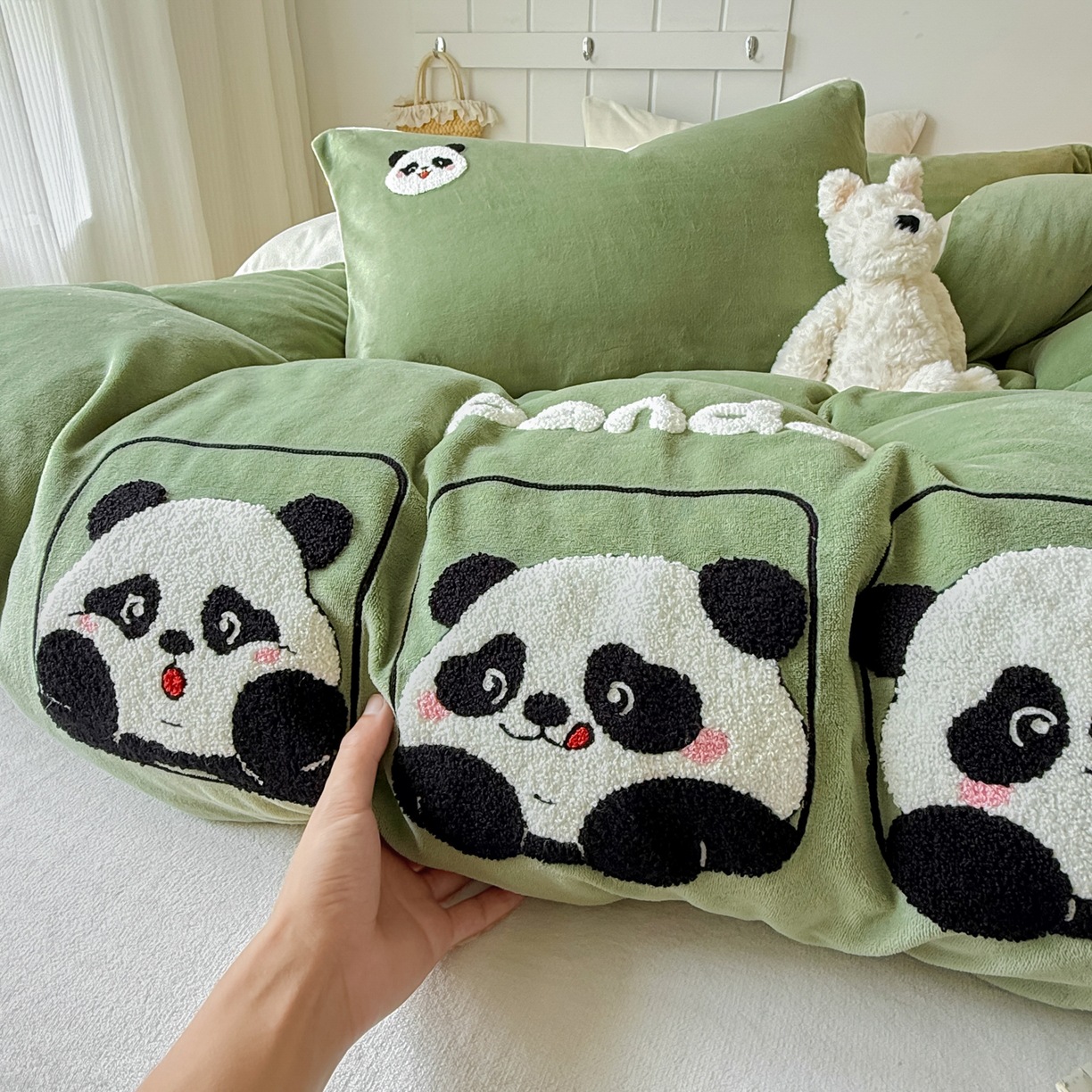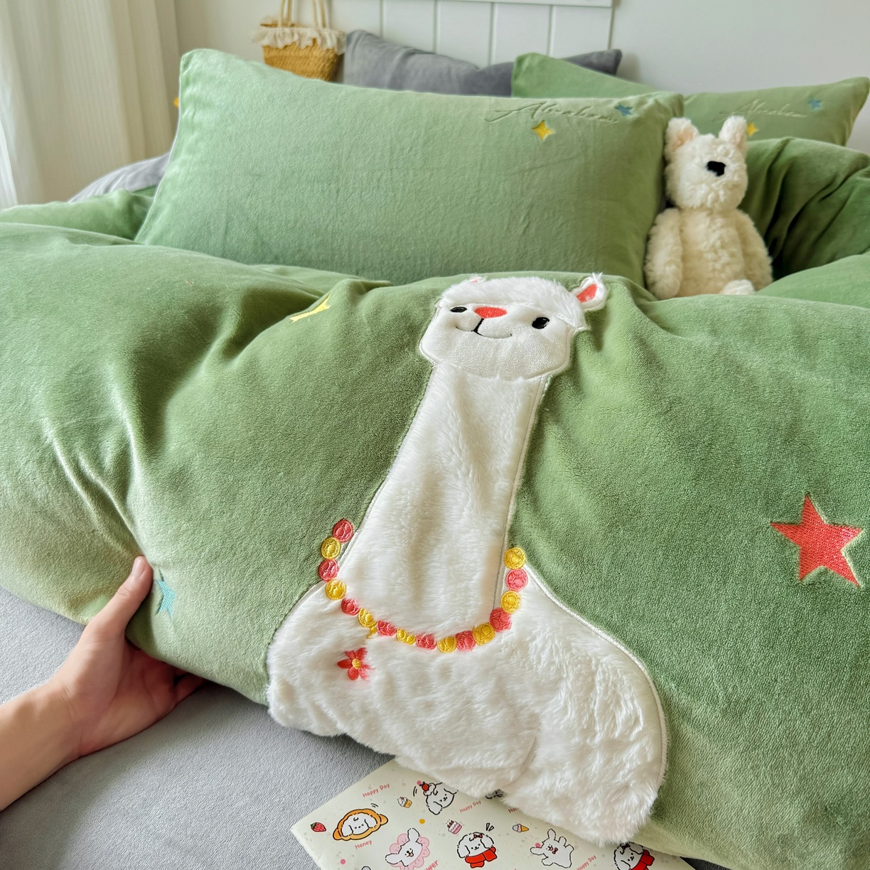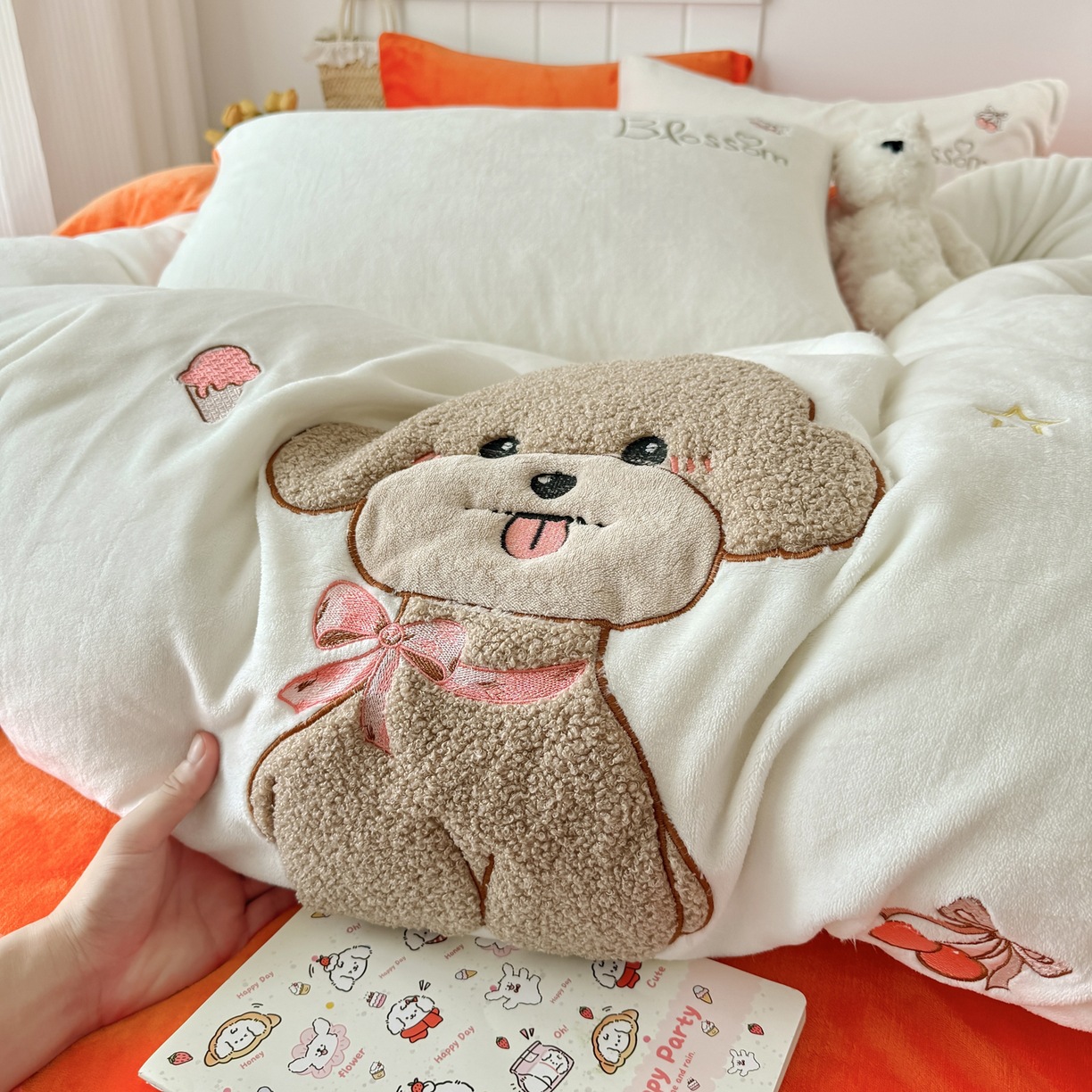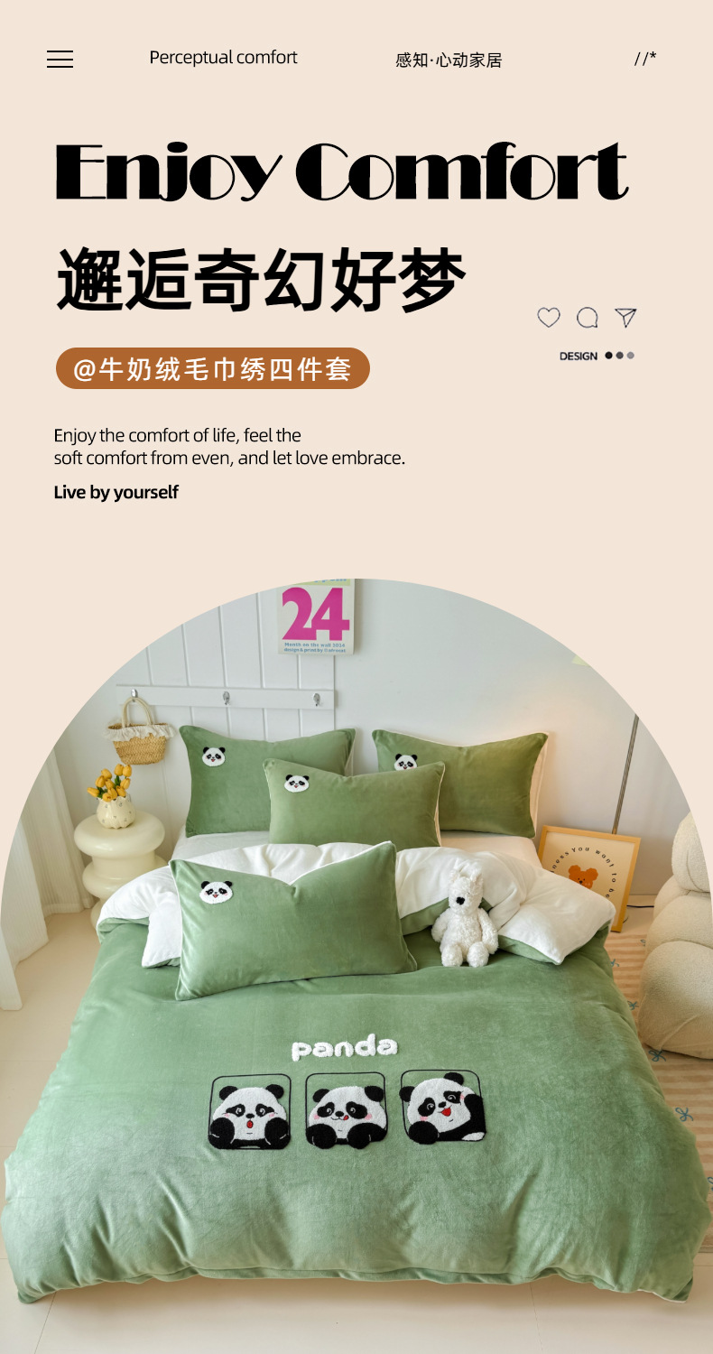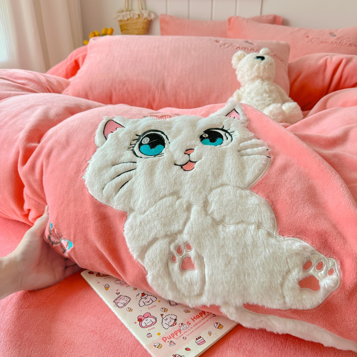 2025 новых высококачественных полотенец из молочного вельвета с вышивкой, четырехкомпонентный комплект постельного белья с вышивкой, милый мультяшный дизайн, оптом