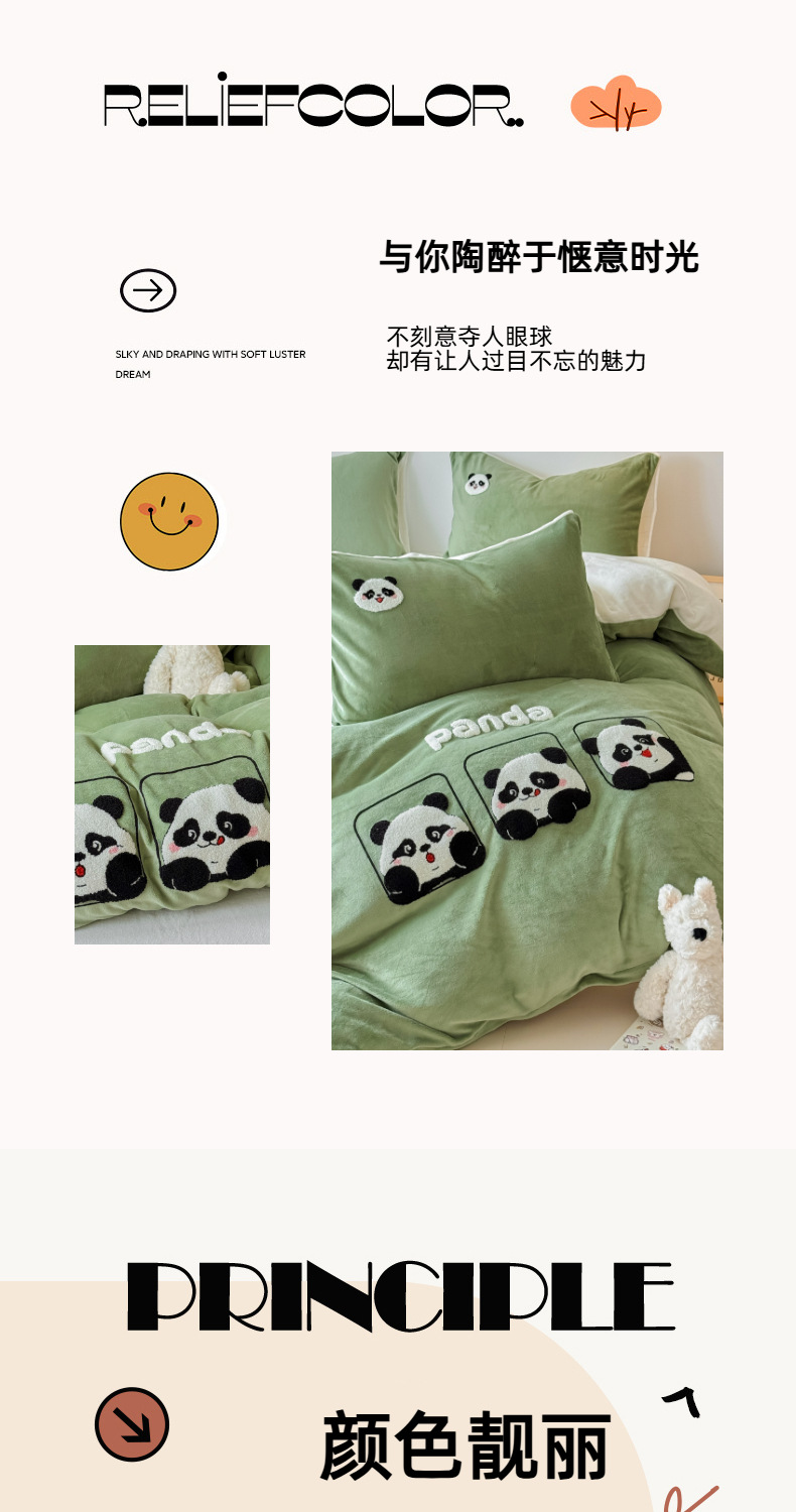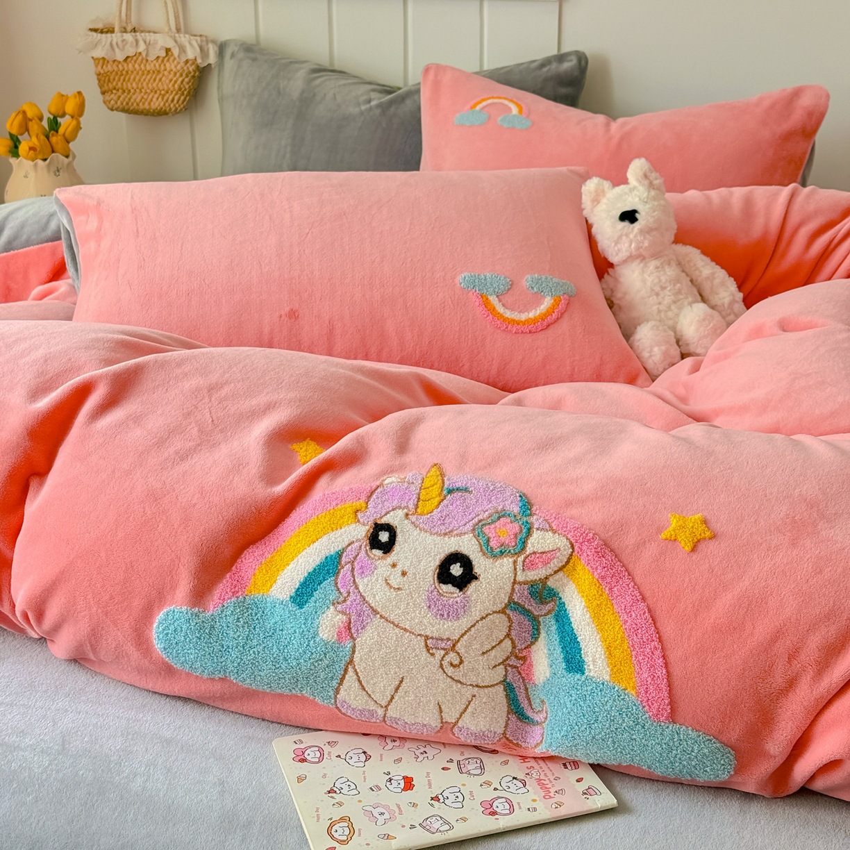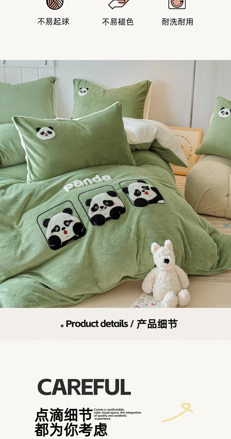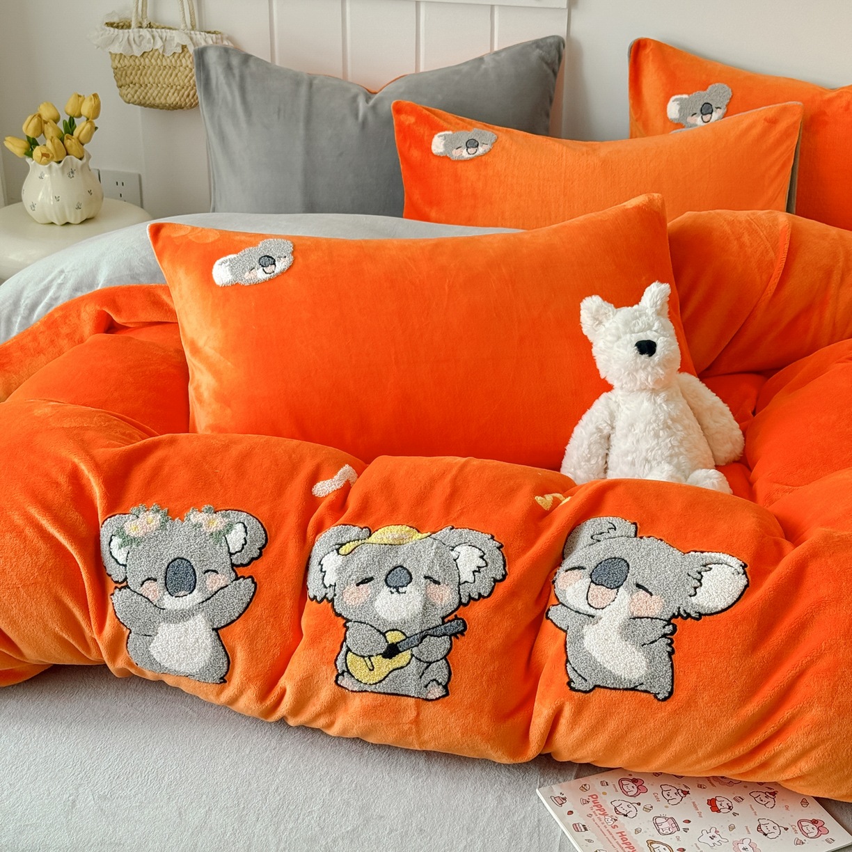 2025 новых высококачественных полотенец из молочного вельвета с вышивкой, четырехкомпонентный комплект постельного белья с вышивкой, милый мультяшный дизайн, оптом