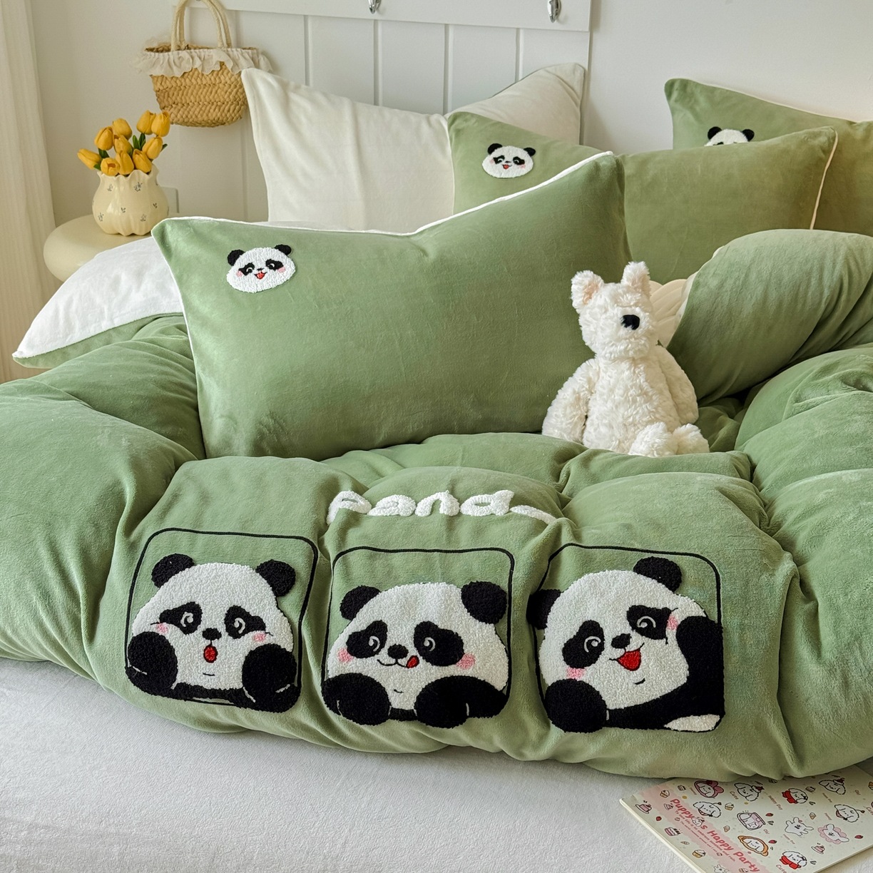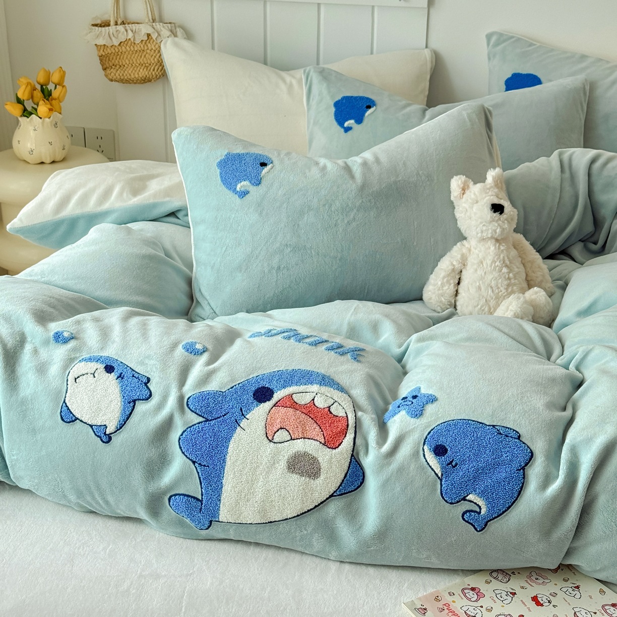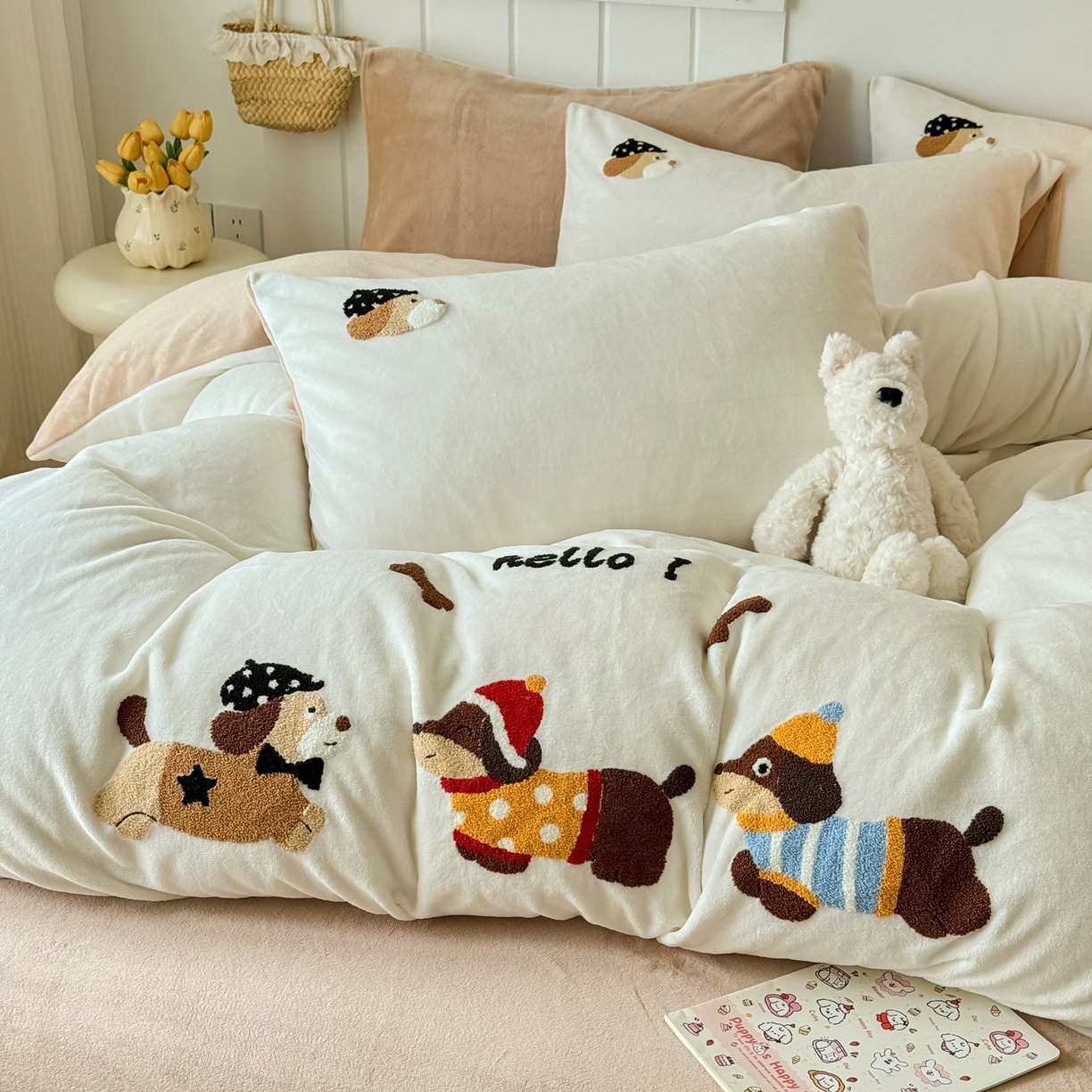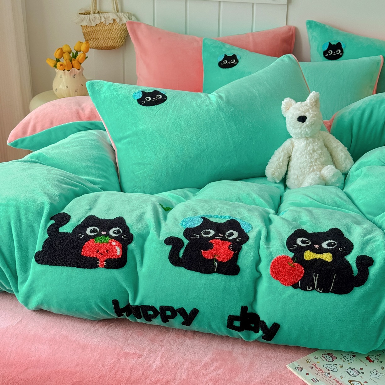 2025 новых высококачественных полотенец из молочного вельвета с вышивкой, четырехкомпонентный комплект постельного белья с вышивкой, милый мультяшный дизайн, оптом