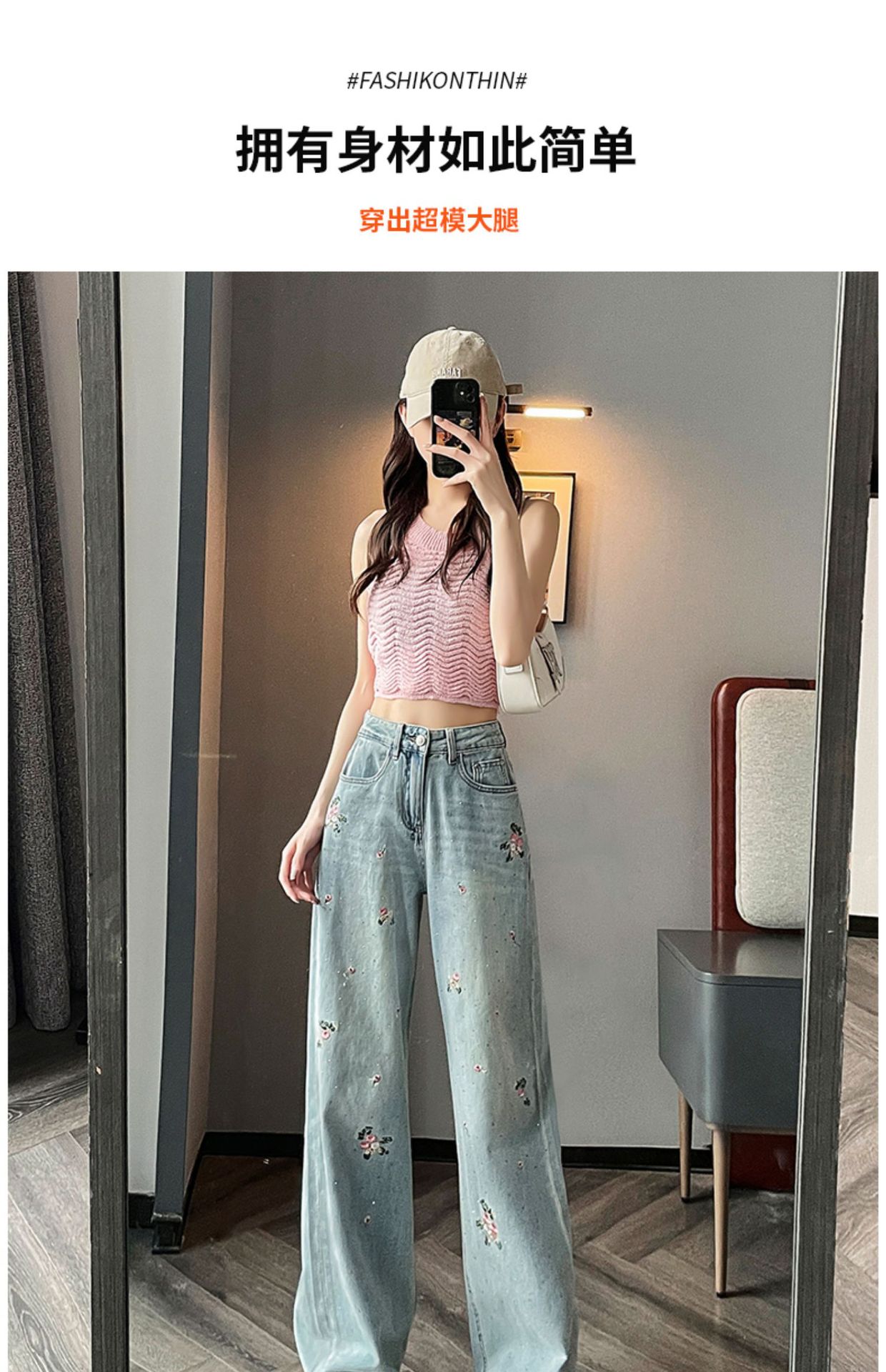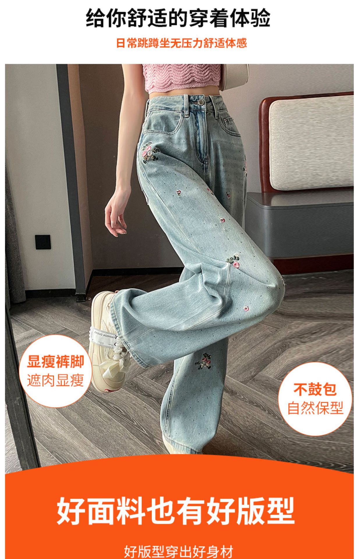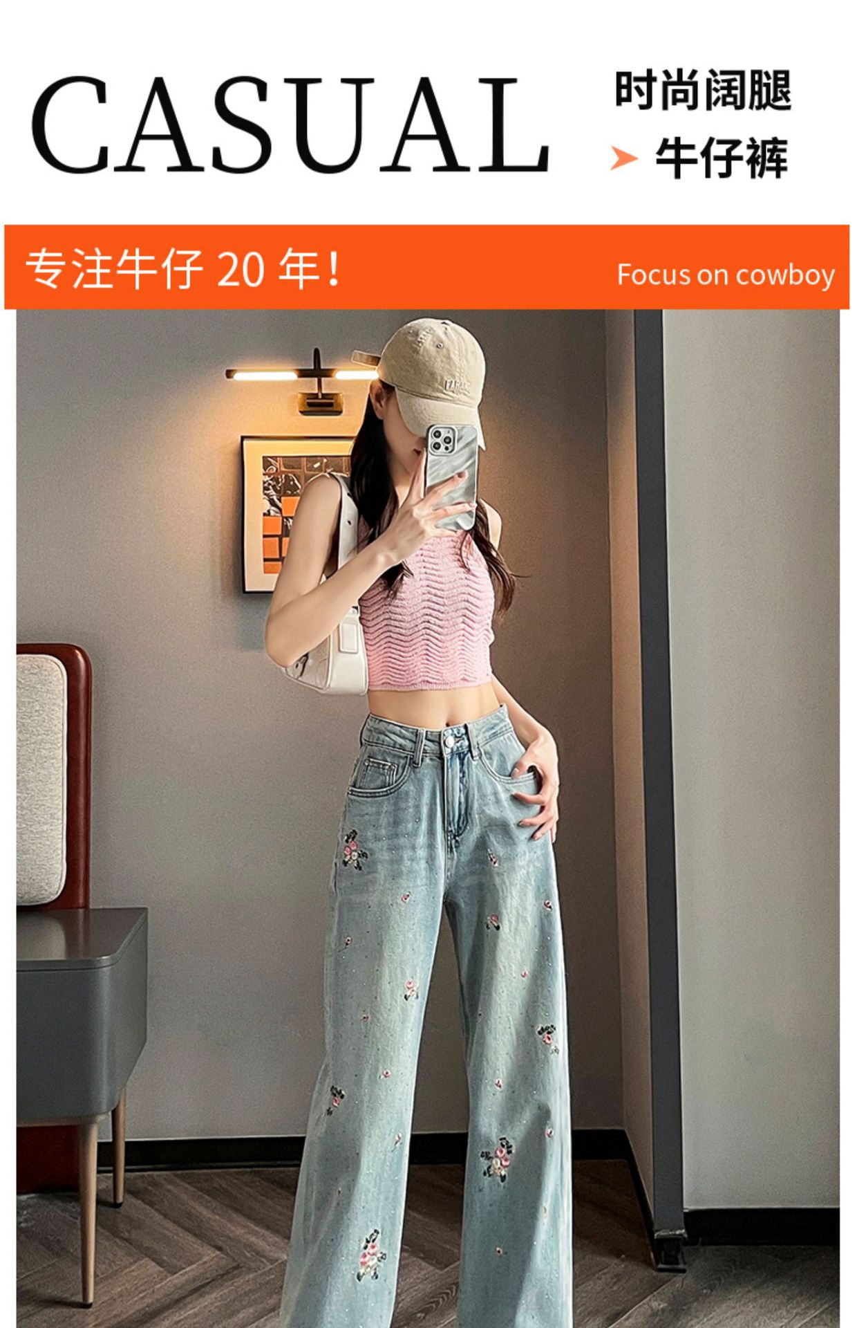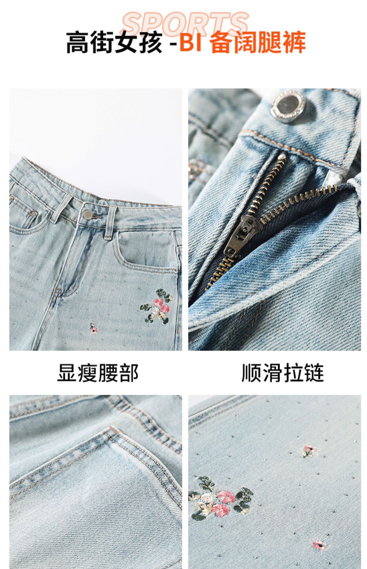 Новые широкие джинсы в китайском стиле с вышивкой и стразами для женщин, лето 2025, свободные узкие брюки длиной до пола с вышивкой