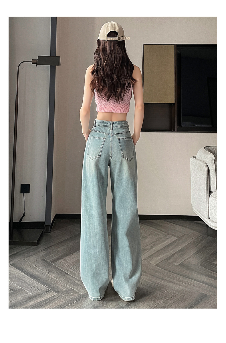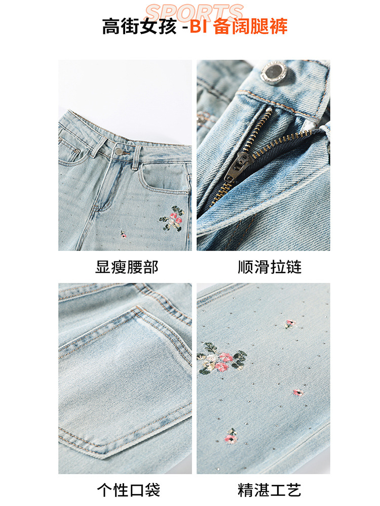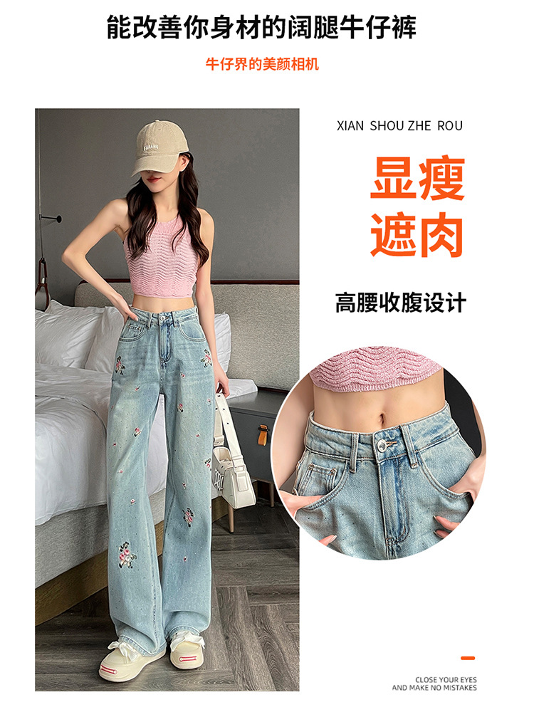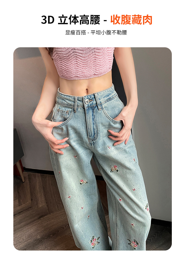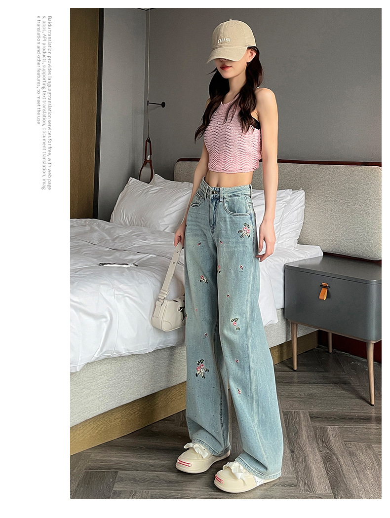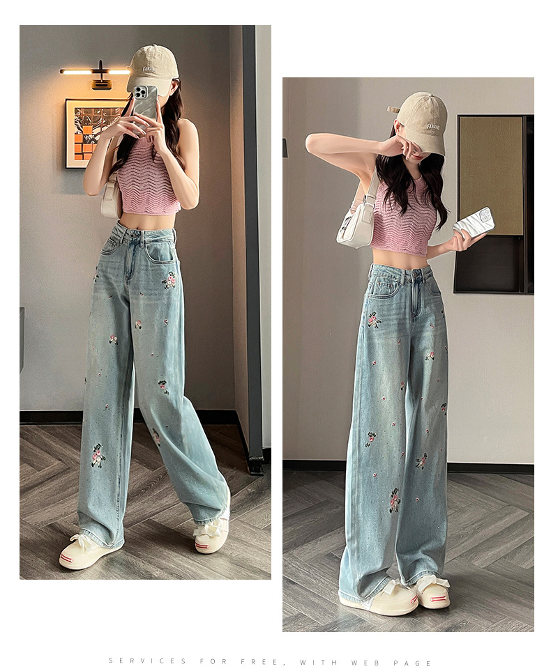 Новые широкие джинсы в китайском стиле с вышивкой и стразами для женщин, лето 2025, свободные узкие брюки длиной до пола с вышивкой