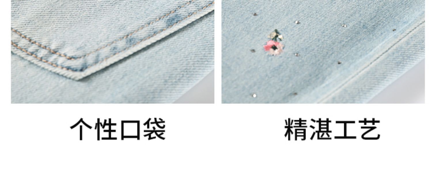 Узор с блестками Полированный Белый Вымывание Другое/другое Контрастный цвет Несколько карманов Пуговицы Машинная вышивка Стиль потертой молнии