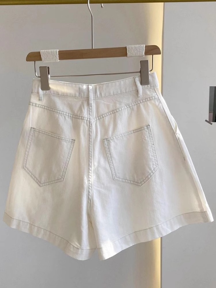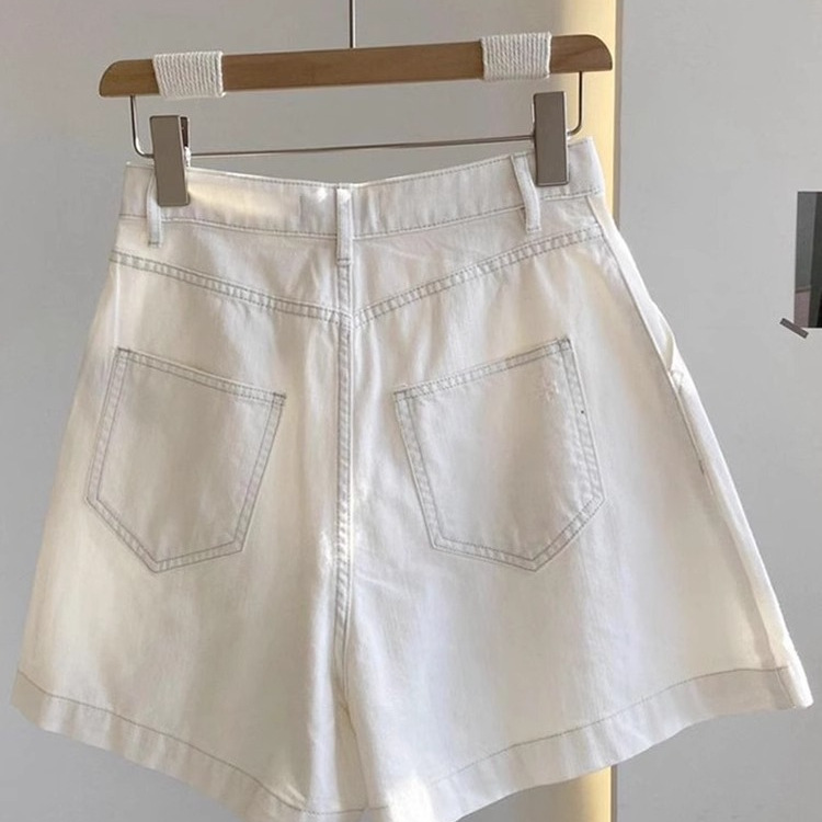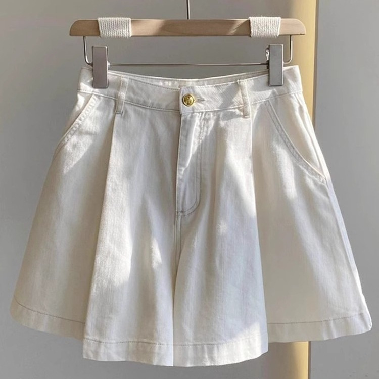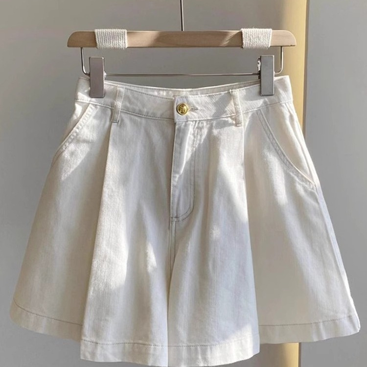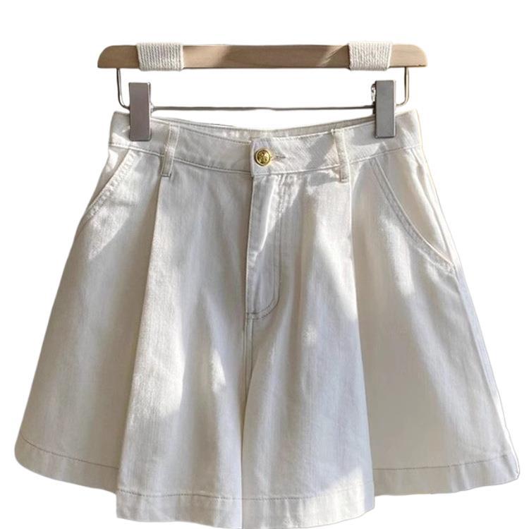 牛X货 巨炸裂!粗腿MM必入宽松高腰阔腿A字美式轻奢白色牛仔短裤