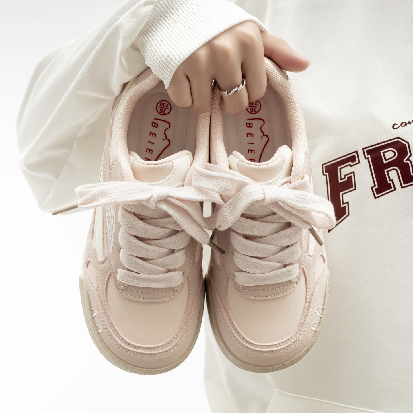 蓓尔休闲板鞋2025秋季新款复古软底时尚百搭女厚底增高女款小白鞋