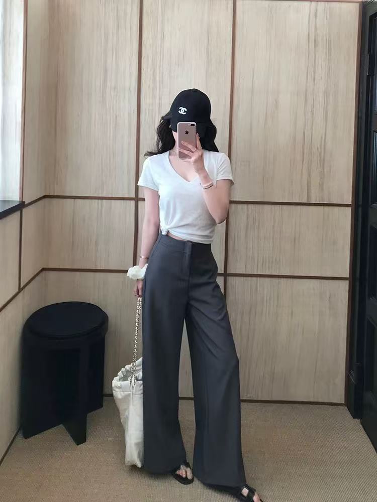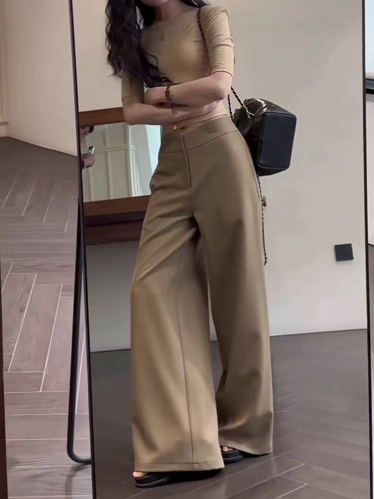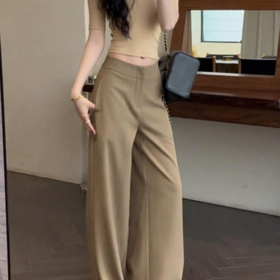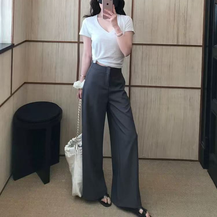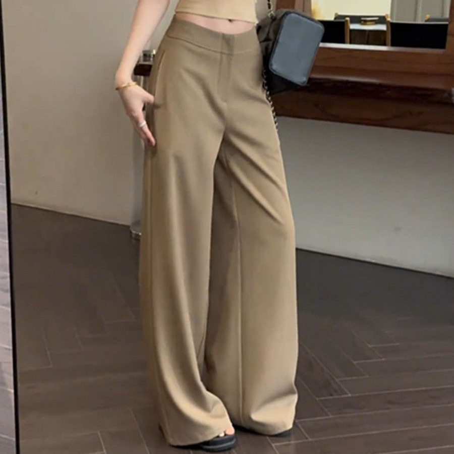 Весенне-летние новые женские брюки в корейском стиле, дизайн со средней талией, универсальные, облегающие, свободные широкие брюки.