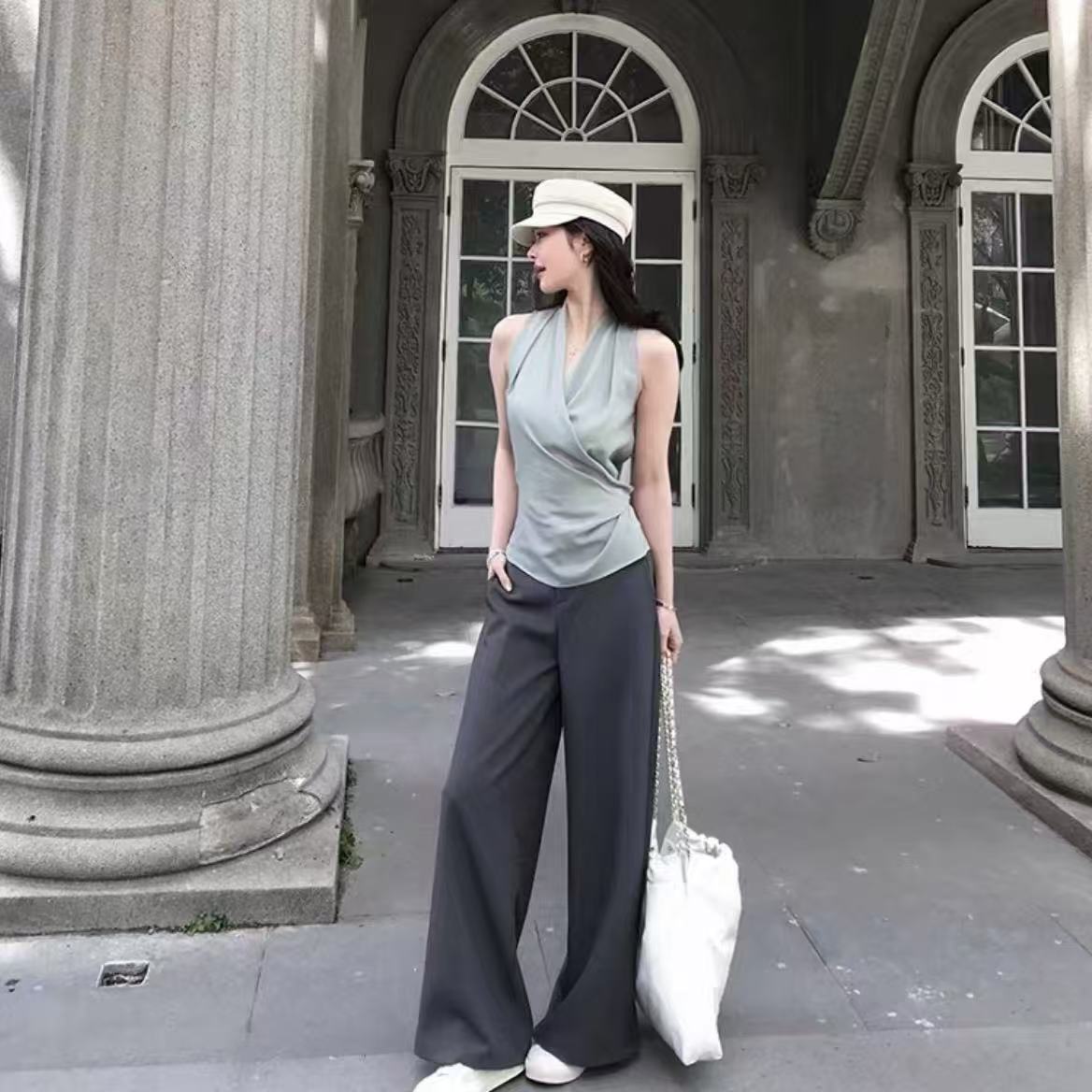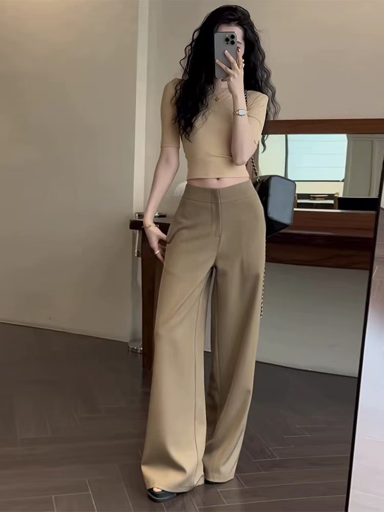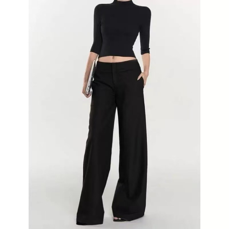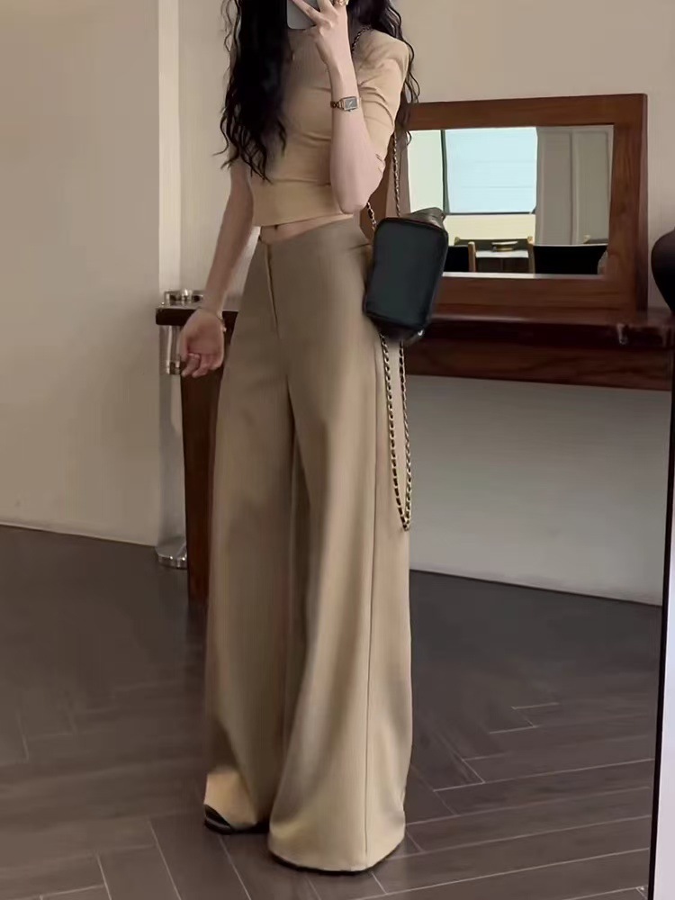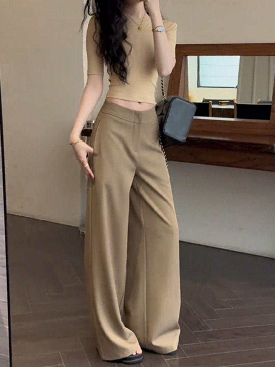 Весенне-летние новые женские брюки в корейском стиле, дизайн со средней талией, универсальные, облегающие, свободные широкие брюки.
