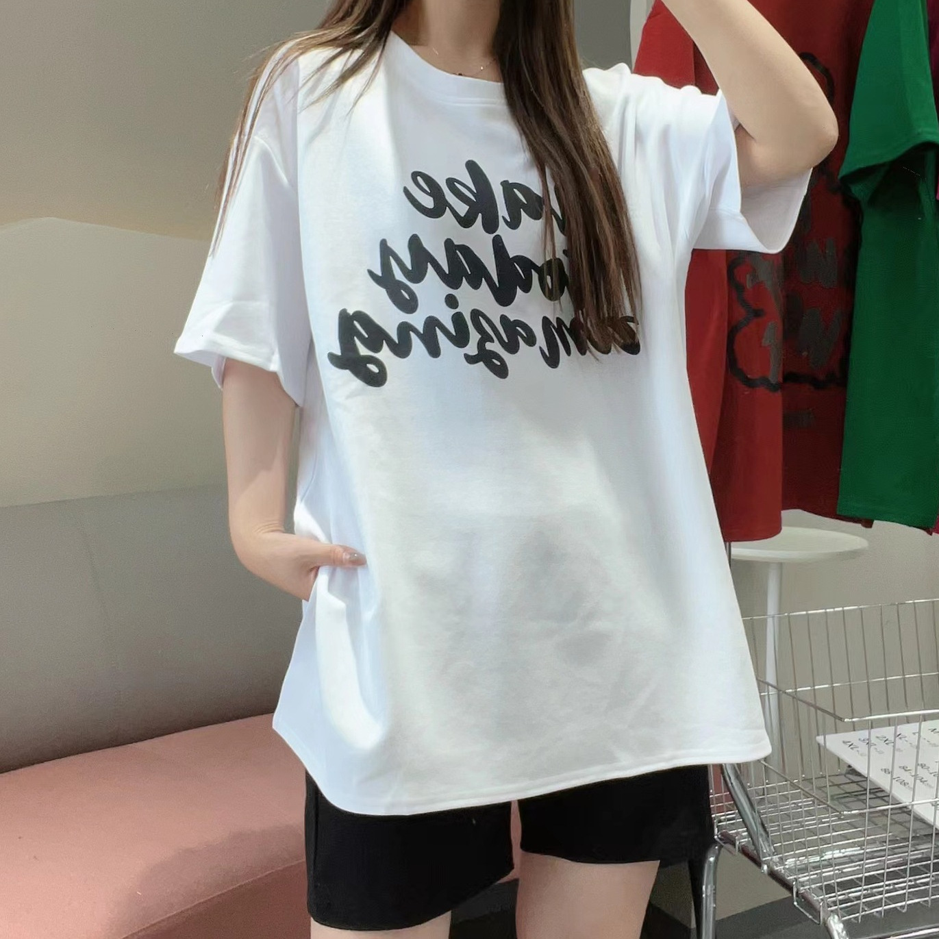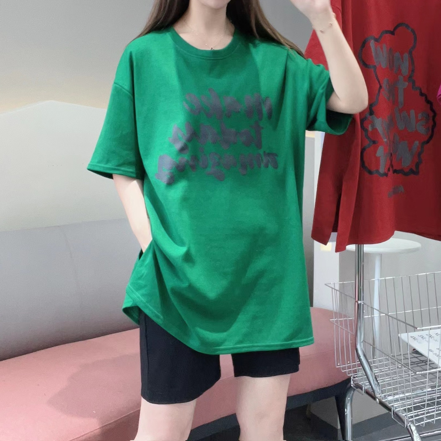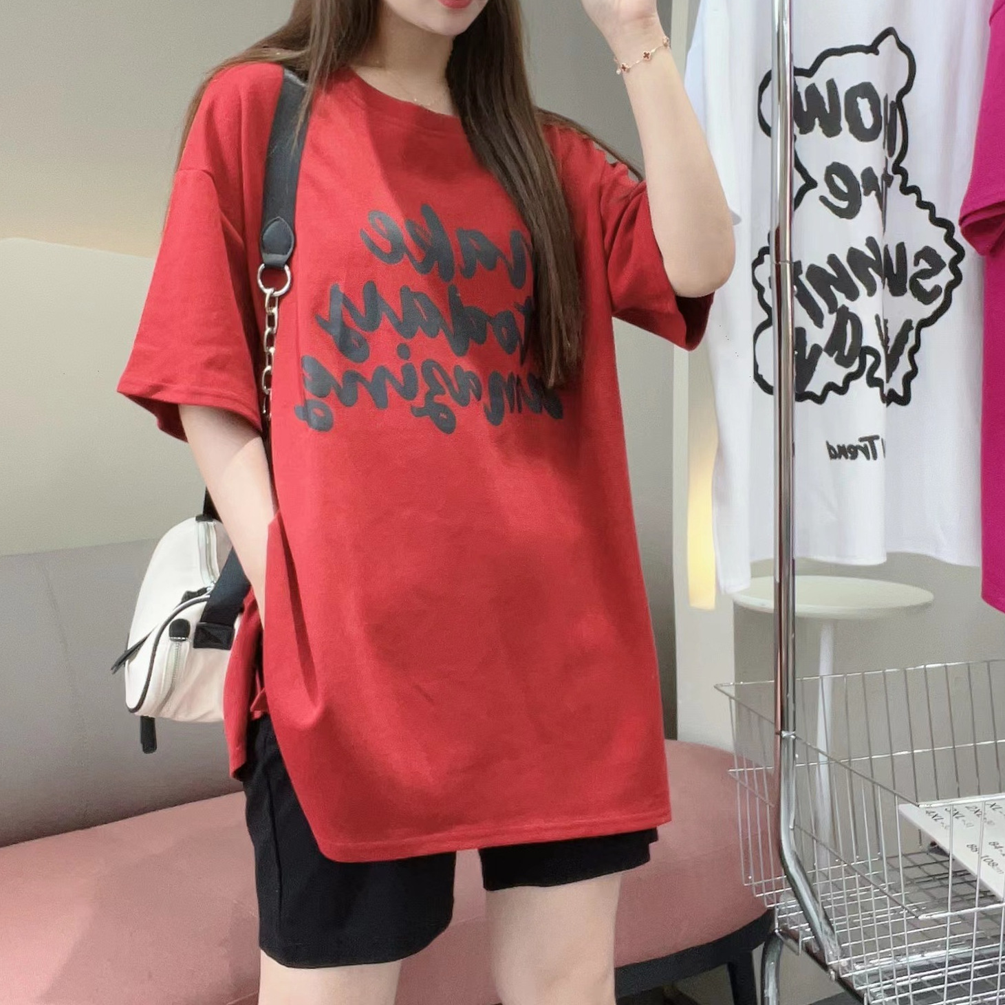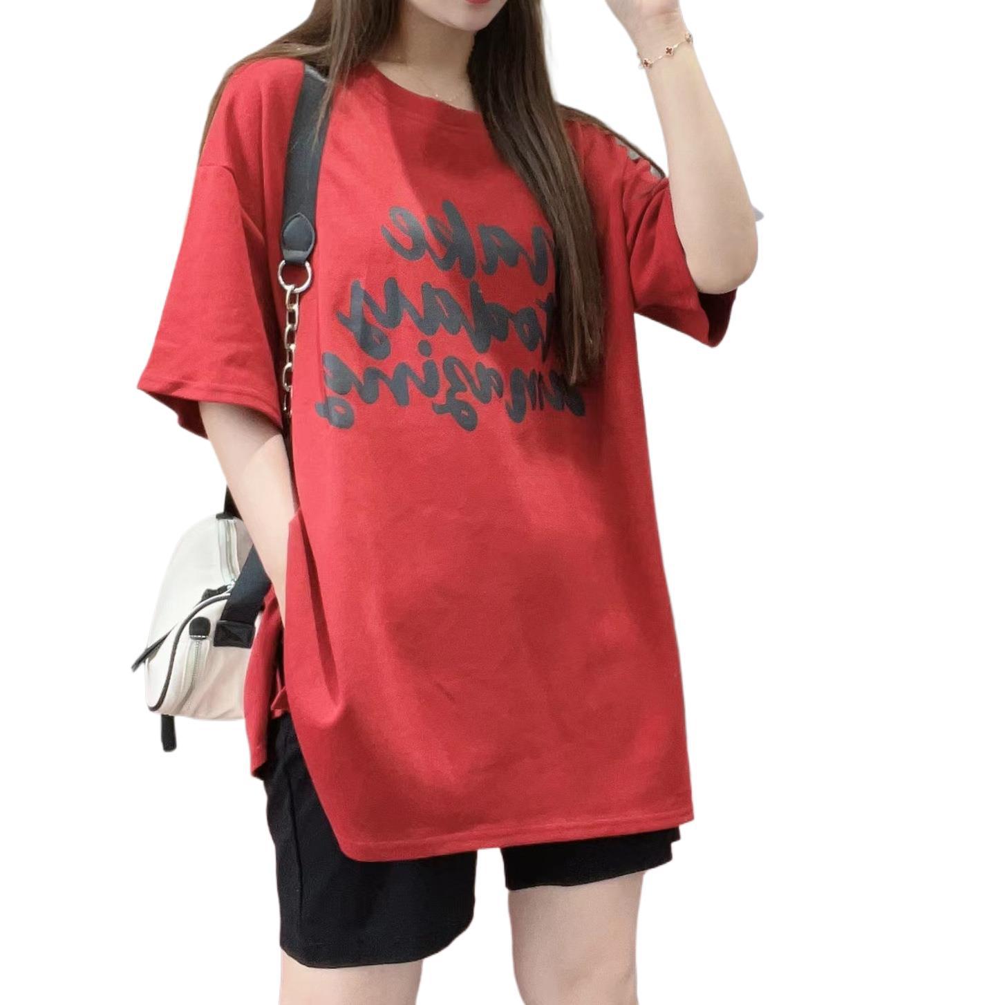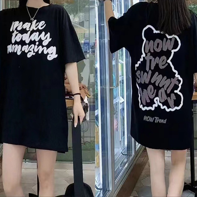 -新款夏季时尚显瘦甜美圆领印花休闲百搭宽松后背小熊字母纯色T恤