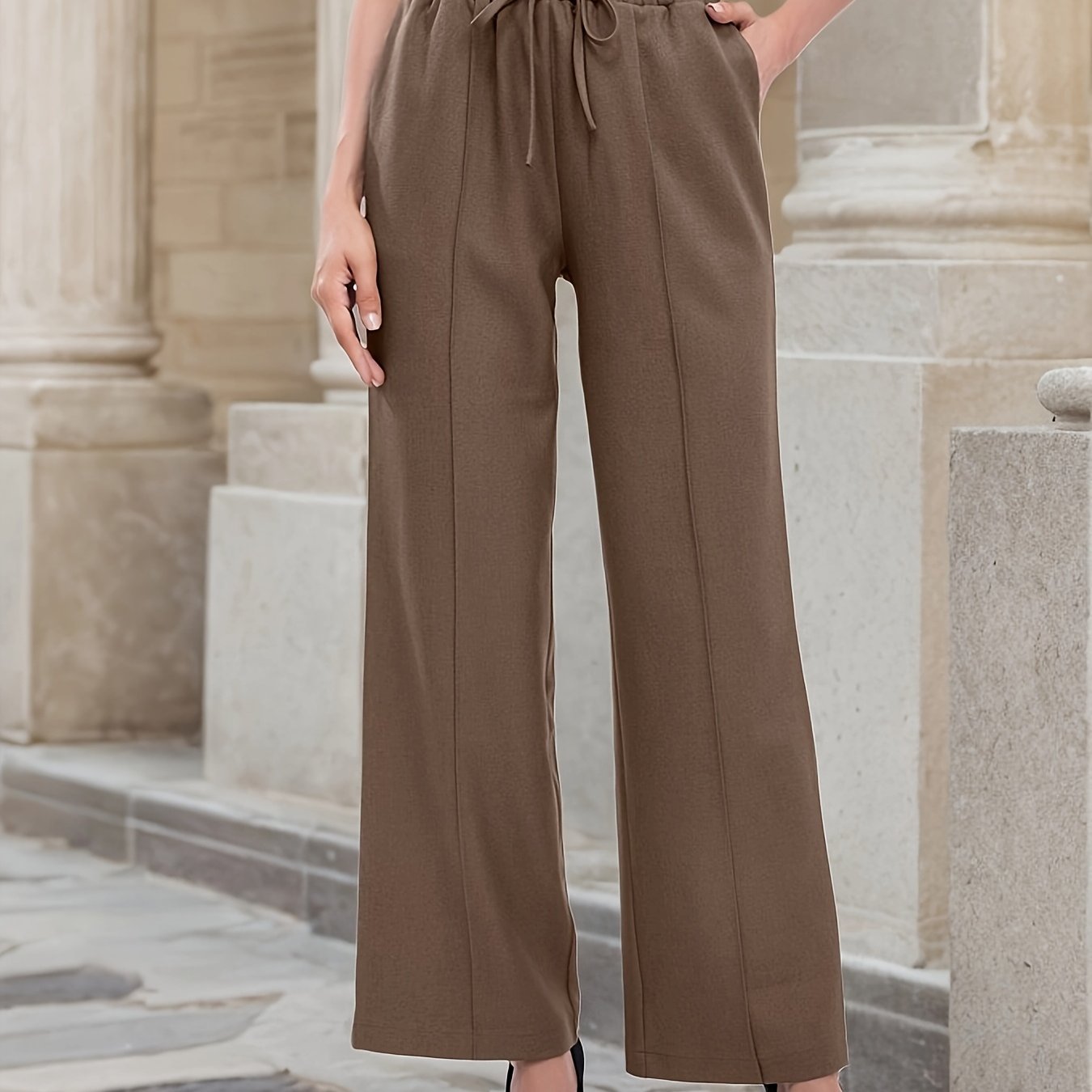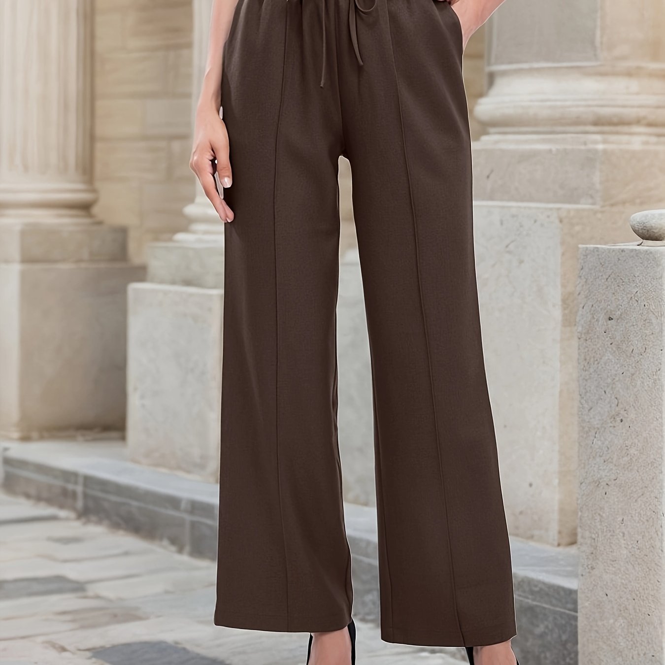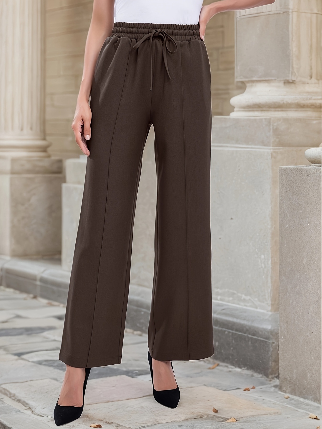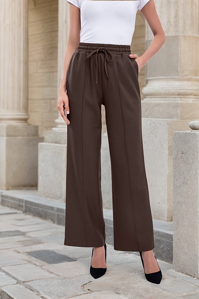Women's High Waisted Elastic Waist Drawstring Pleated Wide