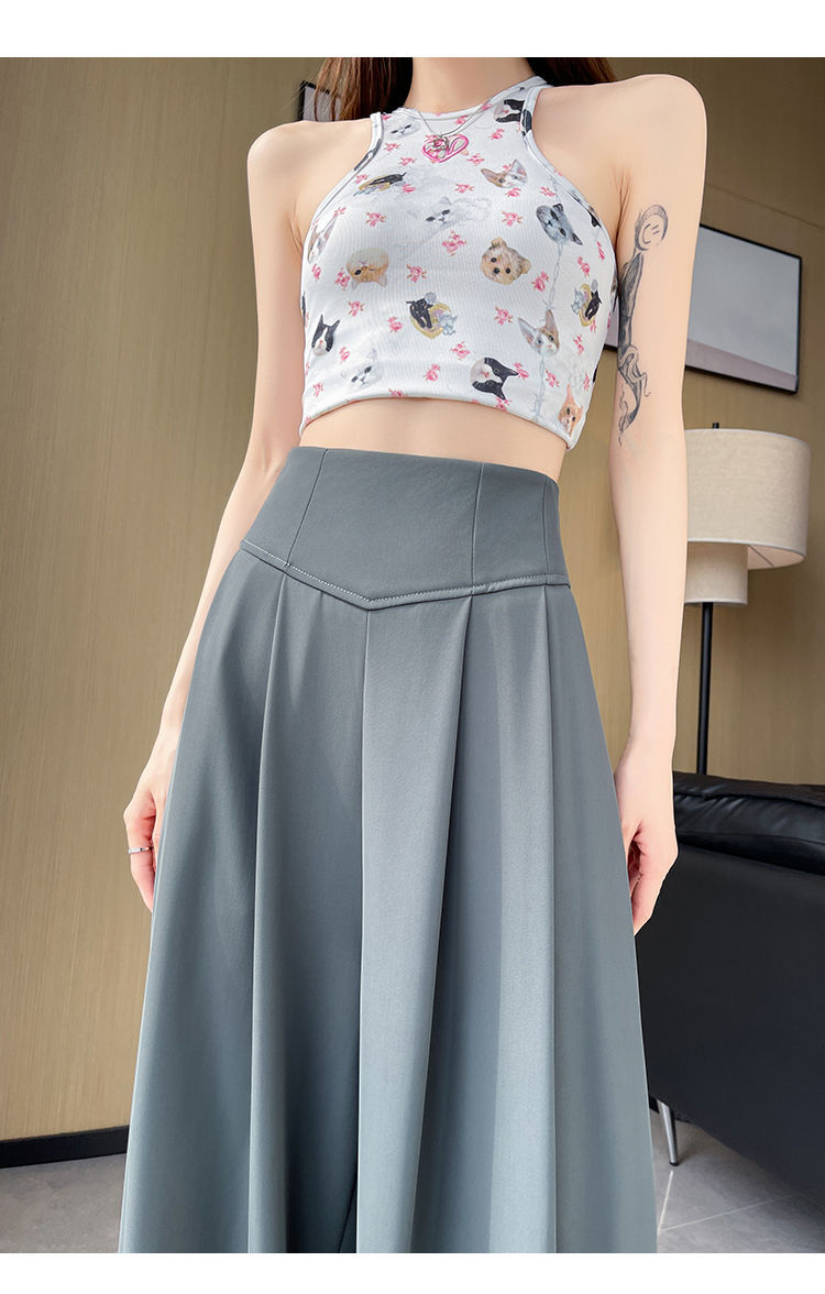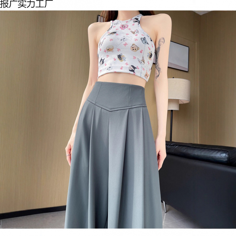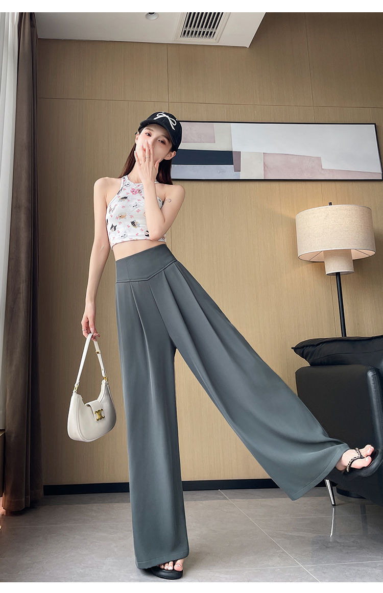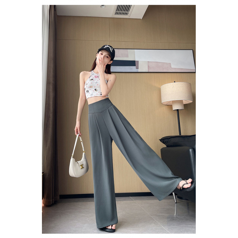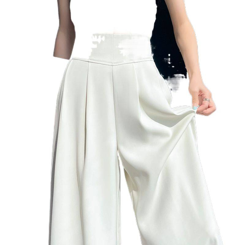 Женские брюки-костюм 2025 лето новые средняя посадка утягивающие драпированные универсальные повседневные свободные прямые широкие брюки в пол