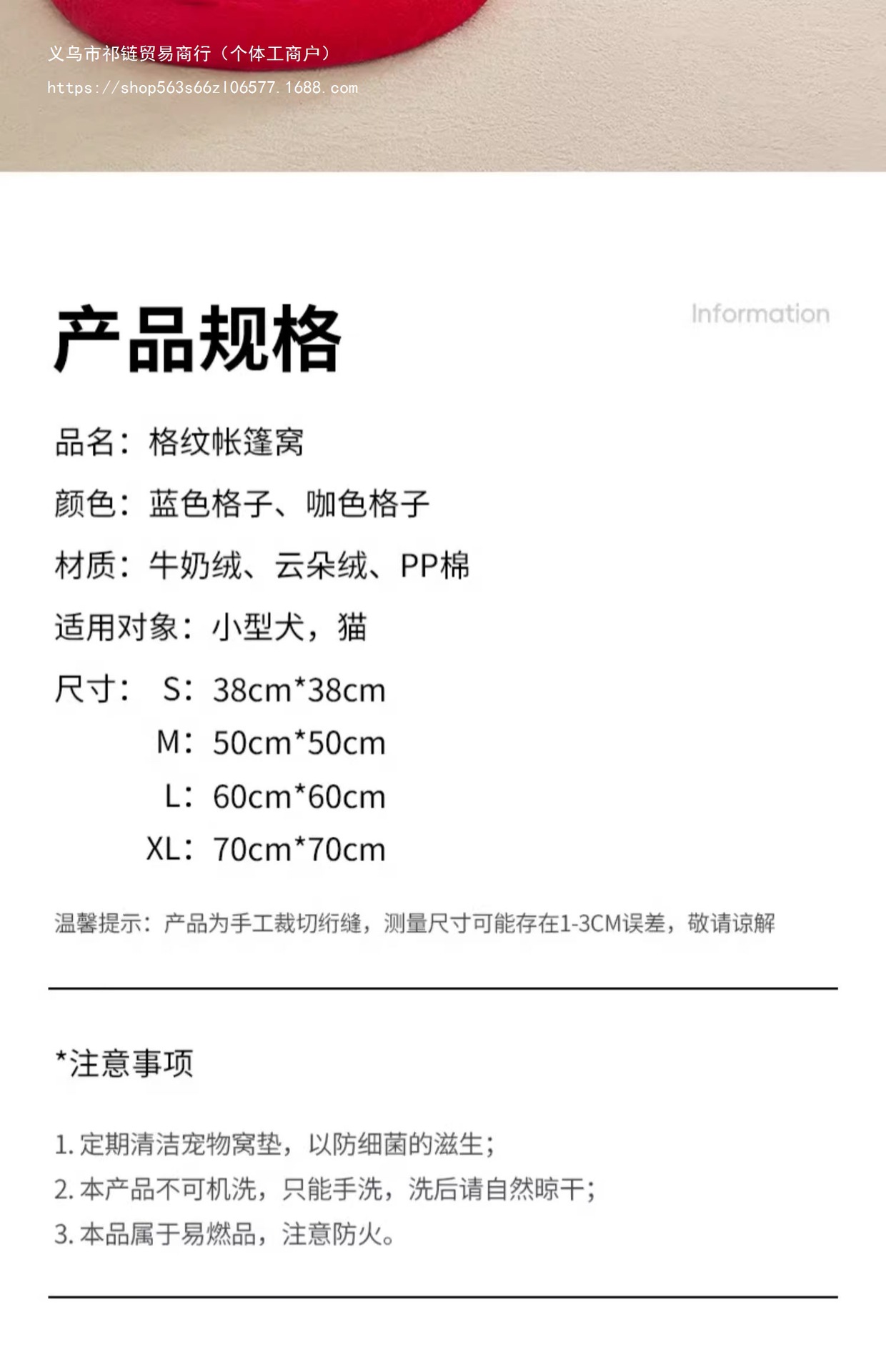 S: 38*38 см【Выбор домашнего животного в пределах 1.5kg】; М: 50*50 см【Выбор 5kg домашнего животного】; L: 60*60 см【Выбор 10kg домашнего животного】; XL: 70*70 см【Выбор из 15kg домашних животных】