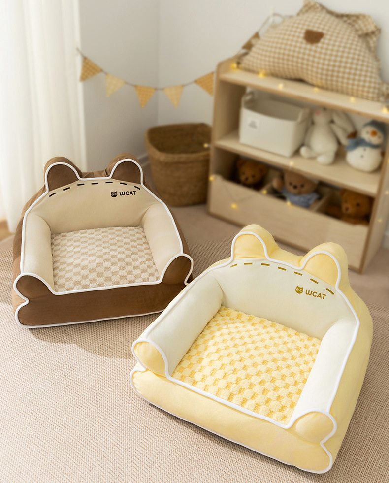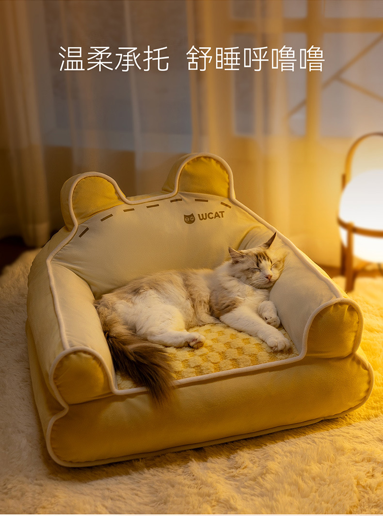Милый диван-гнездо с медведем, универсальная кровать для кошек на четыре сезона, осенне-зимний теплый коврик для сна для кошек, кошачье гнездо, дом для собак, оптовая продажа