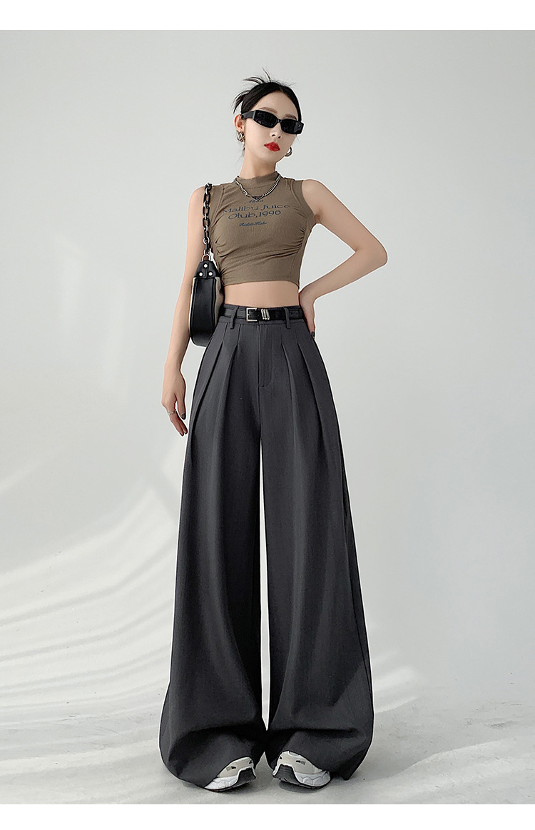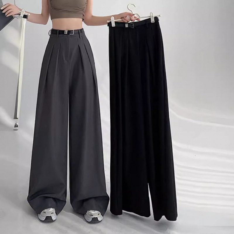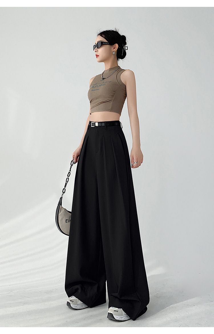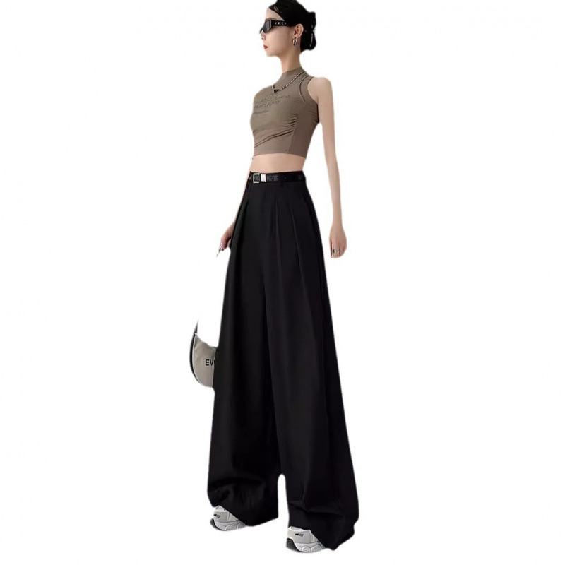 Женский костюм с широкими брюками, лето и осень 2024, утягивающие брюки с высокой талией, узкие прямые повседневные брюки в пол с широкими штанинами