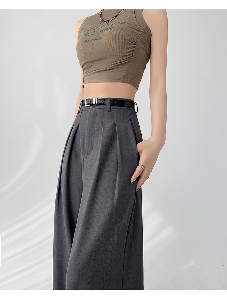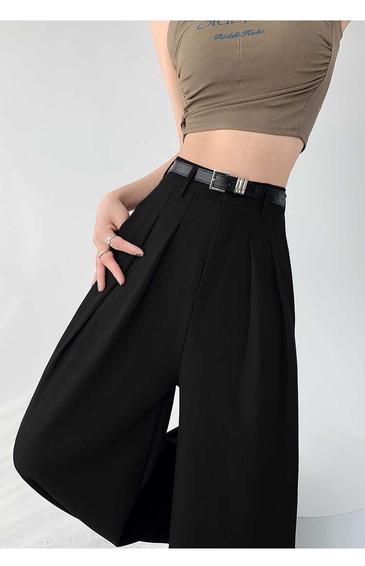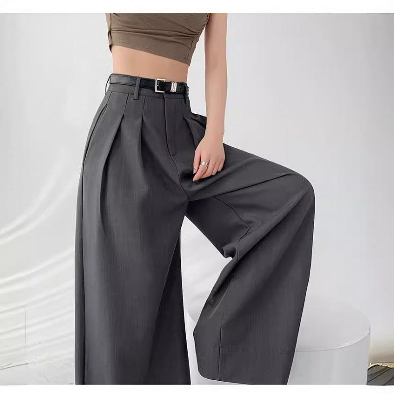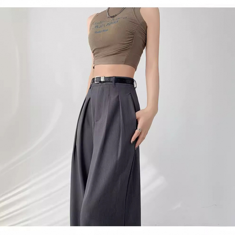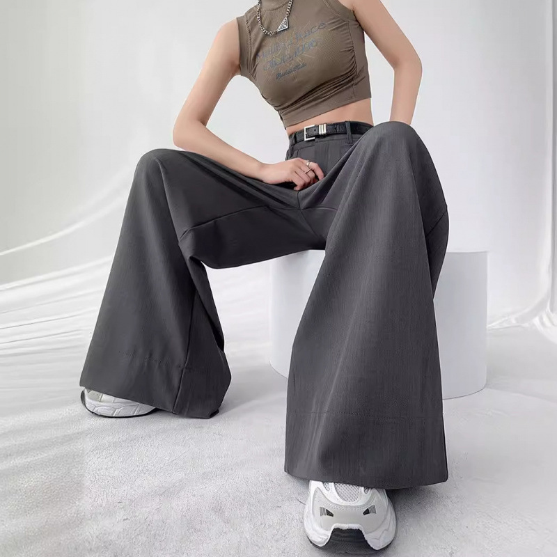 Женский костюм с широкими брюками, лето и осень 2024, утягивающие брюки с высокой талией, узкие прямые повседневные брюки в пол с широкими штанинами