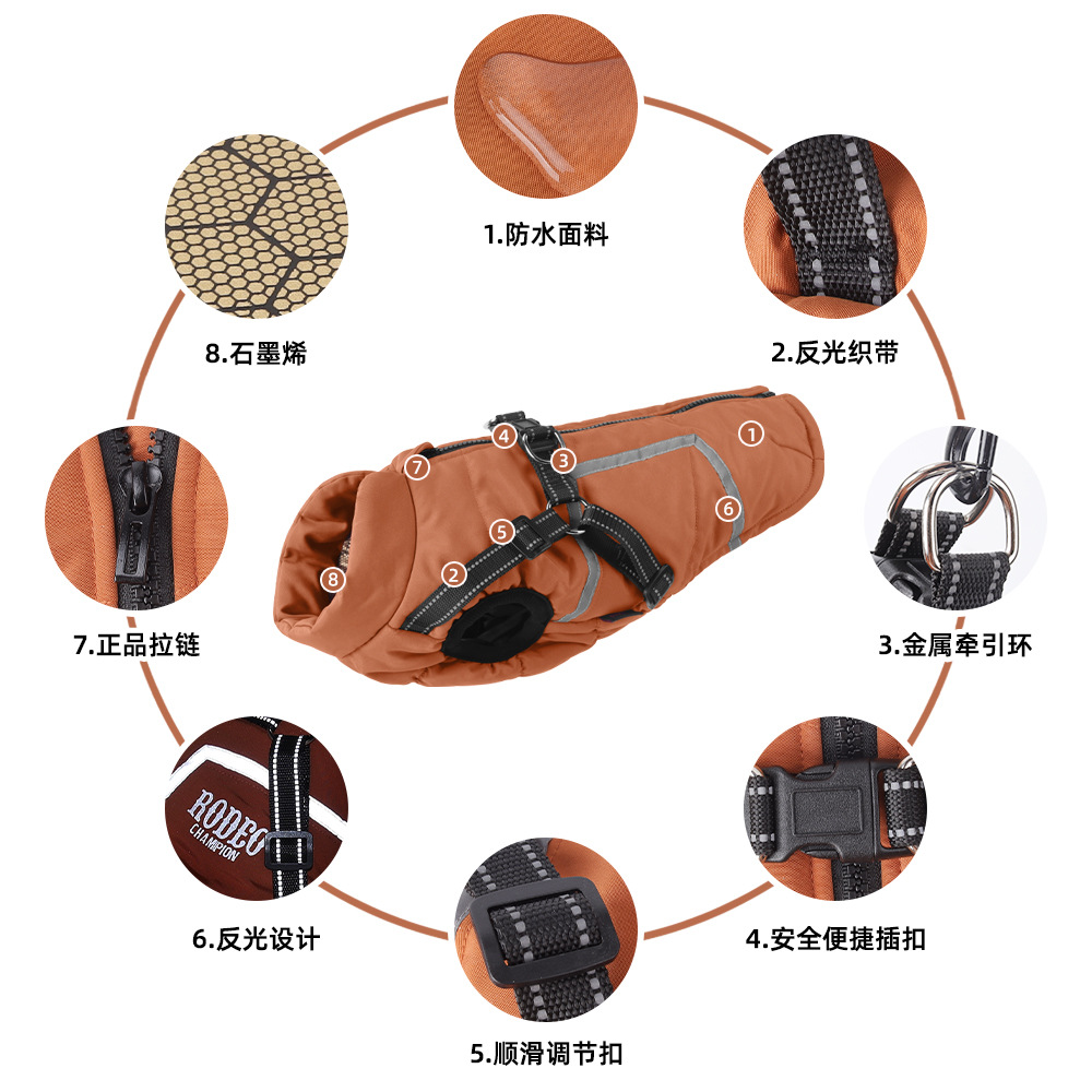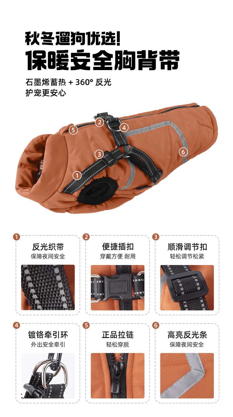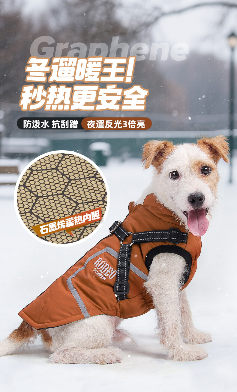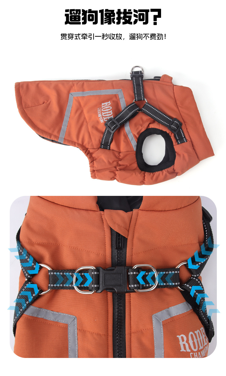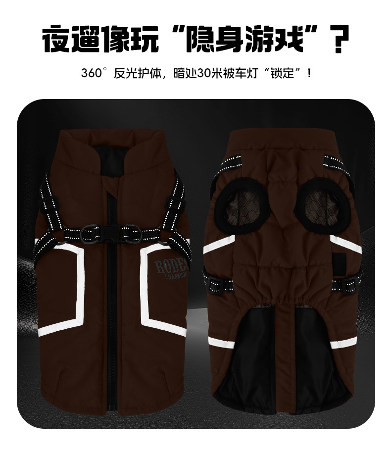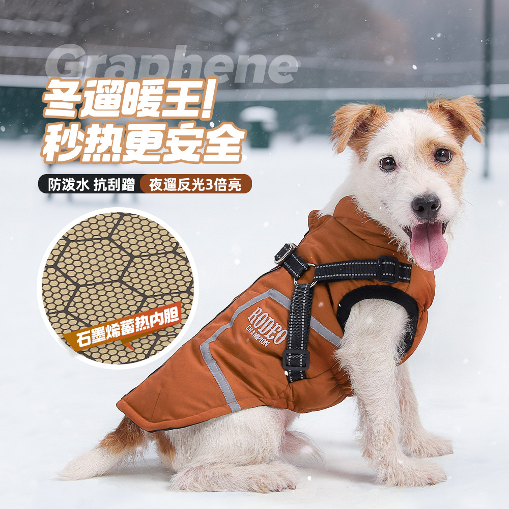 Хлопковое пальто для собак с тягой, светоотражающая осенне-зимняя новая одежда для собак, теплый легкий жилет из графена для домашних животных, однотонная собака.