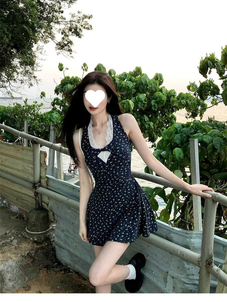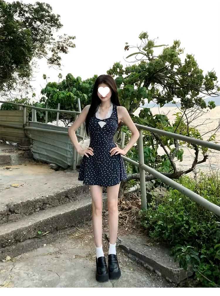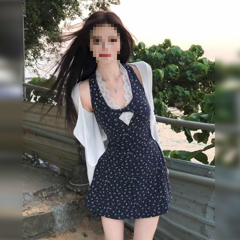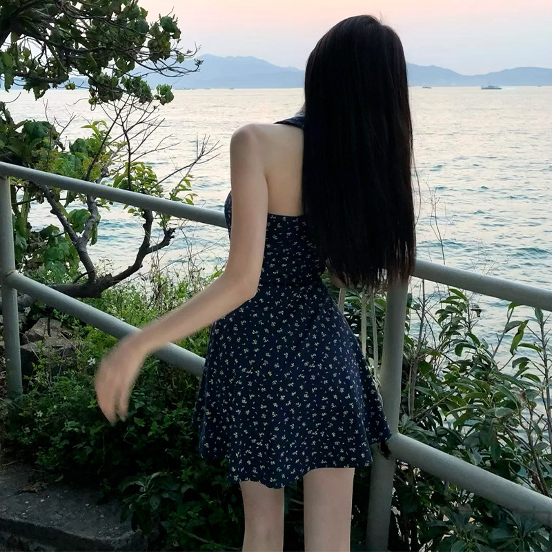 Женское платье с цветочным принтом во французском стиле, летнее новое короткое платье для миниатюрных размеров с завязками на шее, 2025 г.