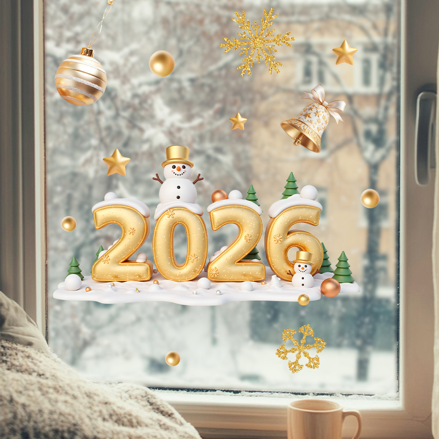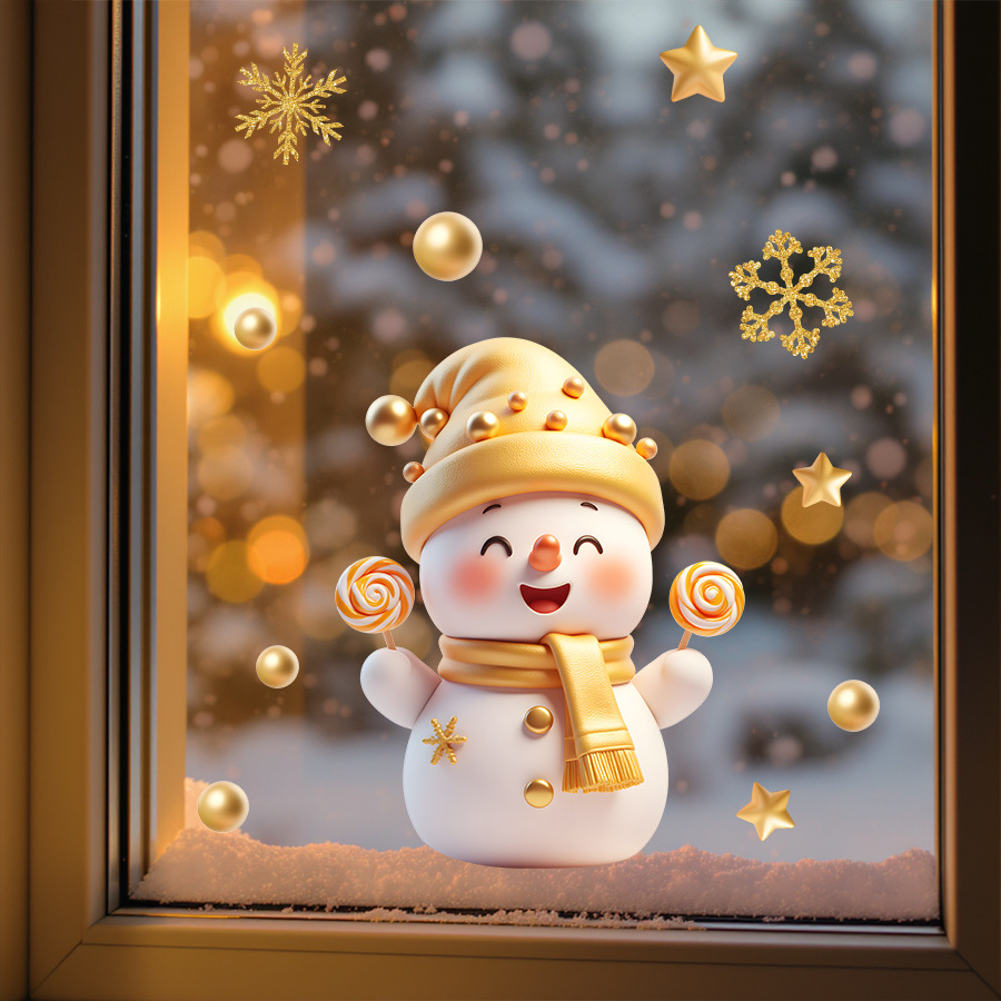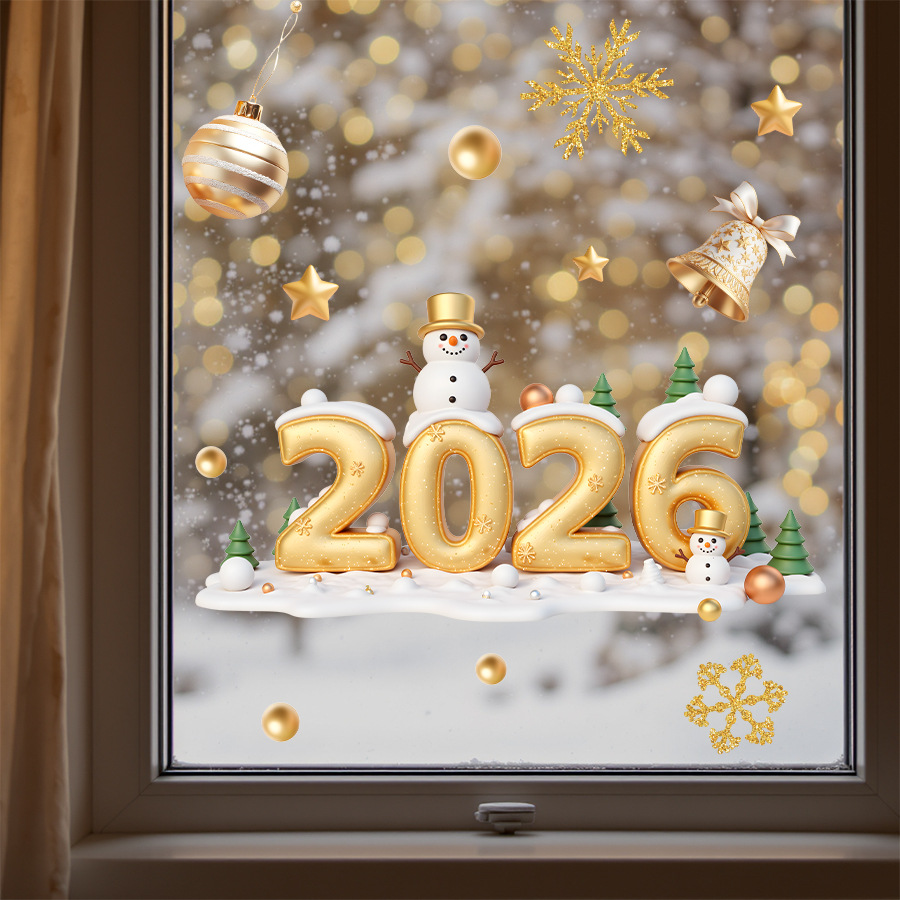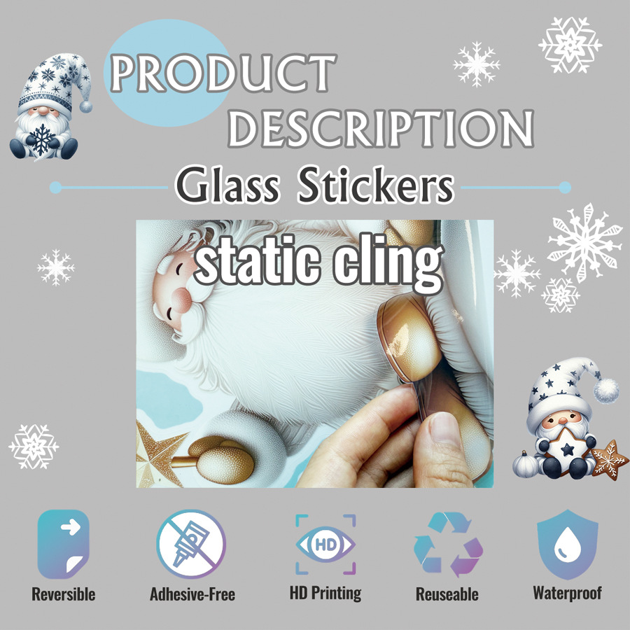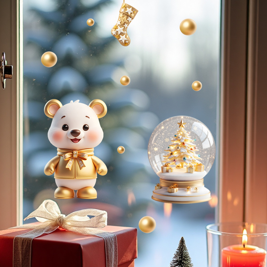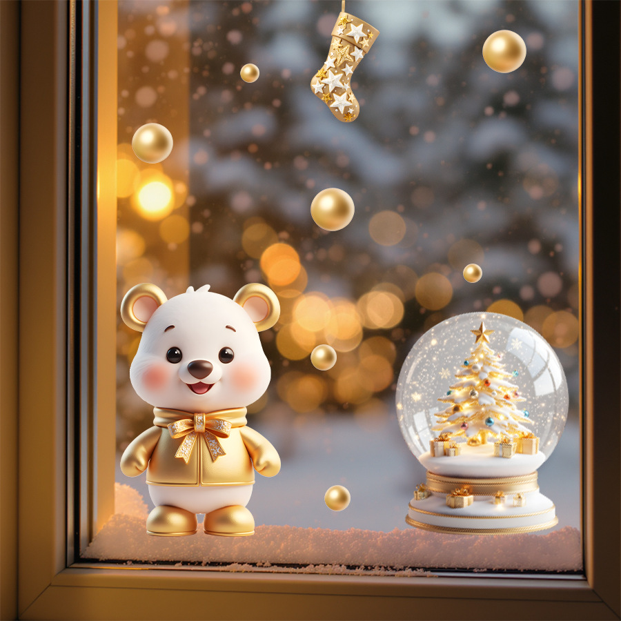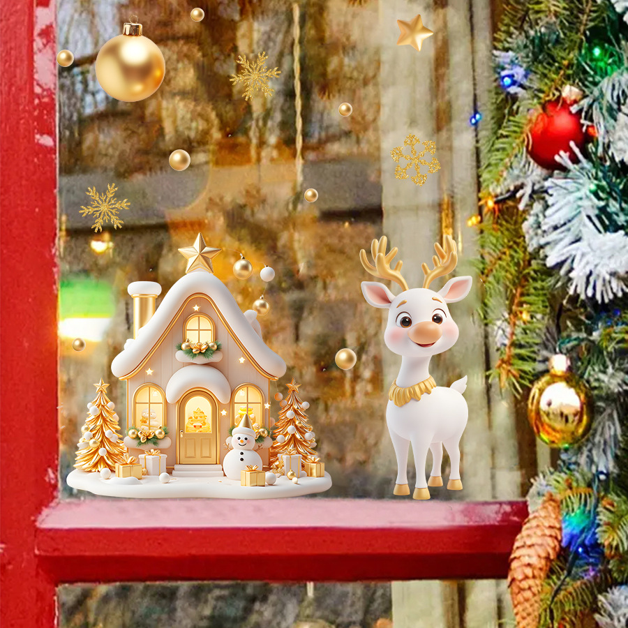 圣诞节金色轻奢静电窗贴铃铛雪花水晶球圣诞老人节日装饰窗贴纸
