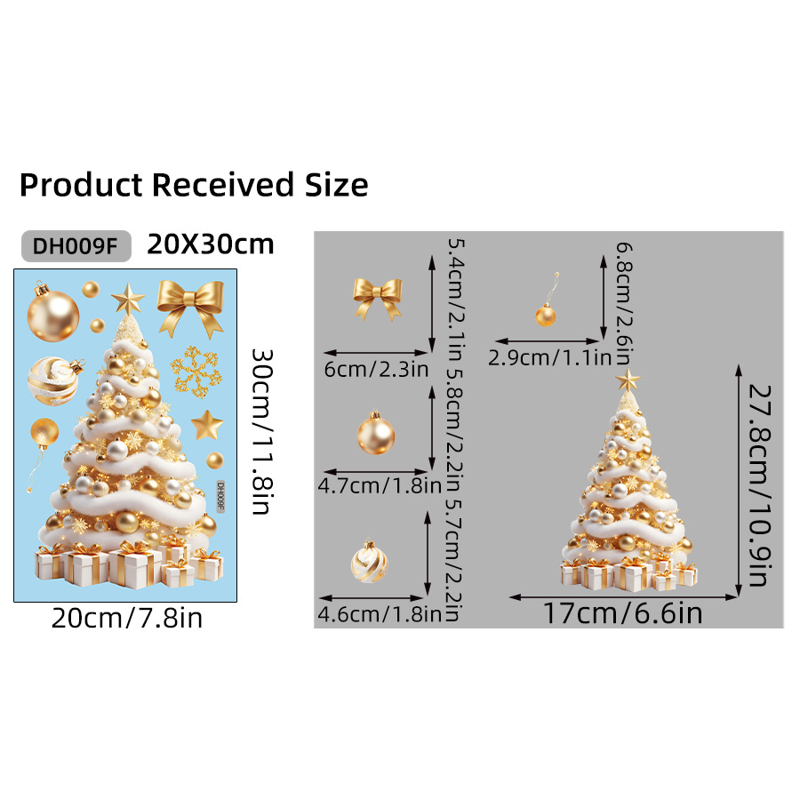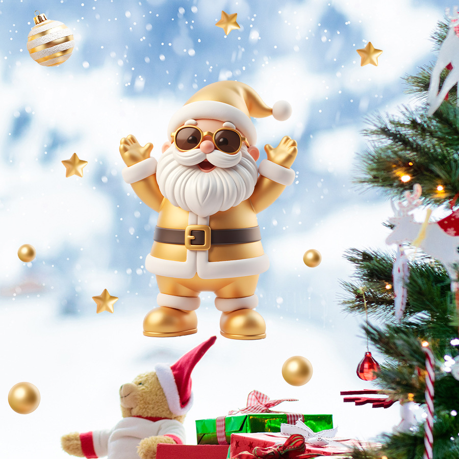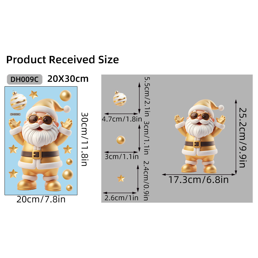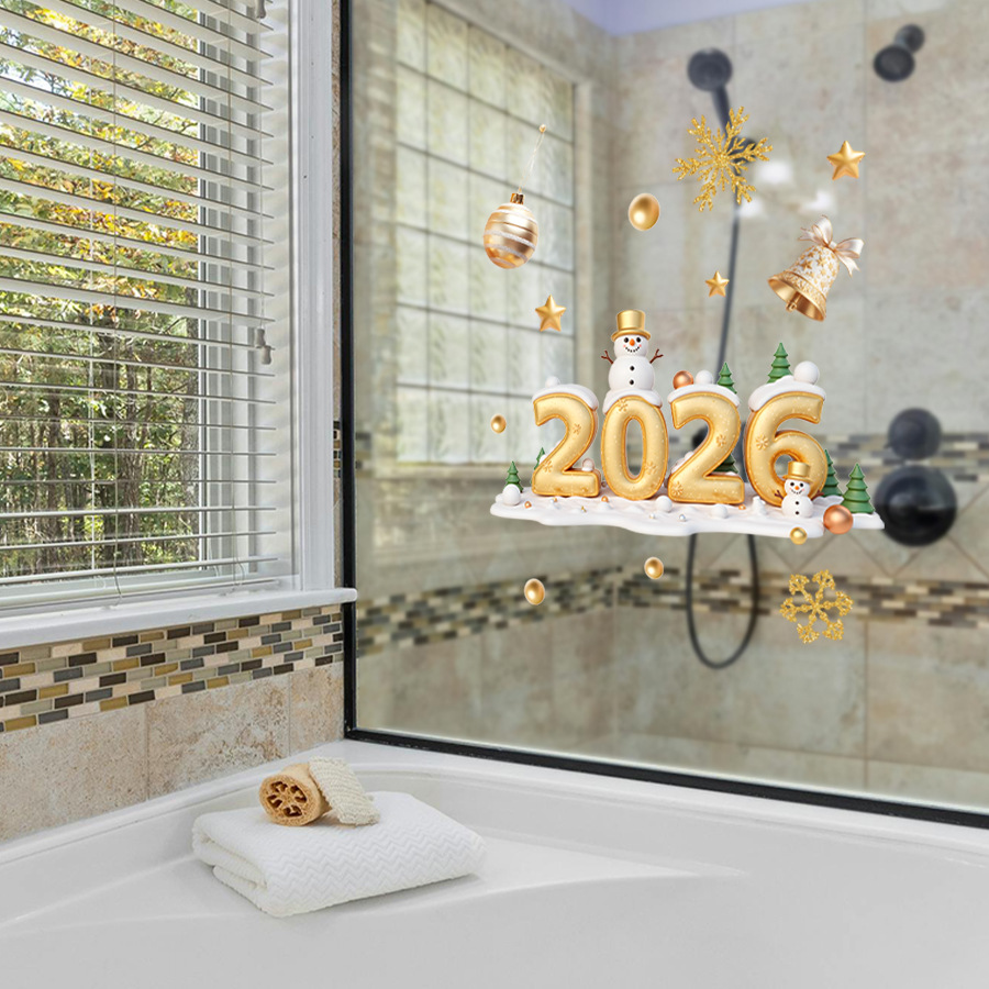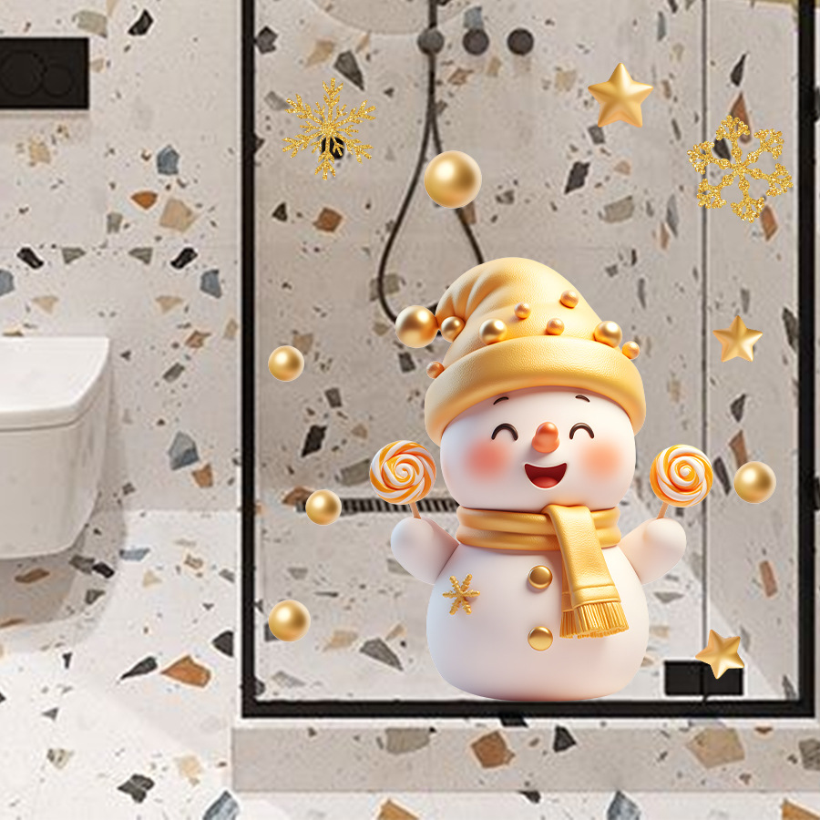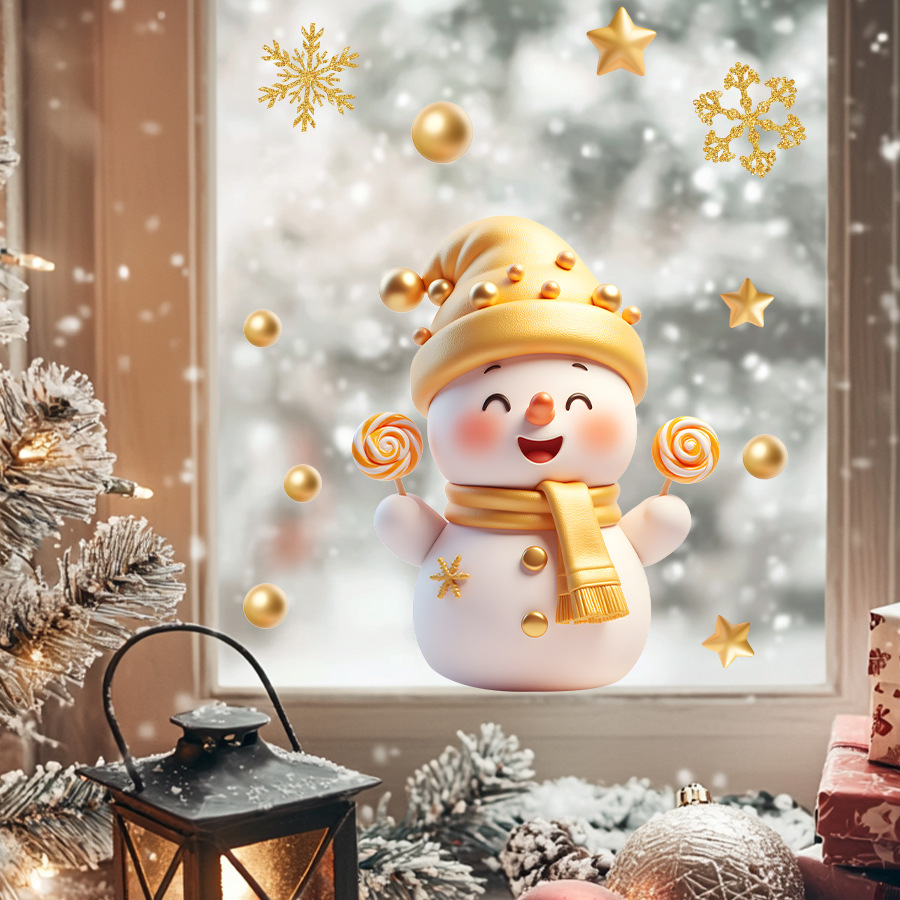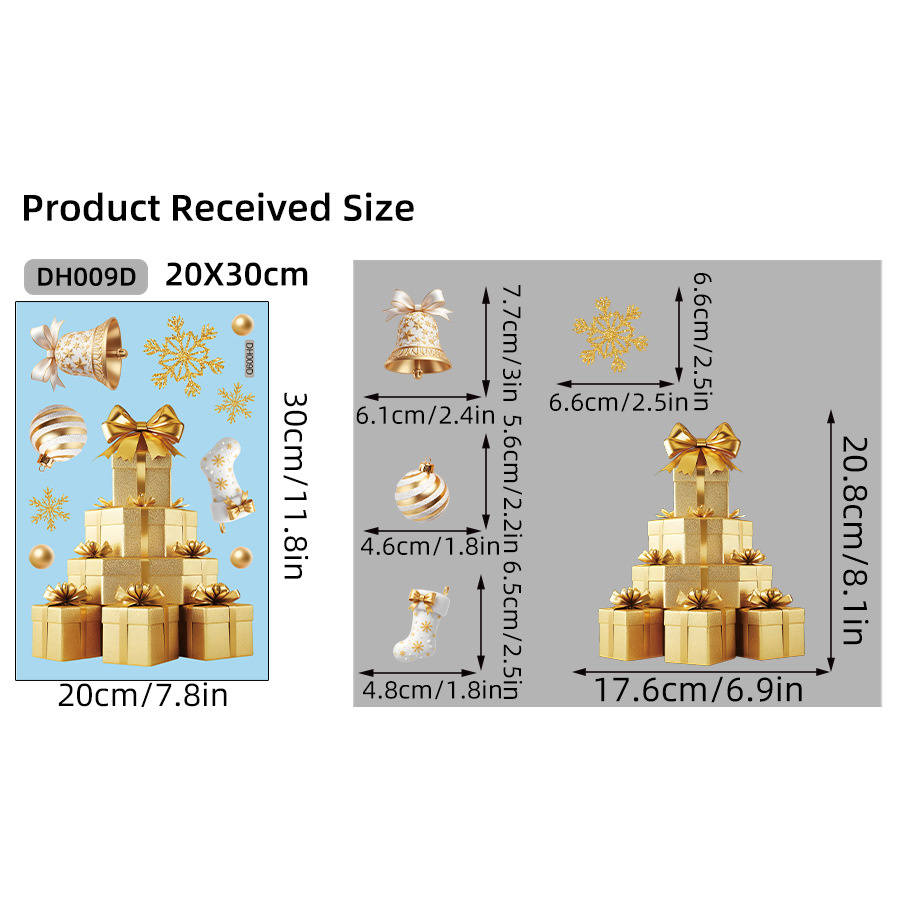 圣诞节金色轻奢静电窗贴铃铛雪花水晶球圣诞老人节日装饰窗贴纸