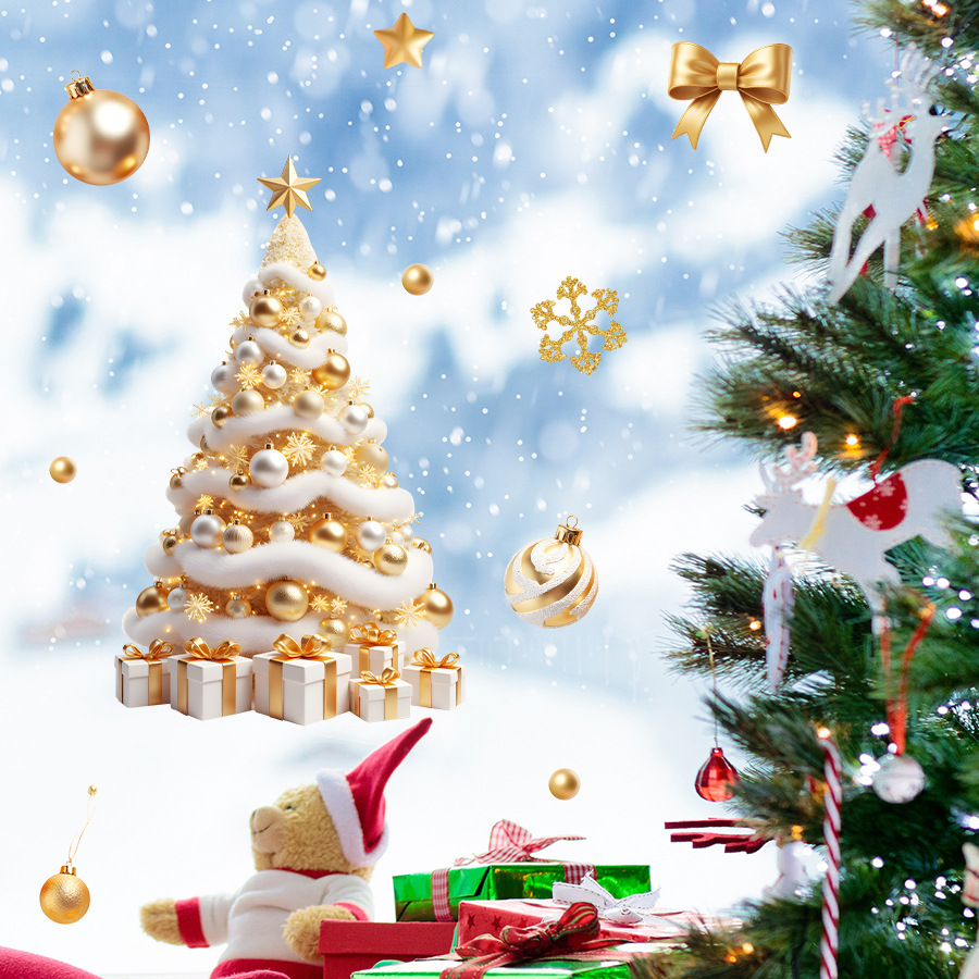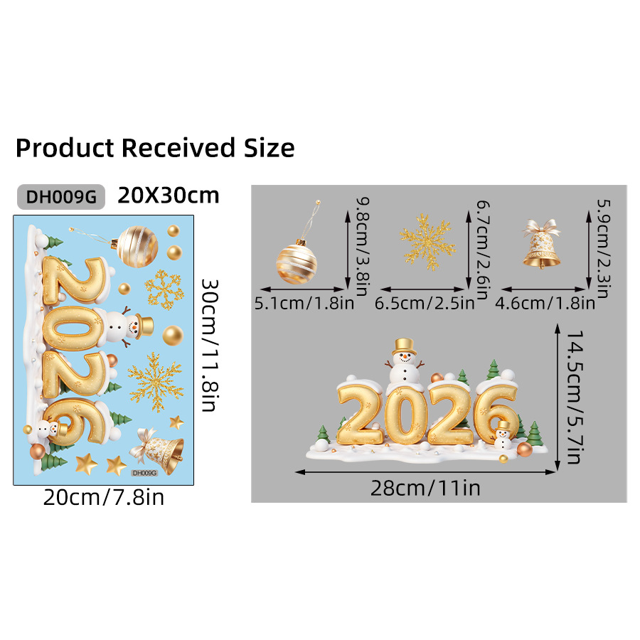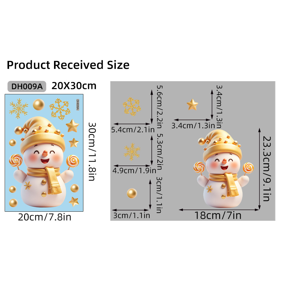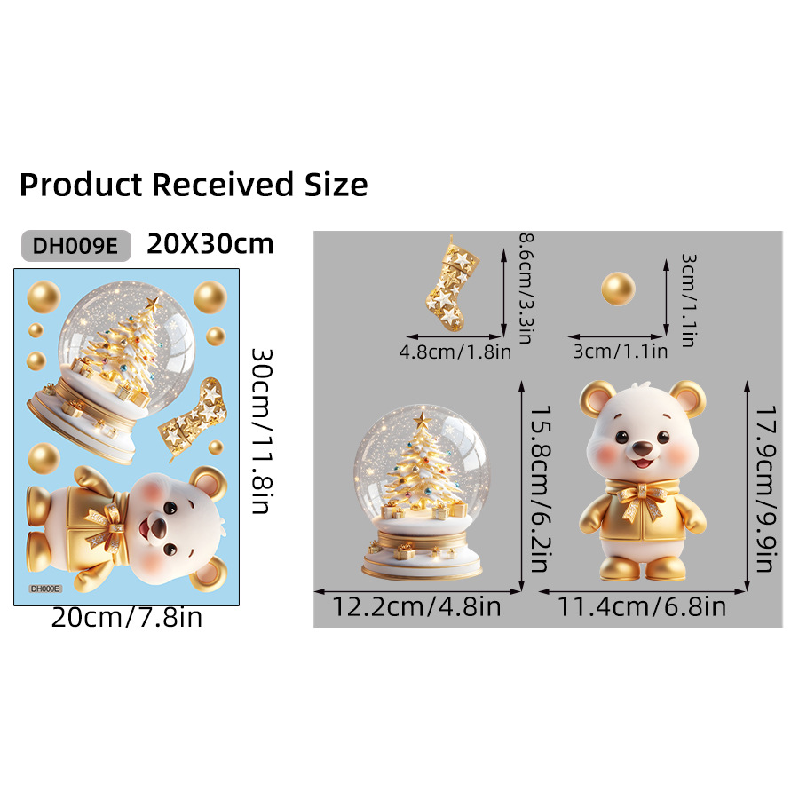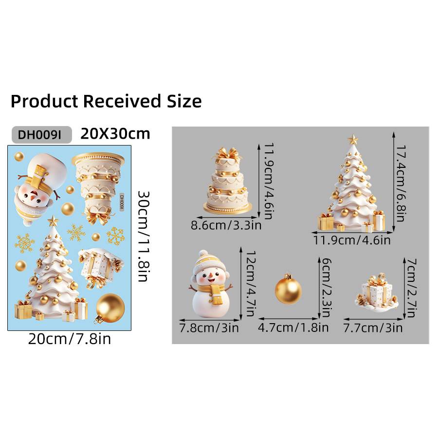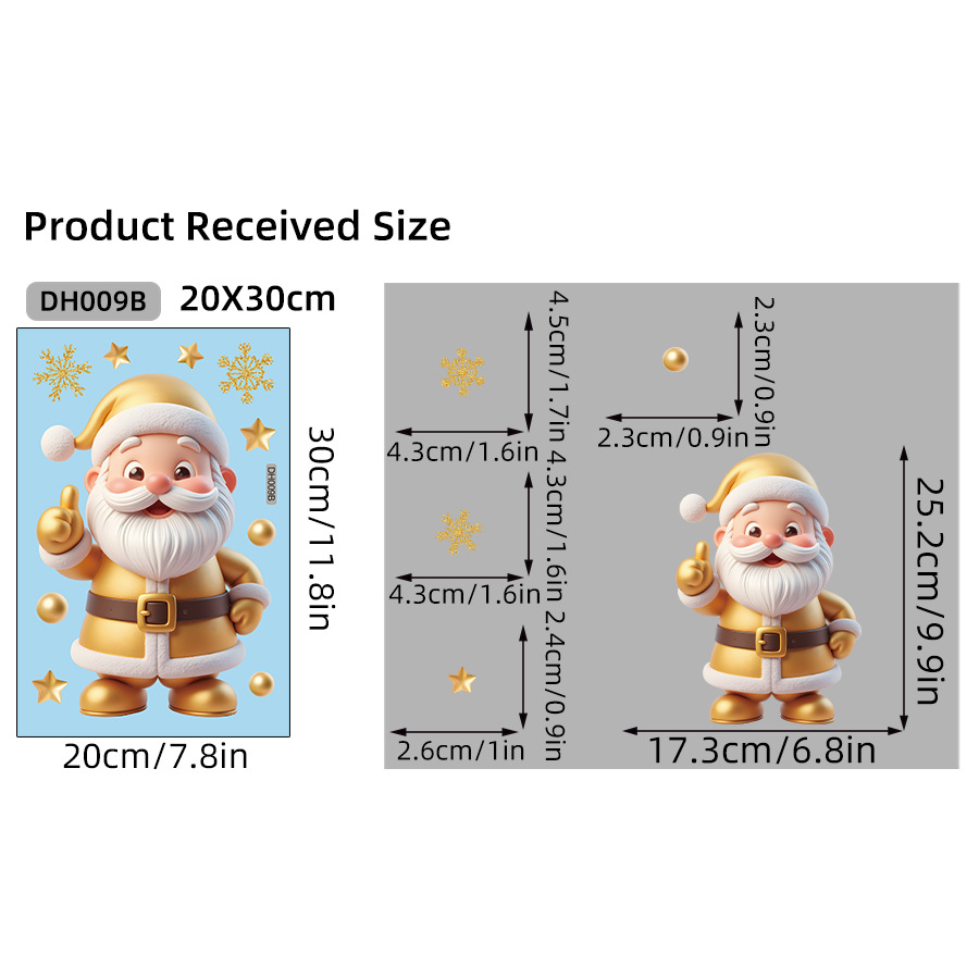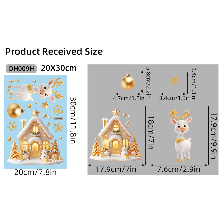 圣诞节金色轻奢静电窗贴铃铛雪花水晶球圣诞老人节日装饰窗贴纸