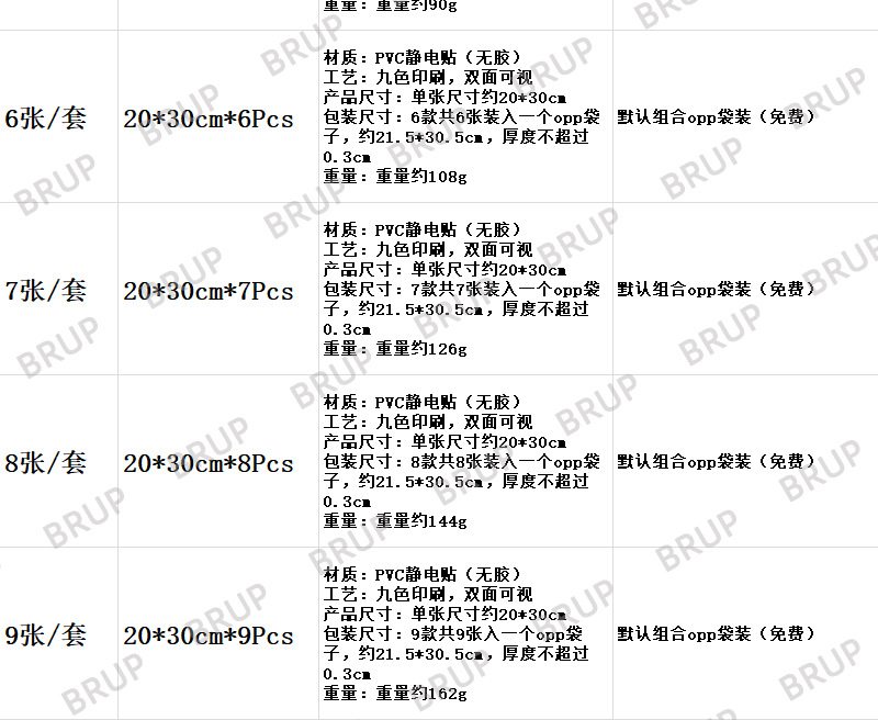 DH009-A(单张无袋); DH009-B(单张无袋); DH009-C(单张无袋); DH009-D(单张无袋); DH009-E(单张无袋); DH009-F(单张无袋); DH009-G(单张无袋); DH009-H(单张无袋); DH009-I(单张无袋); DH009-AD(两张有袋); DH009-BH(两张有袋); DH009-BI(两张有袋); DH009-CF(两张有袋); DH009-EI(两张有袋); DH009-GH(两张有袋); DH009-AEGH(四张有袋); DH009-BCDF(四张有袋); DH009-DGHI(四张有袋); DH009-ABCFGH(六张有袋); DH009-CDEFGI(六张有袋); DH009-ABCDEFGHI(九张有袋)