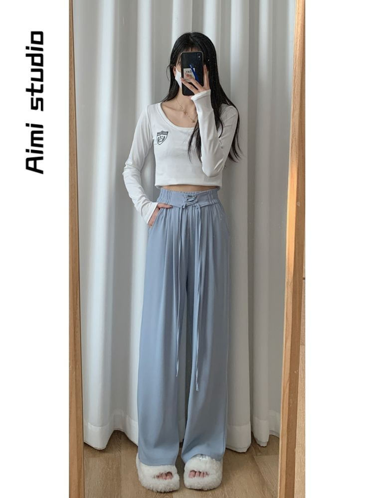 高腰西装裤垂感宽松休闲拖地裤设计感显瘦直筒阔腿裤女春夏款长裤
