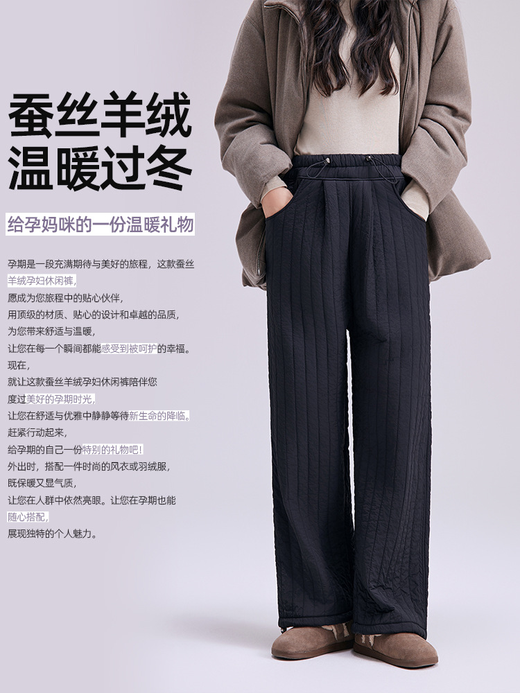 孕装外穿宽松2025秋冬新款保暖女裤加厚显瘦脚口调节孕妇裤休闲裤
