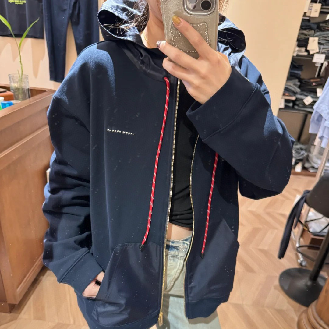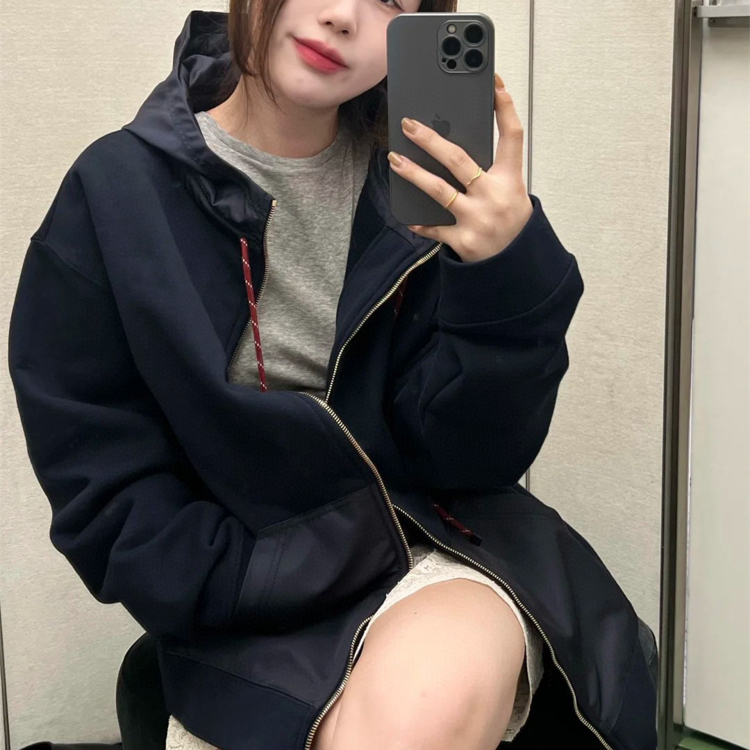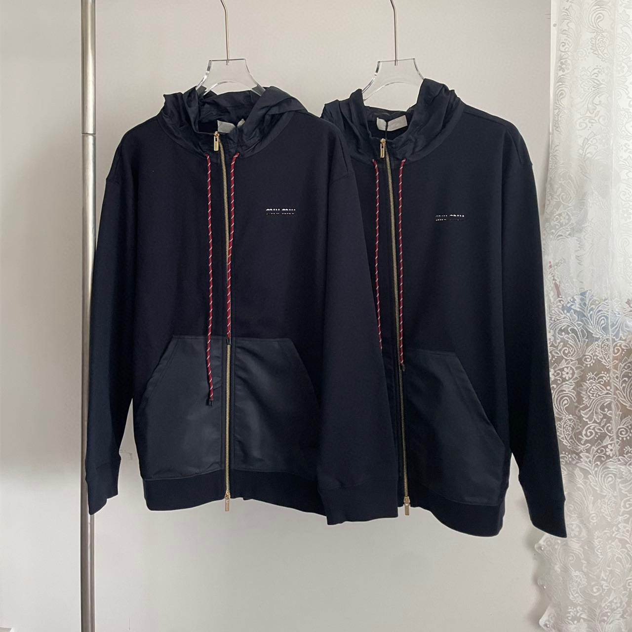 miu抽绳拉链连帽外套 25秋男女情侣同款卫衣大口袋董思成跨境代发