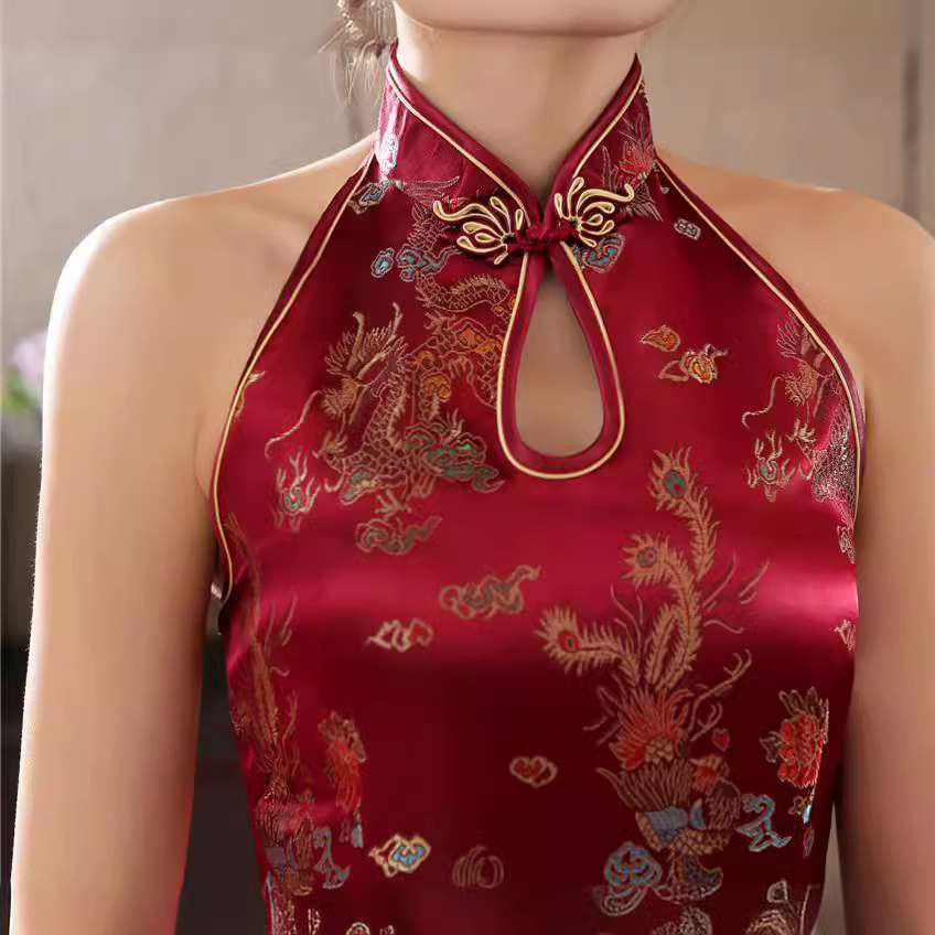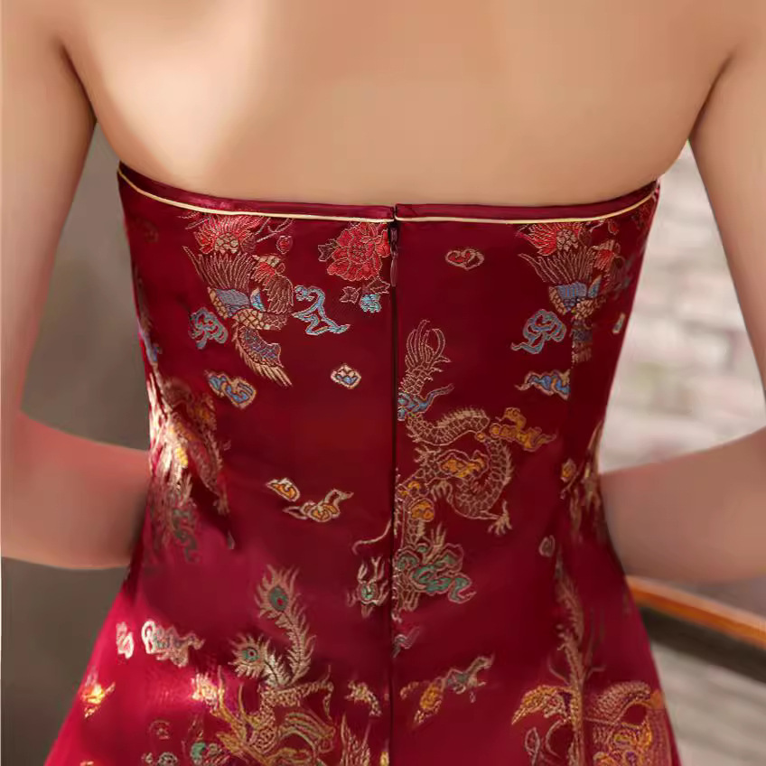 Винно-красный Чонсам длинный тканый Чонсам из парчи Сплит Чонсам выступление подиумное шоу Вечер Вечеринка Чонсам Тонкий ретро с открытой спиной