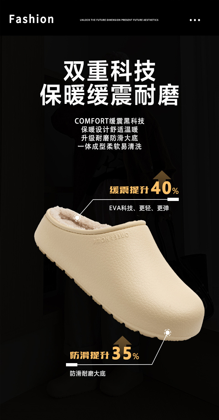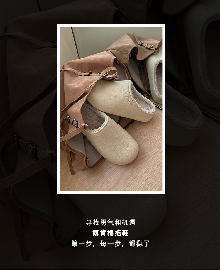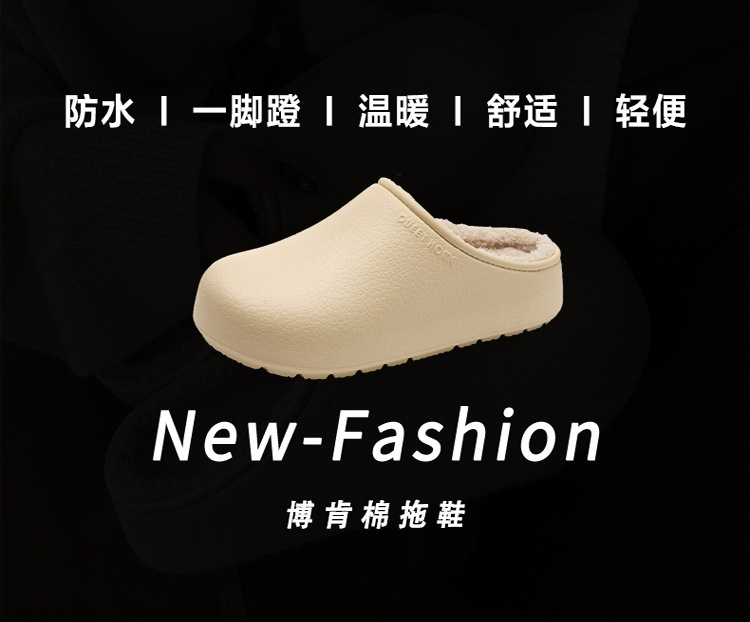 勃肯棉拖鞋女2025新款抑菌外穿防水家用防滑防臭厚底加绒包头棉拖