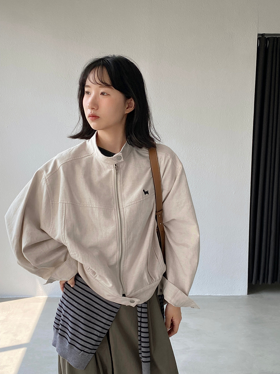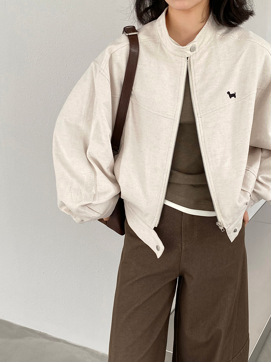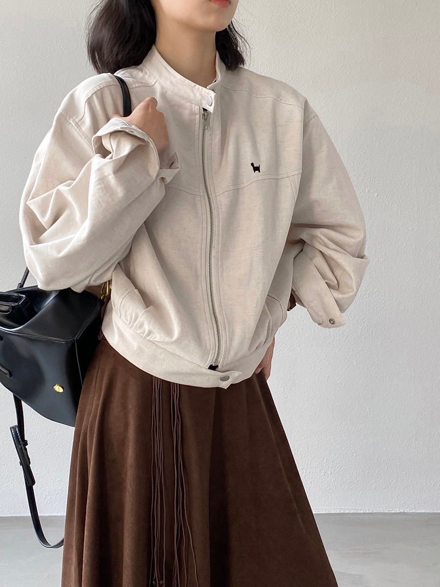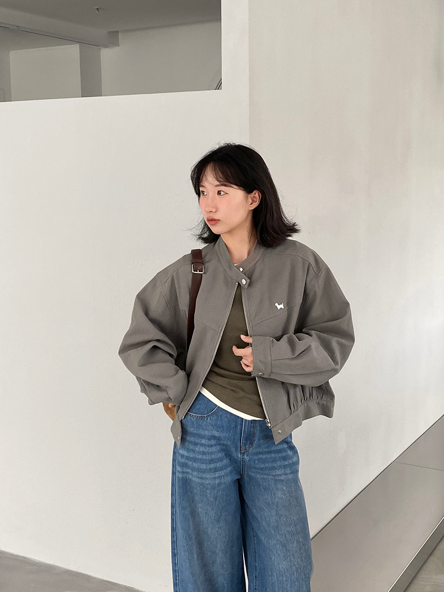 【福利款 不退换】江左 工装风小狗刺绣短外套女25秋夹克上衣1675