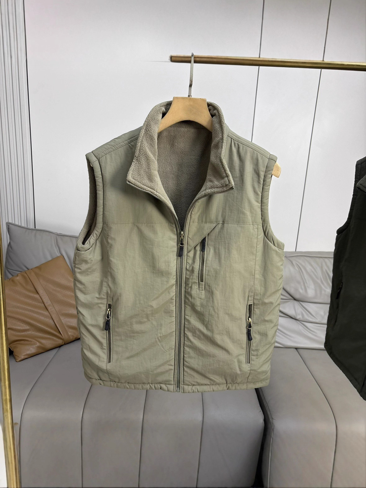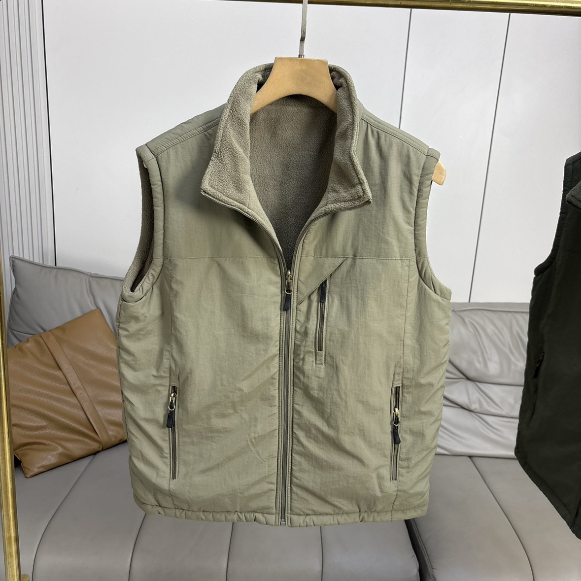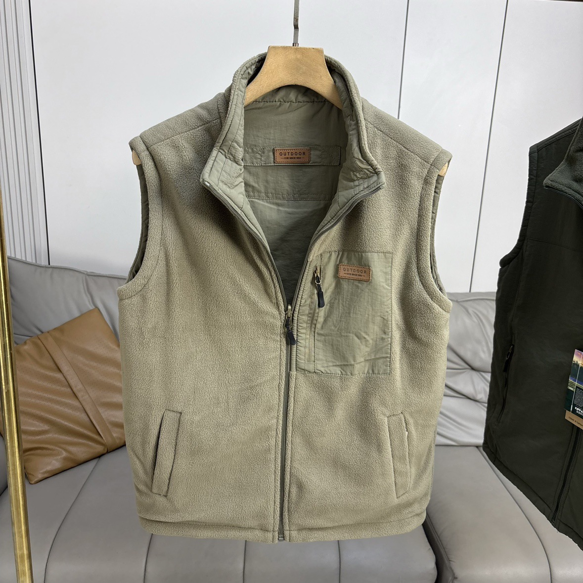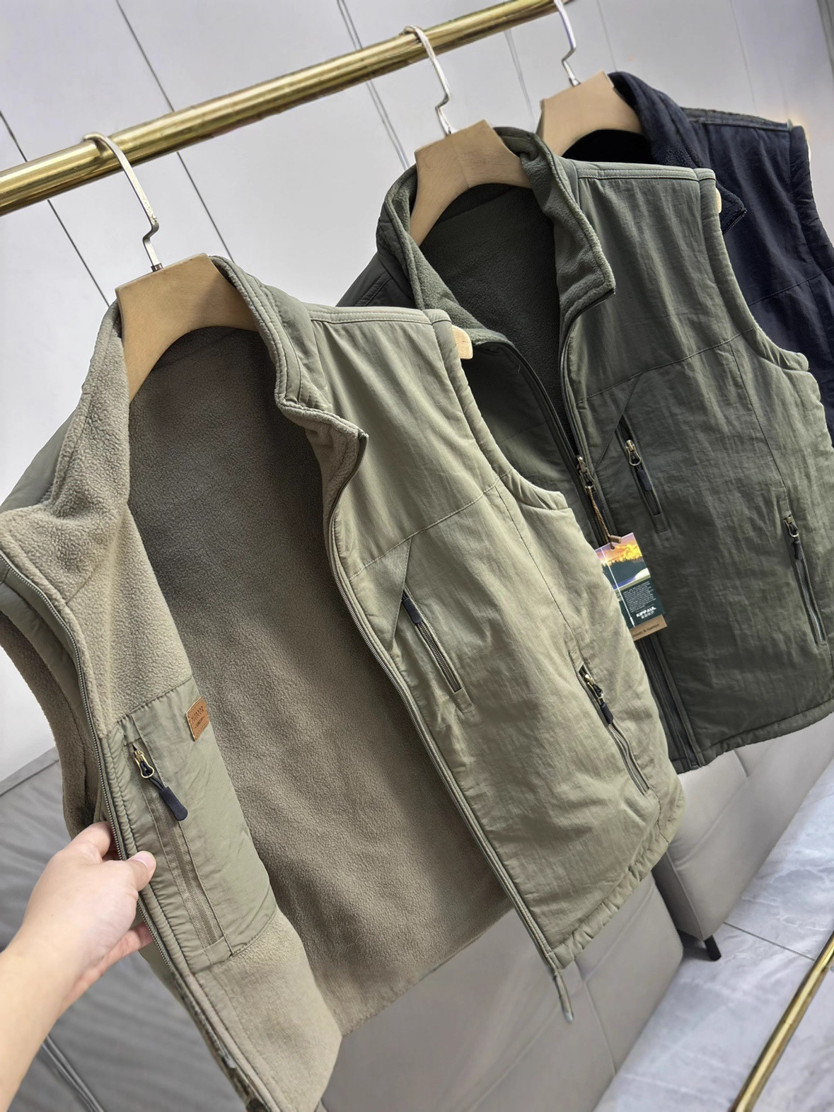 双面穿!户外防水+摇粒绒 外贸男装秋冬纯色多口袋立领马甲外套