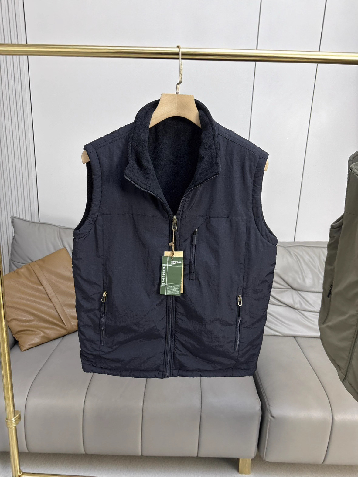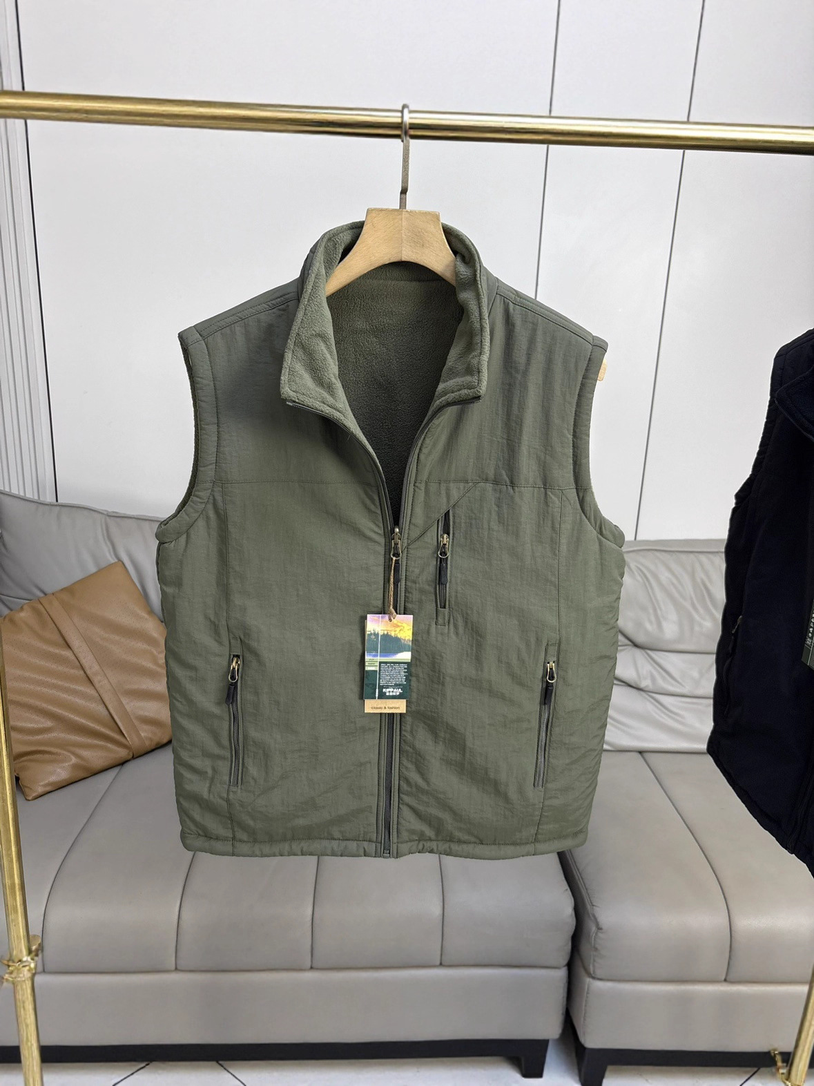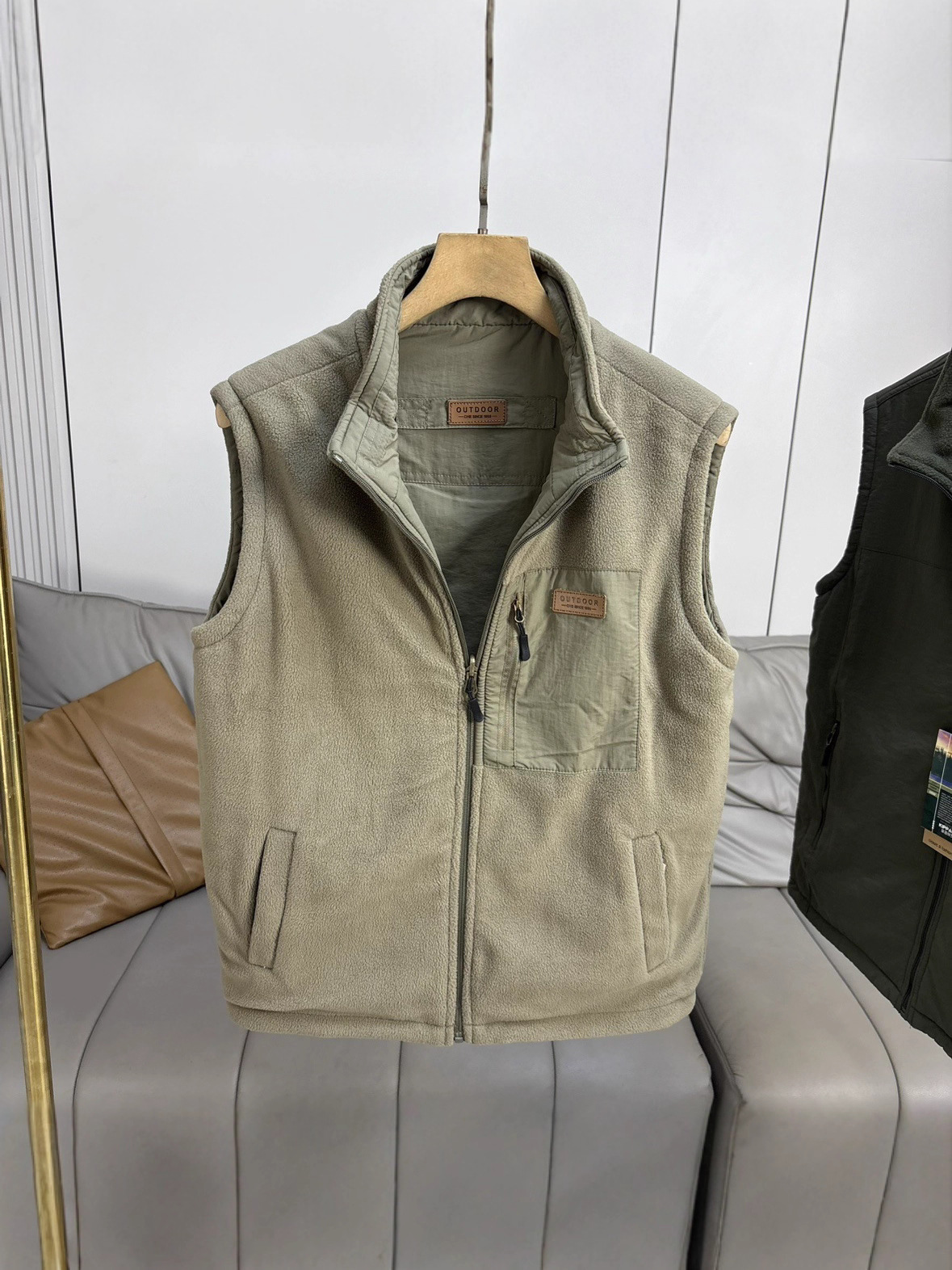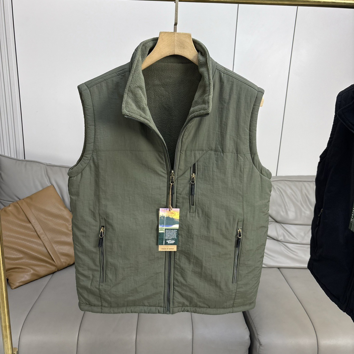 双面穿!户外防水+摇粒绒 外贸男装秋冬纯色多口袋立领马甲外套