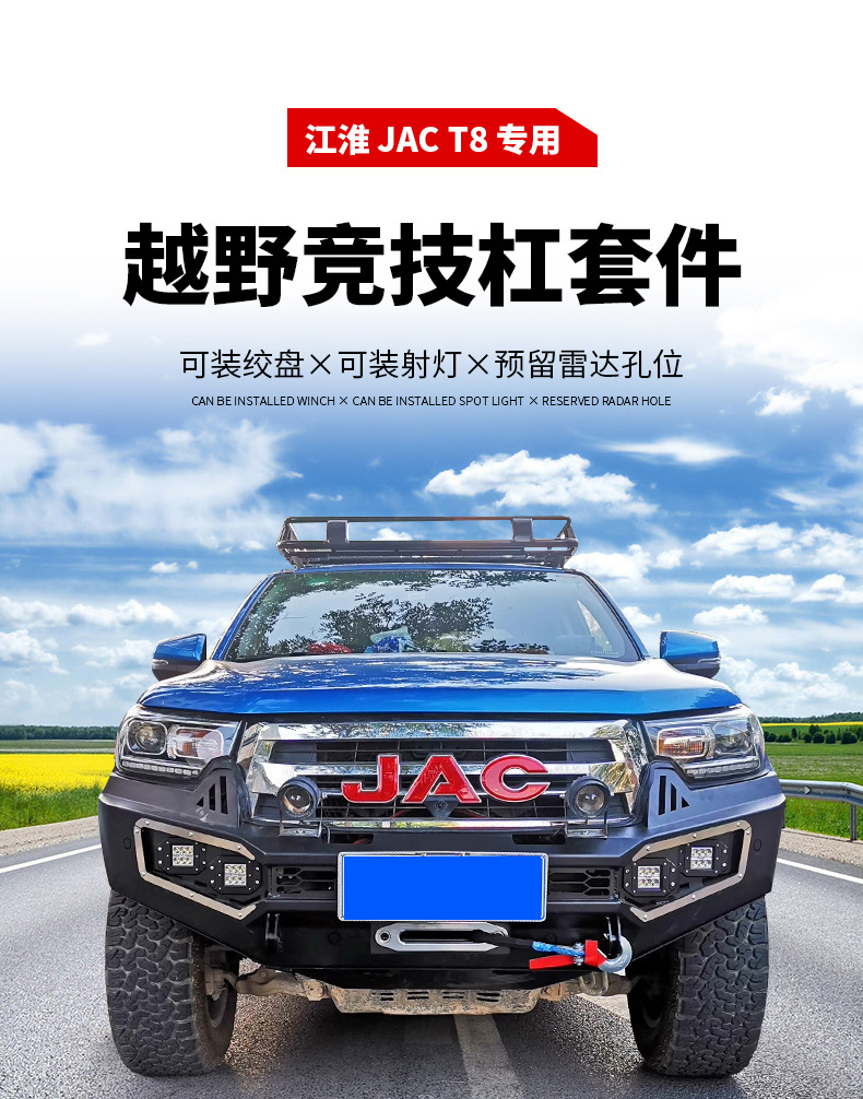 适用江淮JAC T8 FRONT BUMPER保险杠改装防撞杠带灯竞技杠JAC皮卡