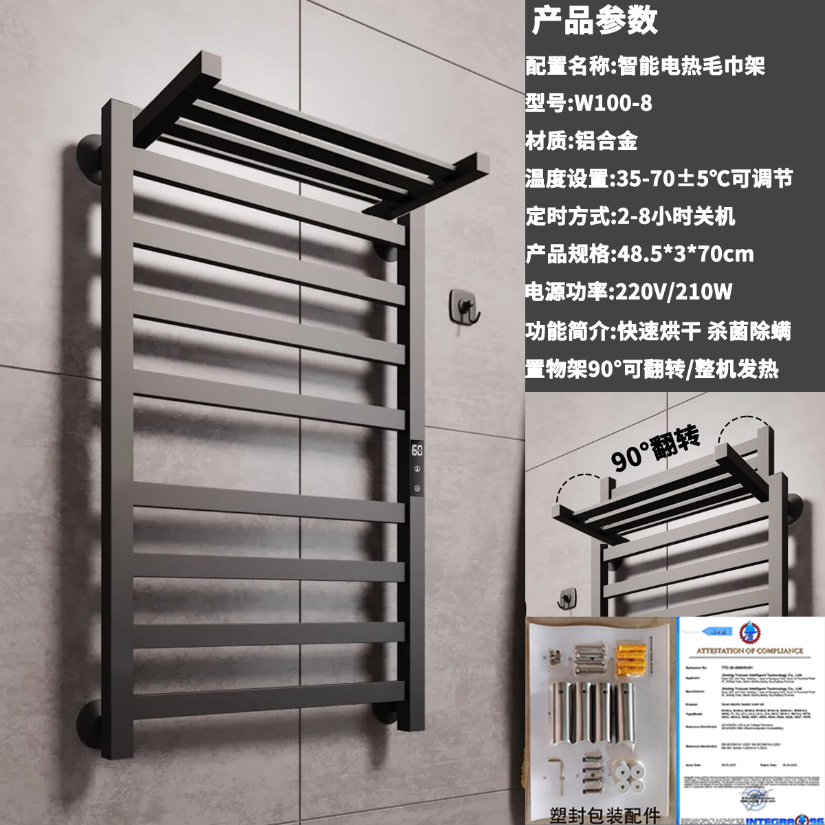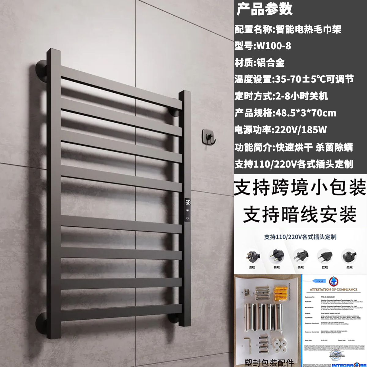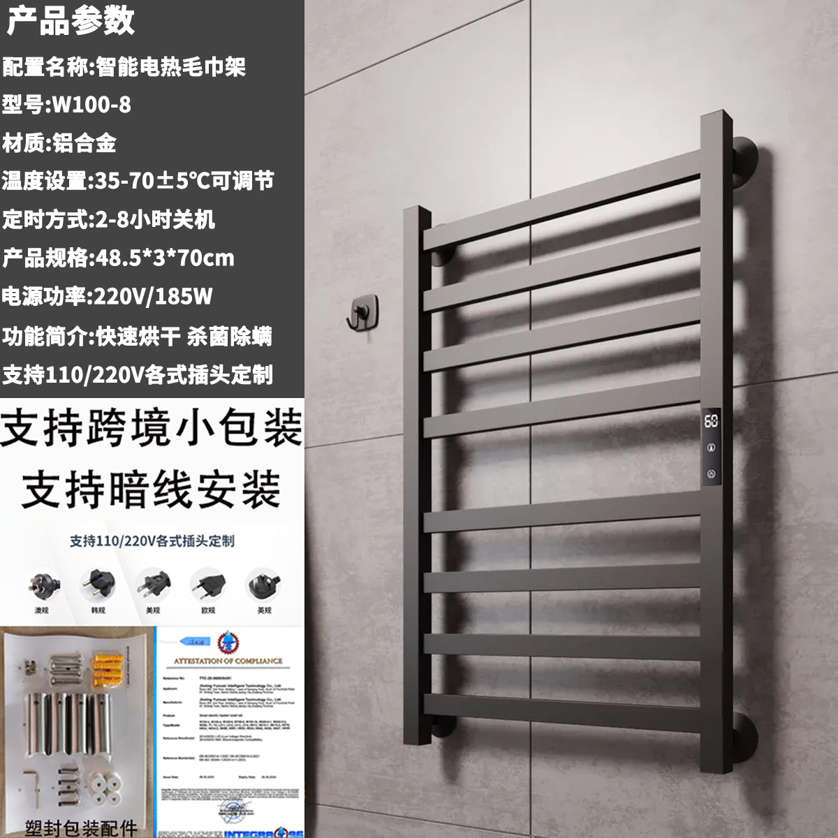 跨境太空铝电热毛巾架智能卫生间浴室加热烘干浴巾家用置物毛巾架