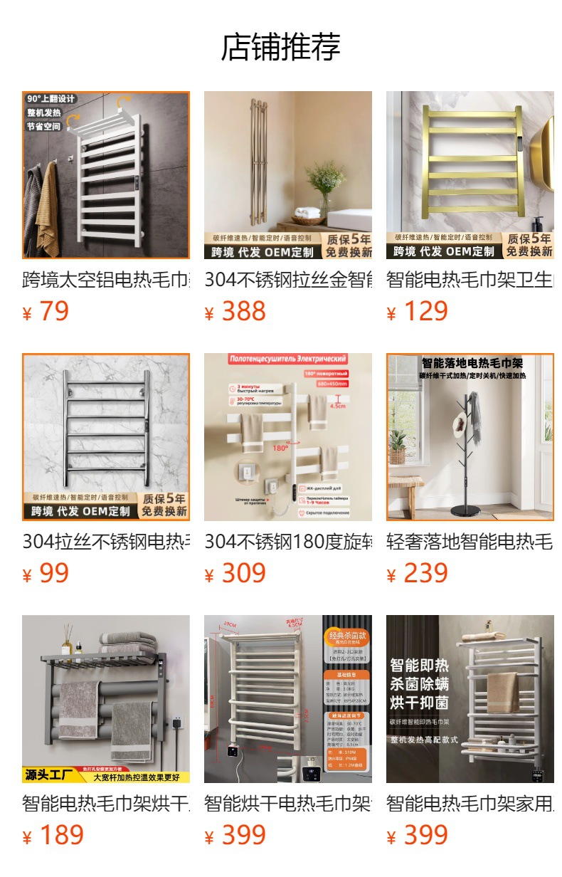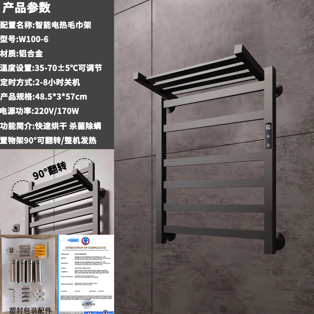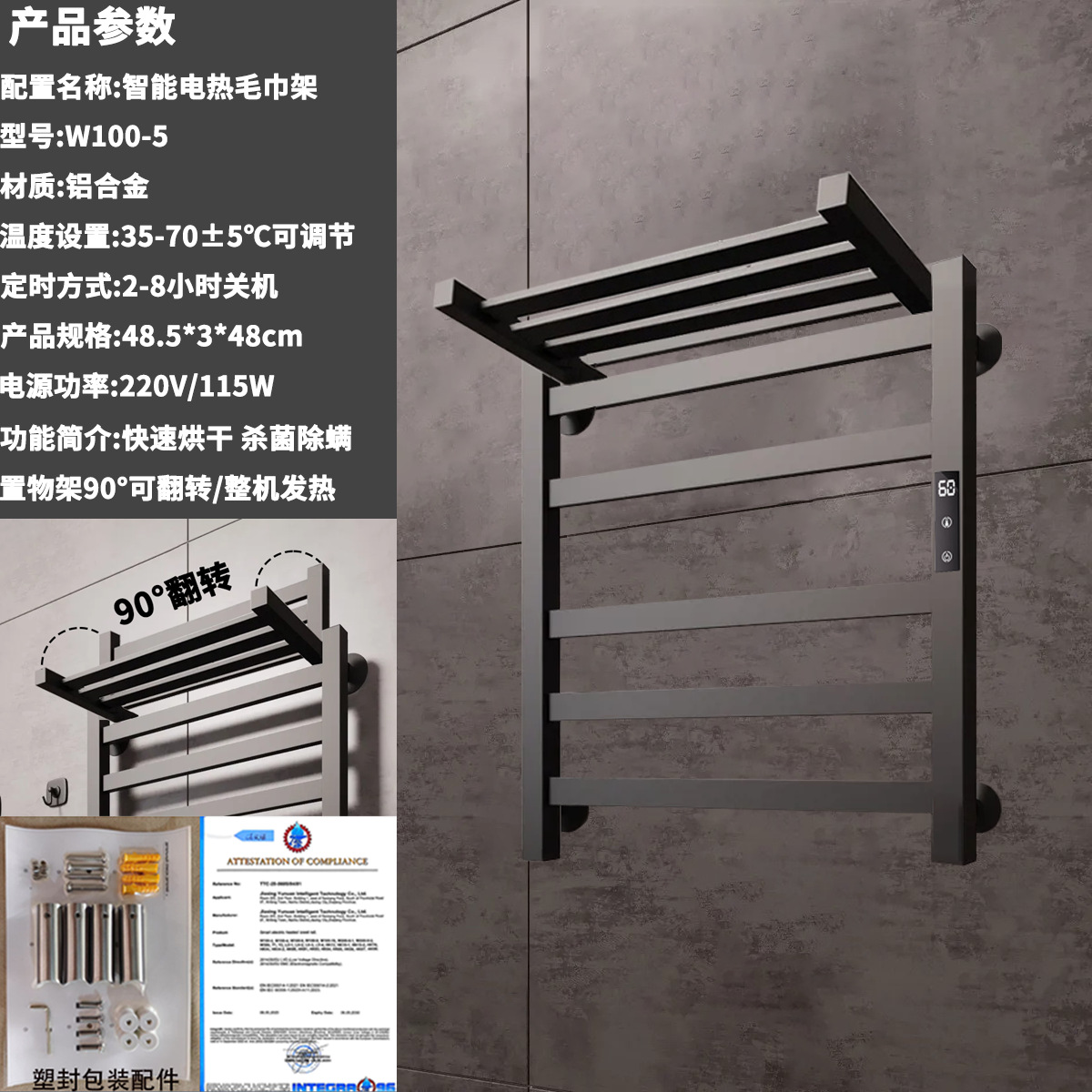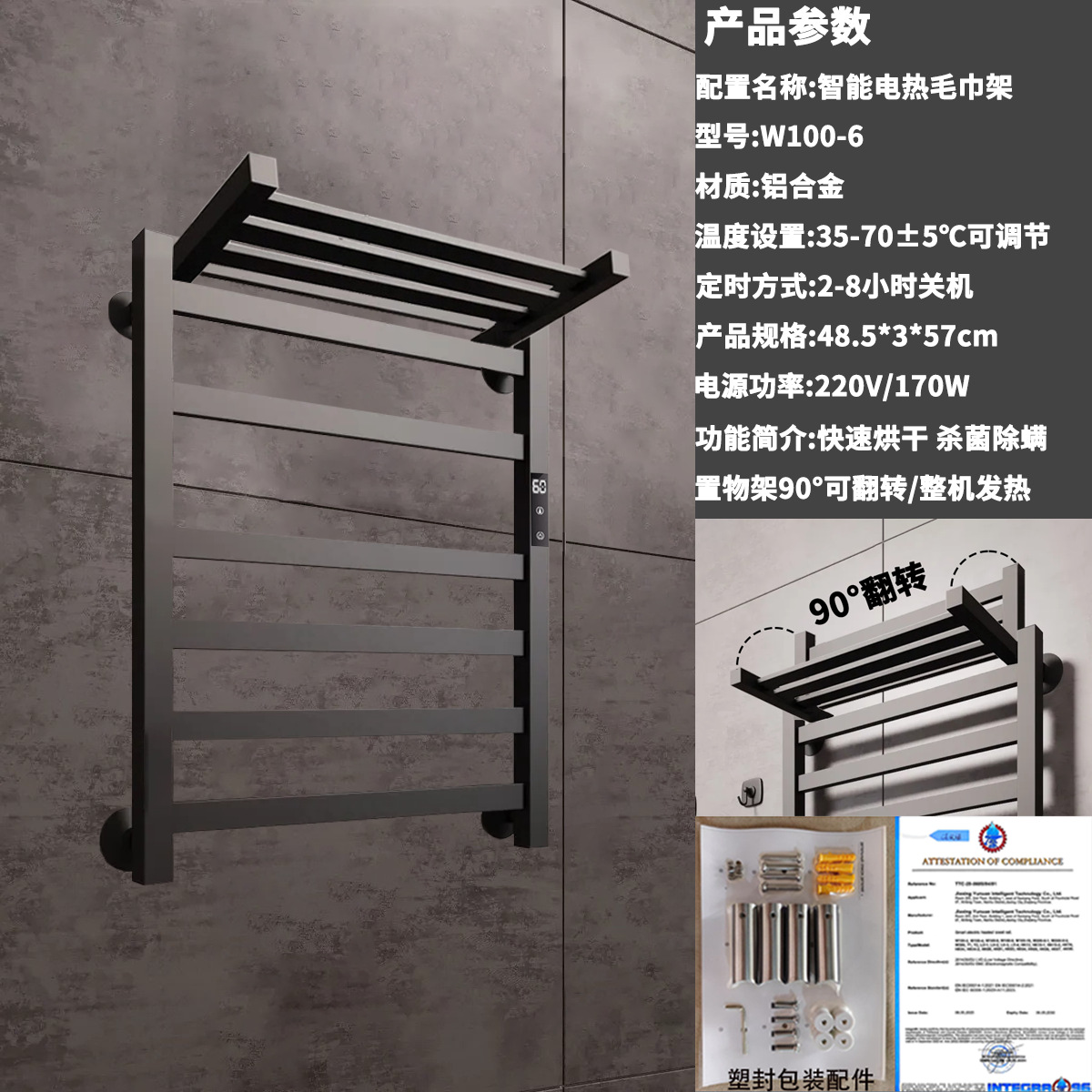 跨境太空铝电热毛巾架智能卫生间浴室加热烘干浴巾家用置物毛巾架