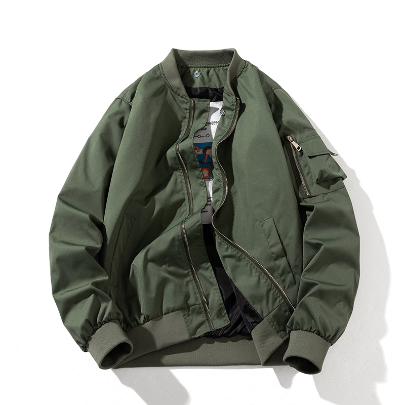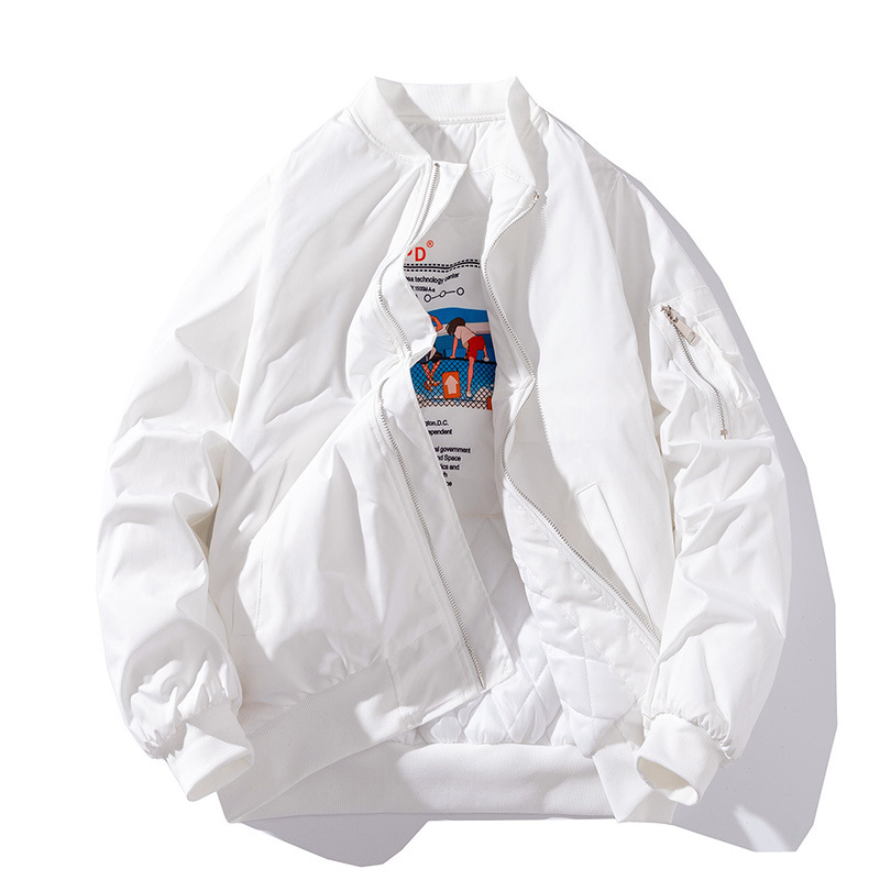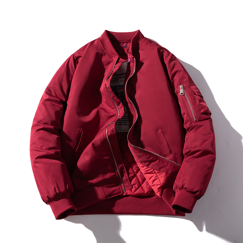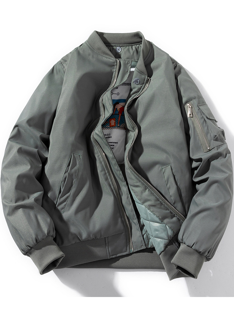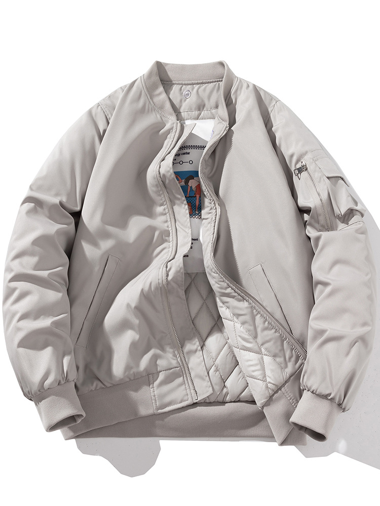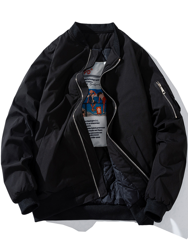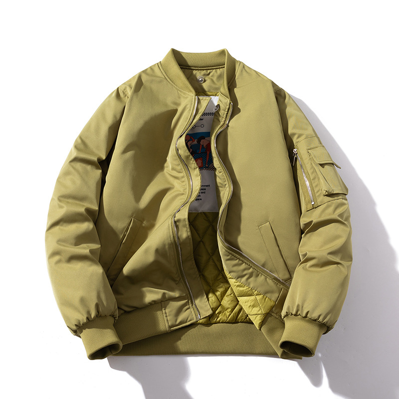 美式工装飞行员夹克男女情侣简约纯色棒球服蓝色加厚棉衣服外套潮