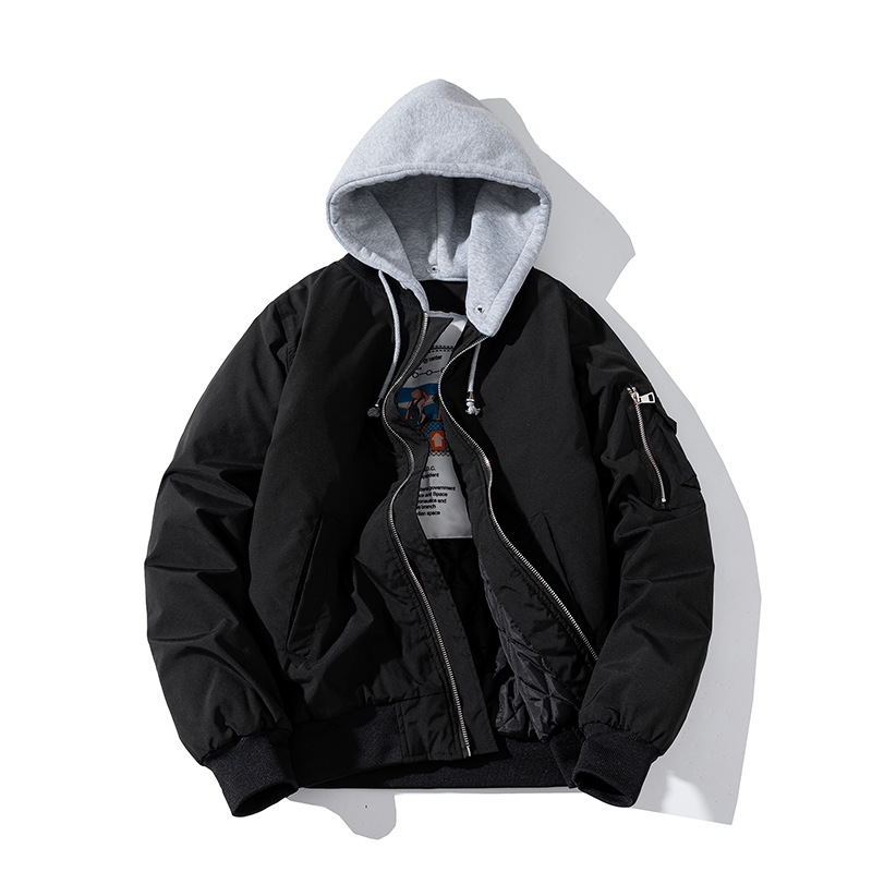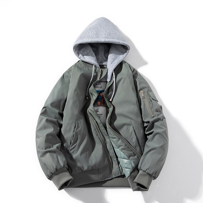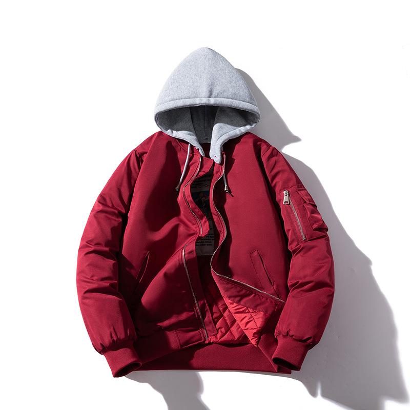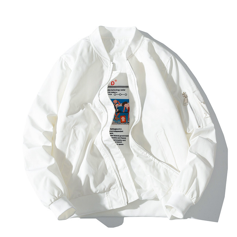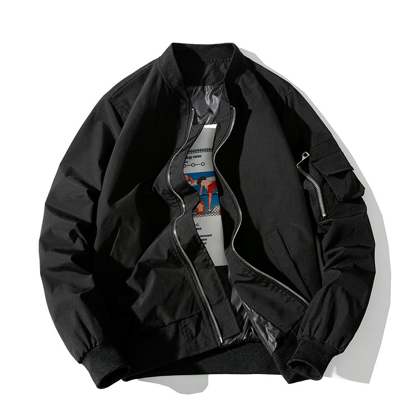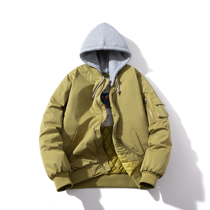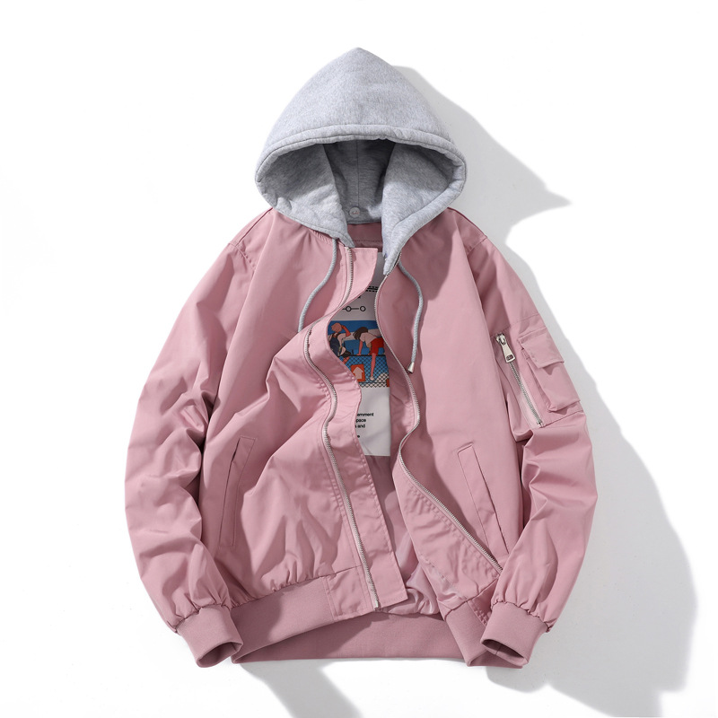 美式工装飞行员夹克男女情侣简约纯色棒球服蓝色加厚棉衣服外套潮