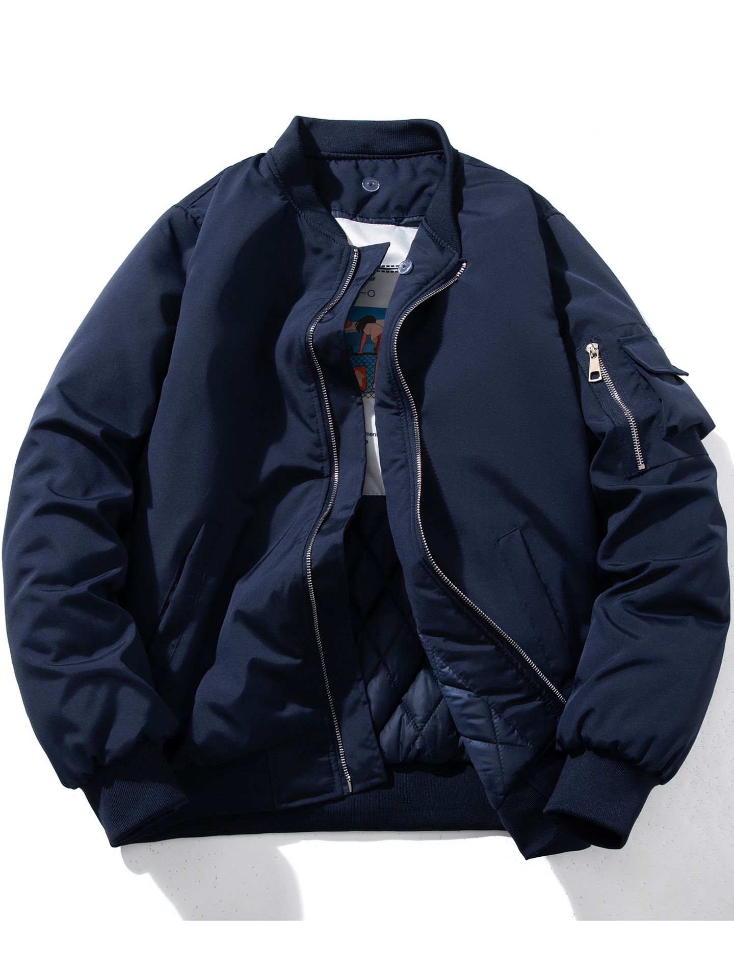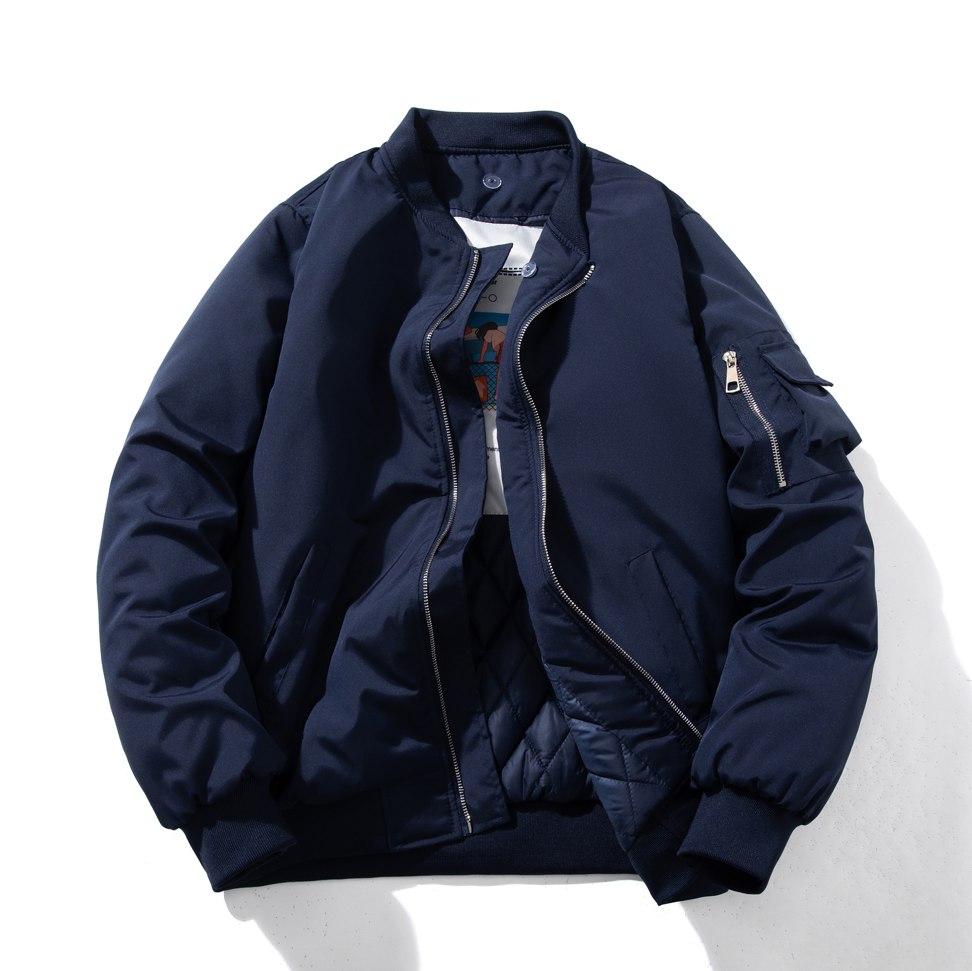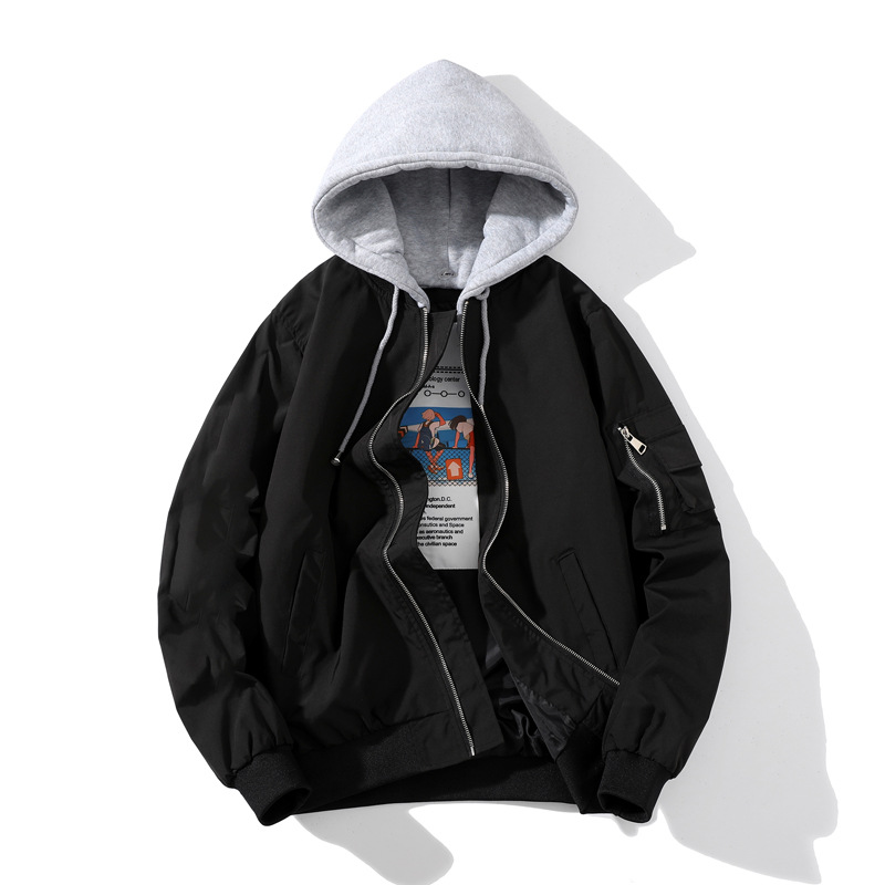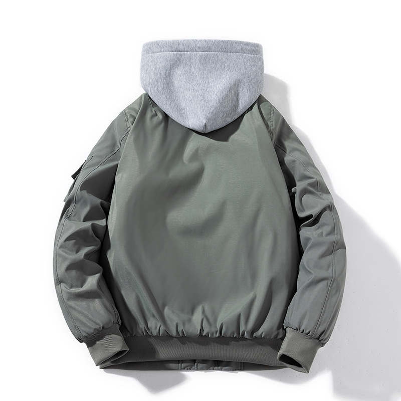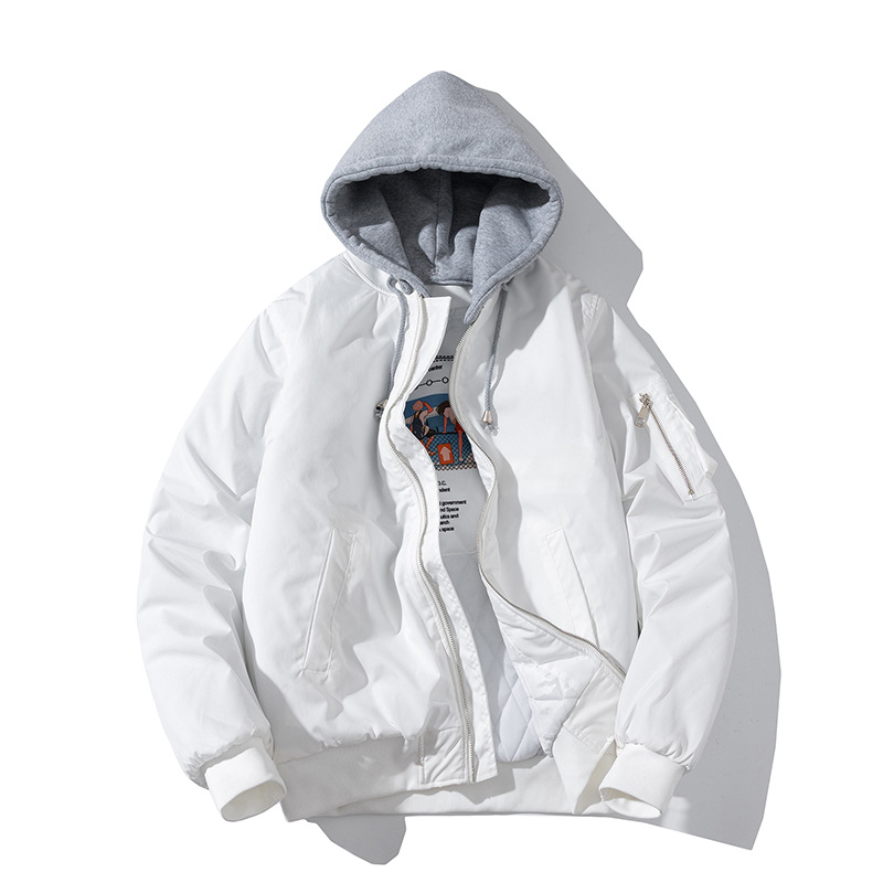美式工装飞行员夹克男女情侣简约纯色棒球服蓝色加厚棉衣服外套潮