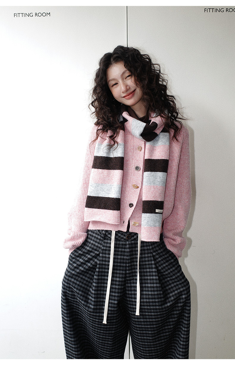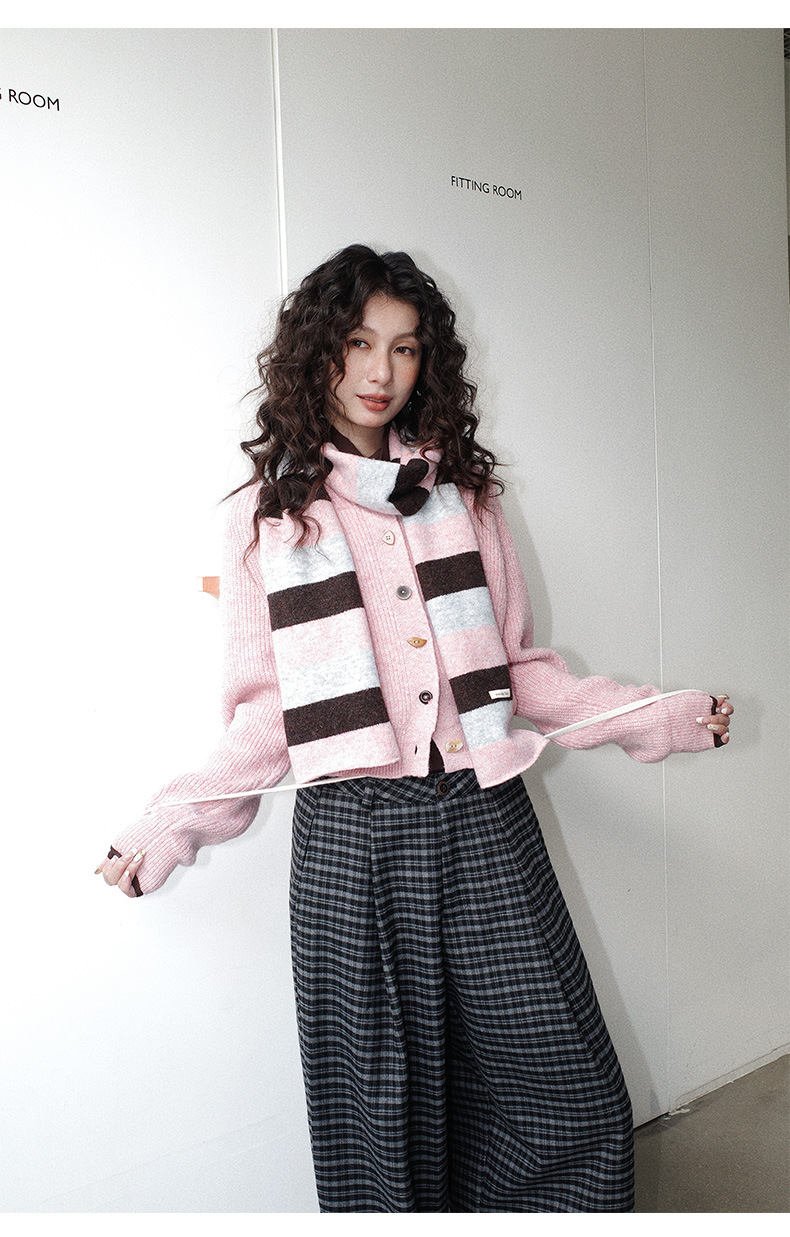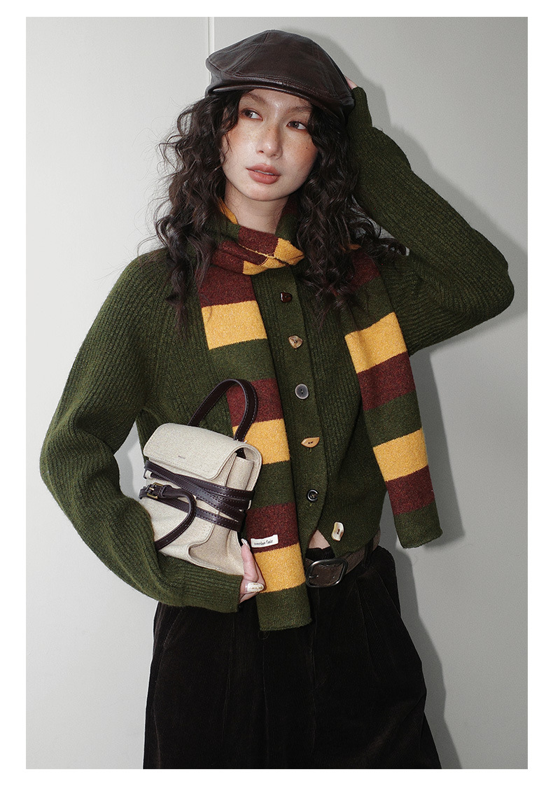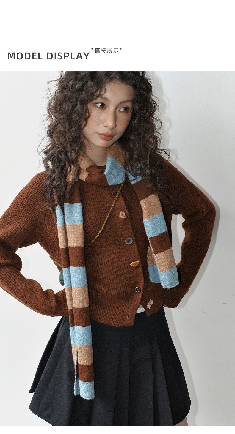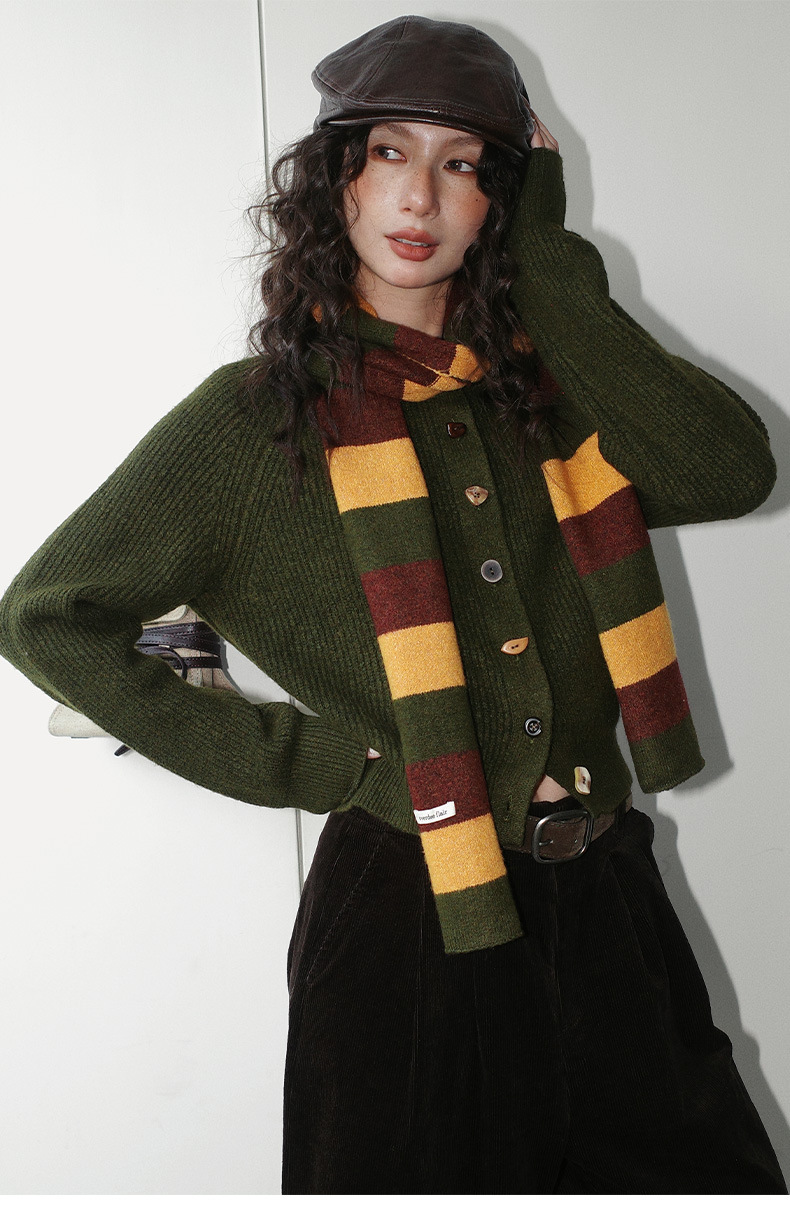 NEIHE内赫韩系穿搭女装圣诞撞色条纹围巾开衫毛衣女秋冬季257216