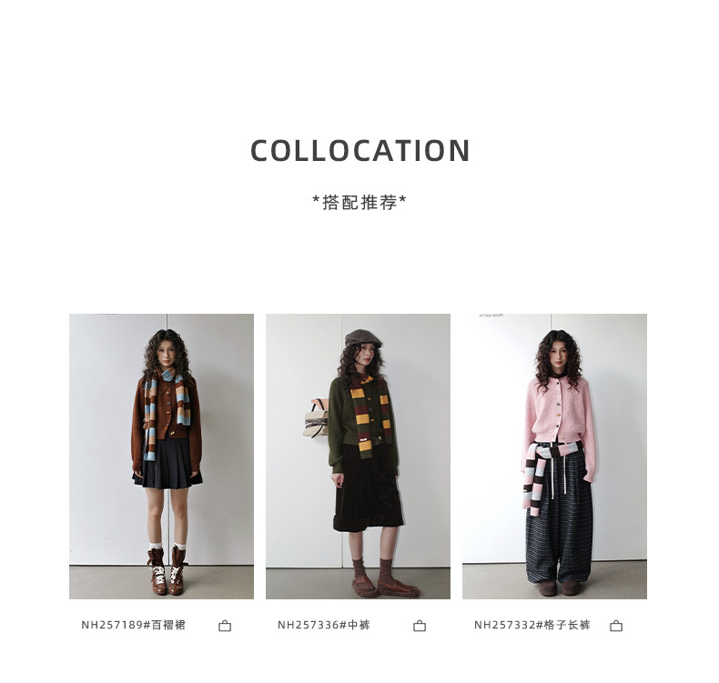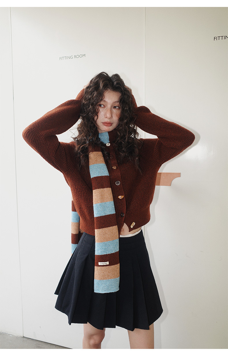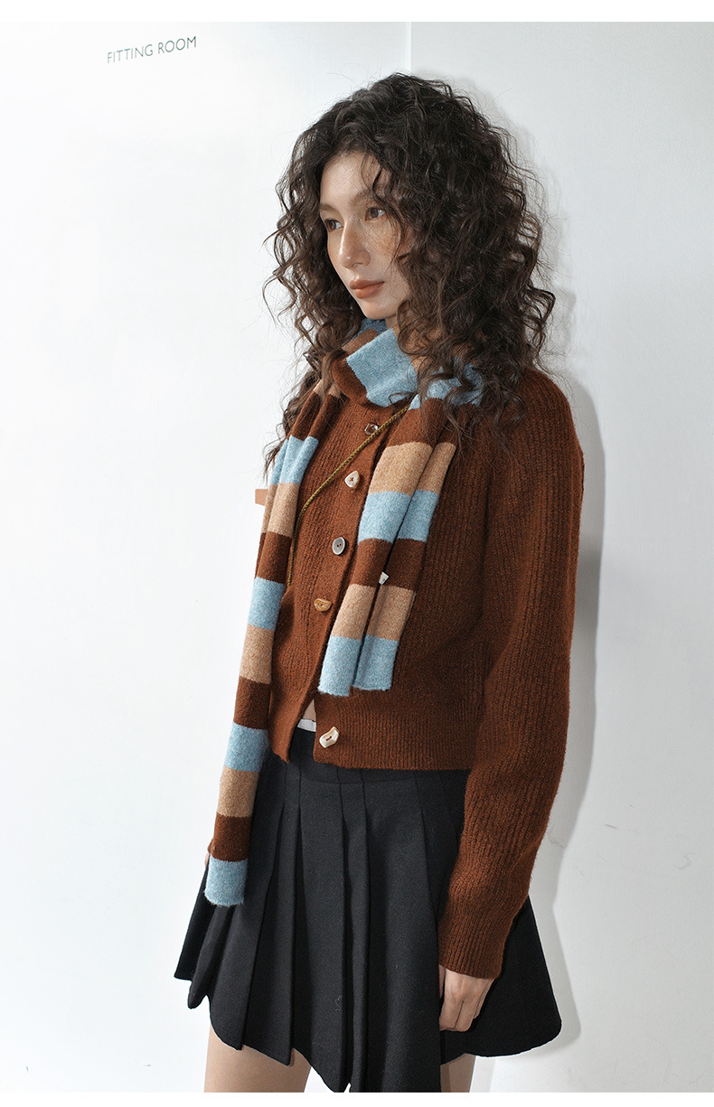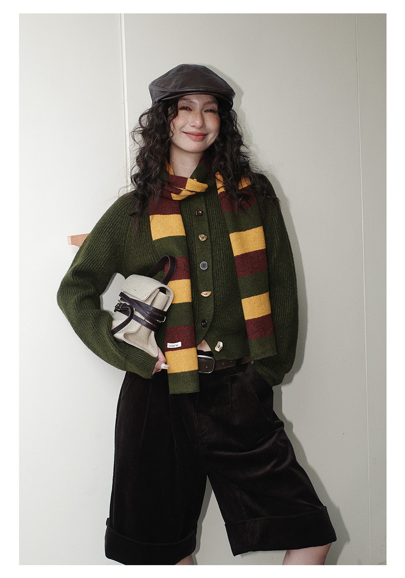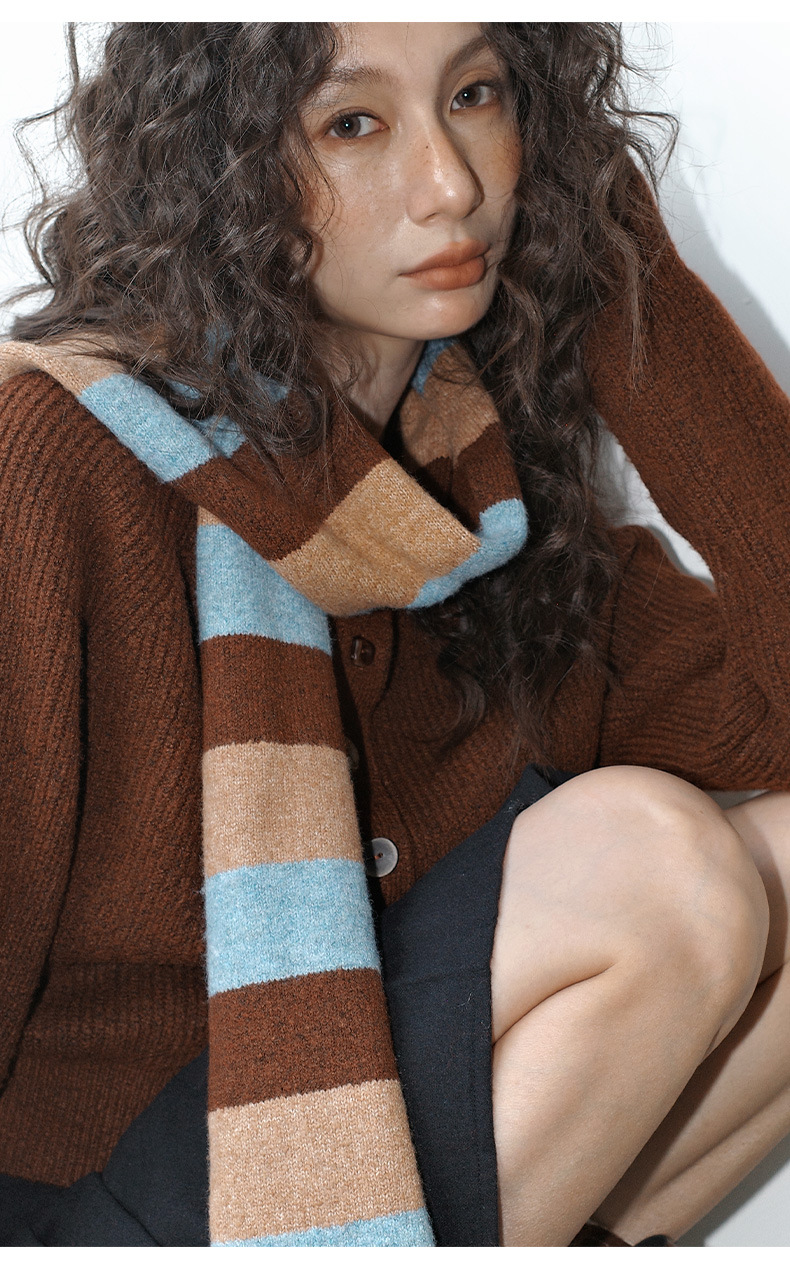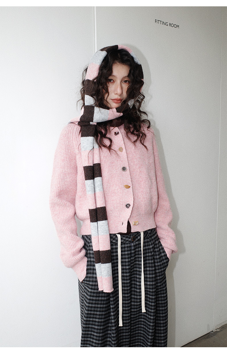NEIHE内赫韩系穿搭女装圣诞撞色条纹围巾开衫毛衣女秋冬季257216